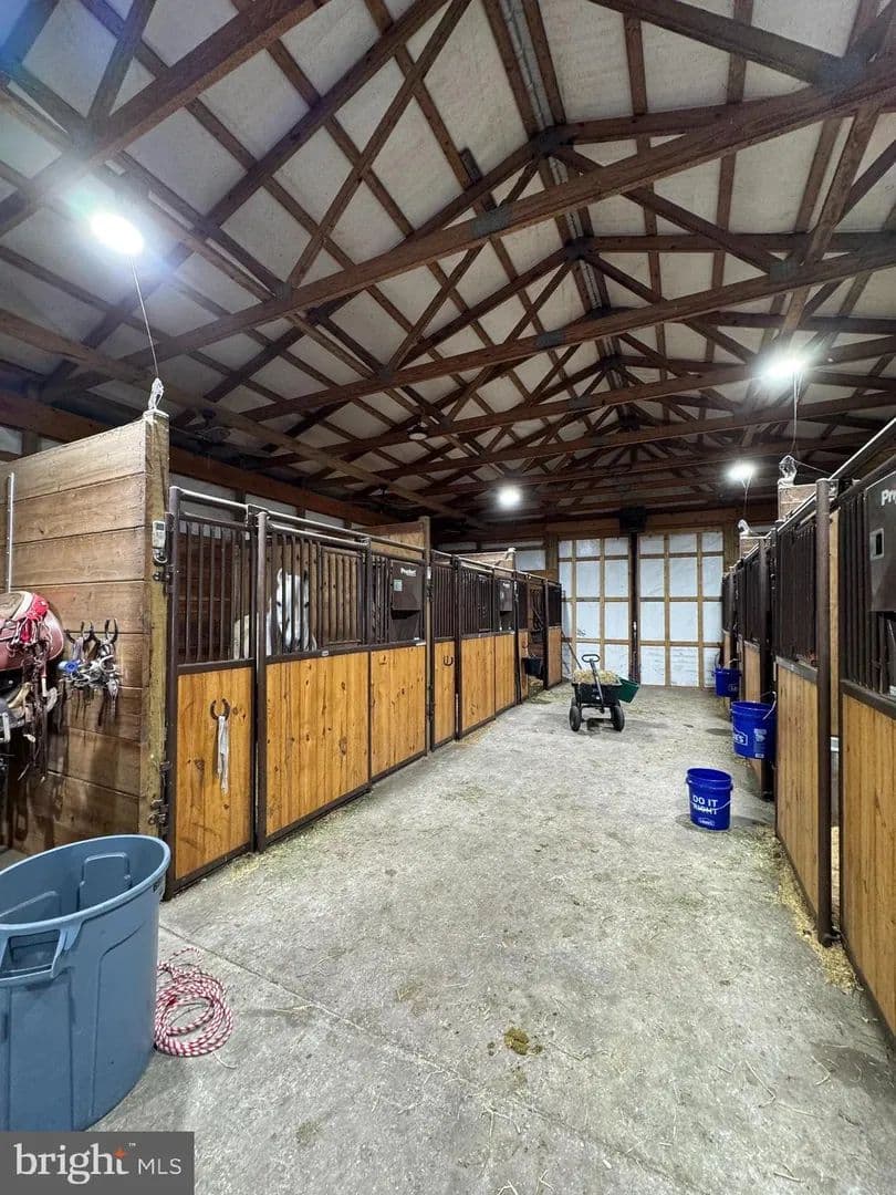 This property is a horse farm ready to go for its new owner. This listing consists of two connecting parcels, allowing the future owner to build another home and rent the existing house to tenants or have it available for guests or groundskeepers. The two parcels combined measure 9.71 acres. The farm features 3 horse pastures, an indoor arena, tons of garage/storage space, and a horse barn with 16 stalls, all of which are heated, air-conditioned, powered, and come with automatic watering systems