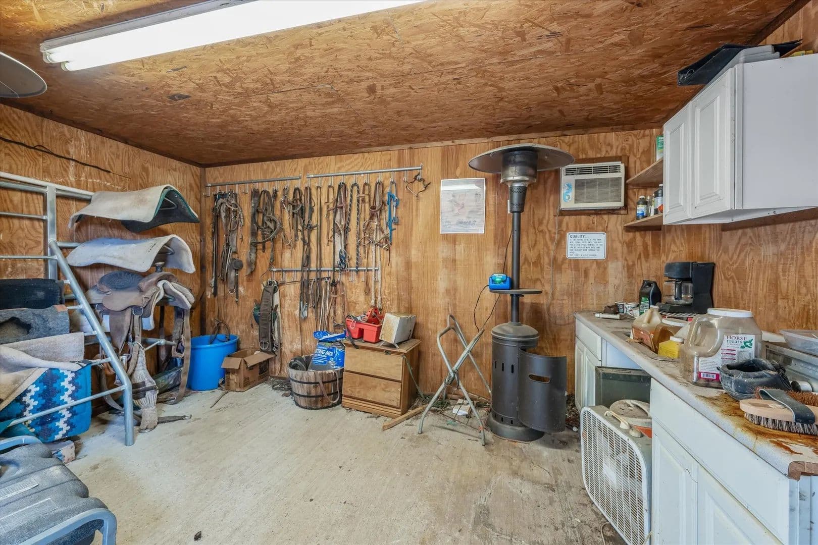Equestrian enthusiasts will appreciate the thoughtfully designed facilities, including a 40x20 hay barn, multiple storage buildings, and a sprawling 100x100 boastful barn. The main barn is well-equipped with 15 stalls, a tack room, stud stalls, and breeding stalls, providing everything needed for horse care and training. Additionally, a roping arena is in place, offering space for equestrian activities.