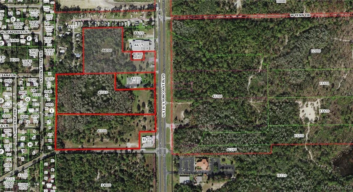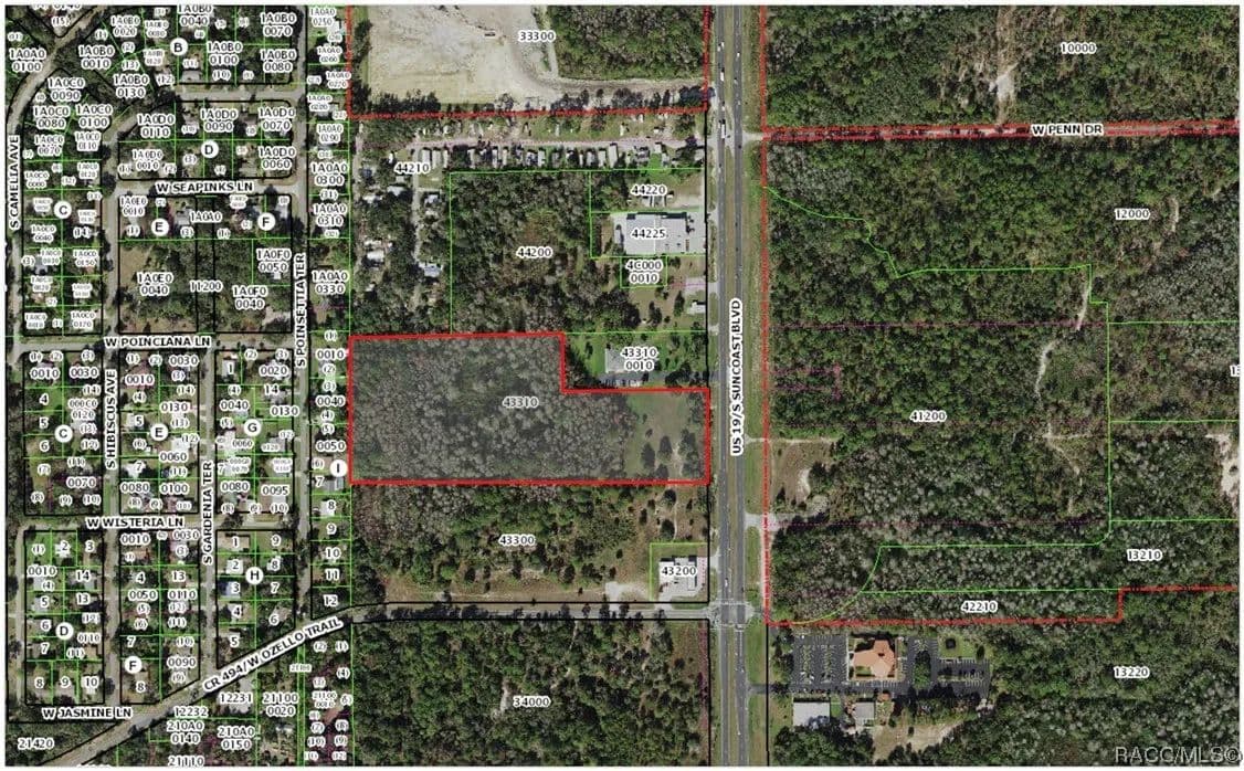 **PRIME LOCATION with so much opportunity! This 12.2 acre vacant Commercial property includes 2.94 acres of GNC land of which approximately 1/2 an acre appears to be wetlands. It also includes 9.26 acres of land zoned LDR. The majority of the LDR land appears to be wetlands. There are many opportunities here to develop this land, or build and expand your business. Endless possibilities with approximately 320 ft of road frontage (23,000 AADT) on situated on Florida's largest west coast highway with easy access to the newly opened 589 Toll Road/Suncoast Parkway (6 miles), making it an easy commute to Tampa International Airport and 2 minutes from the Crystal River Regional Airport. Crystal River is a thriving community with a strong local economy and a growing population. The city's strategic location, coupled with its vibrant lifestyle and natural beauty, make it an enticing destination for residents and tourists alike. Don't miss out on this opportunity with options to purchase additional surrounding parcels, 8839 Ozello Trail, and 268 S Suncoast Blvd. With County approval GNC zoning allows multifamily housing, institutional uses, outdoor recreation, public service facilities, office buildings, neighborhood commercial, and most full commercial uses. The opportunities are almost unlimited!