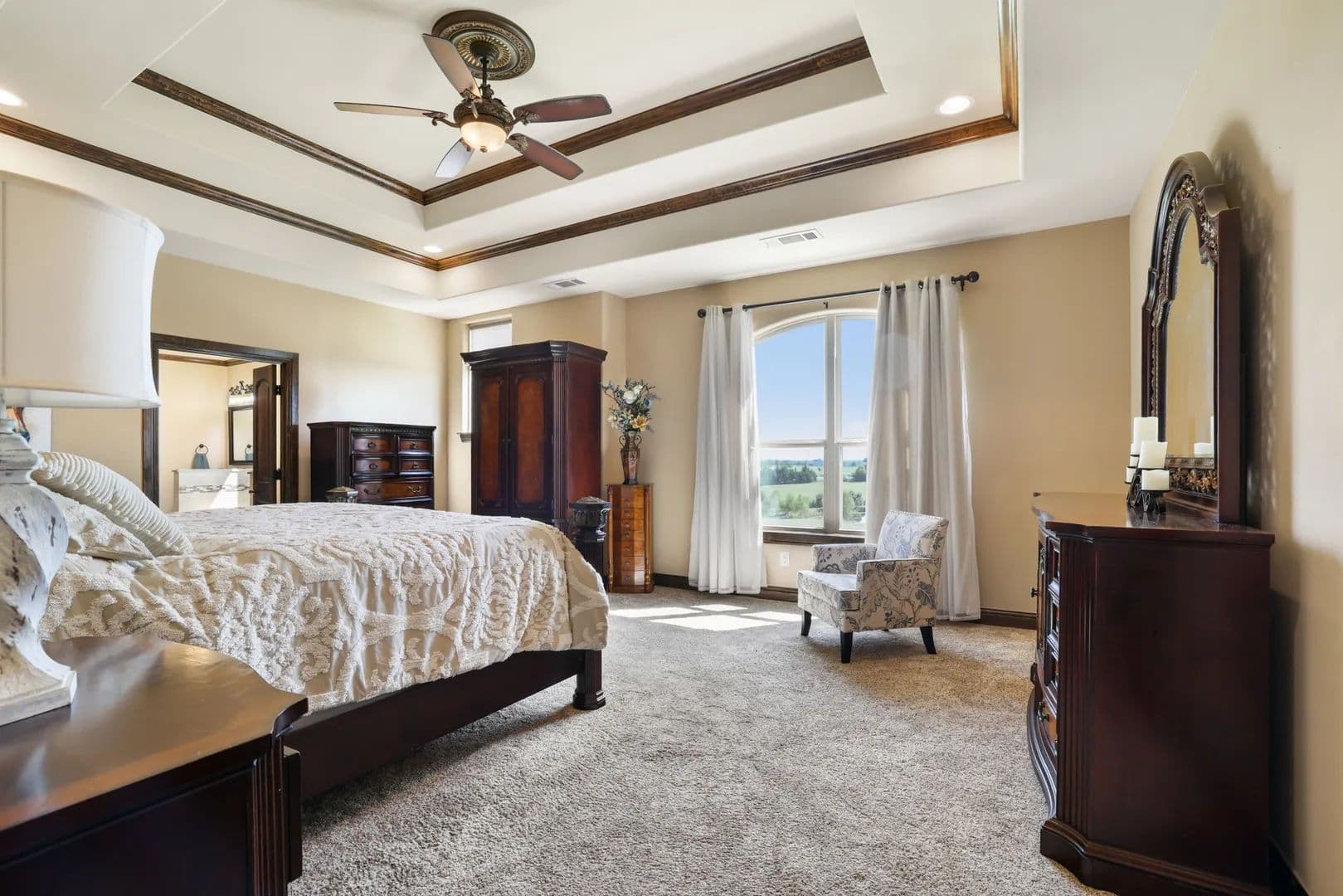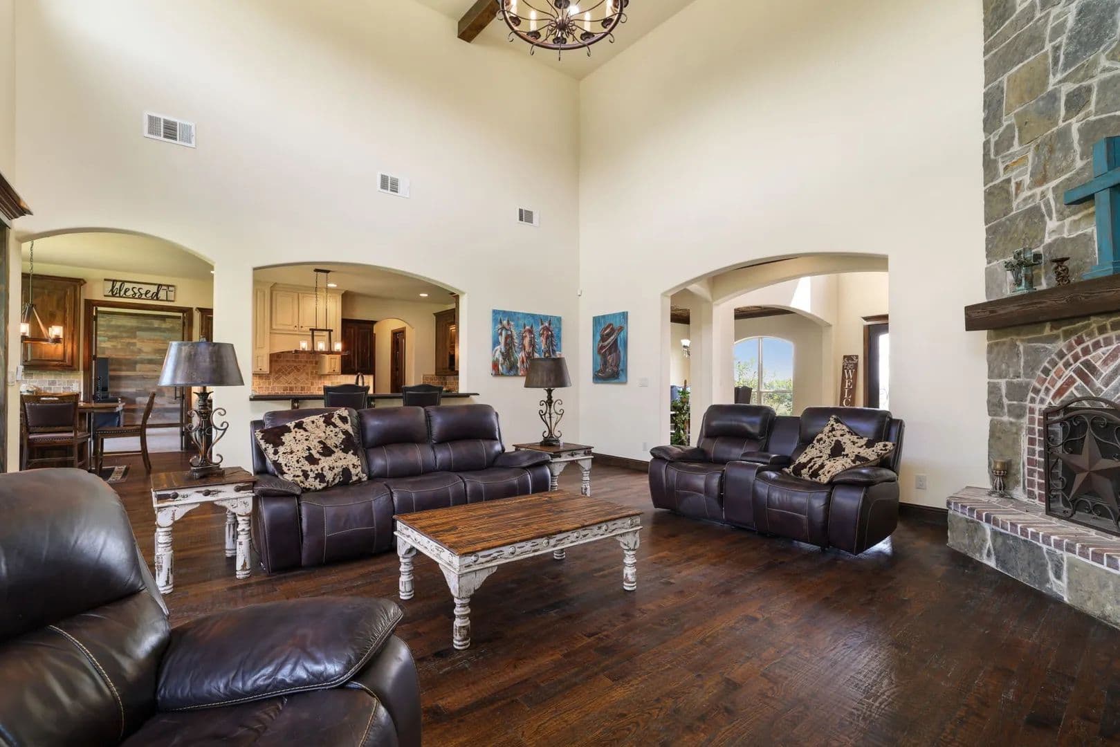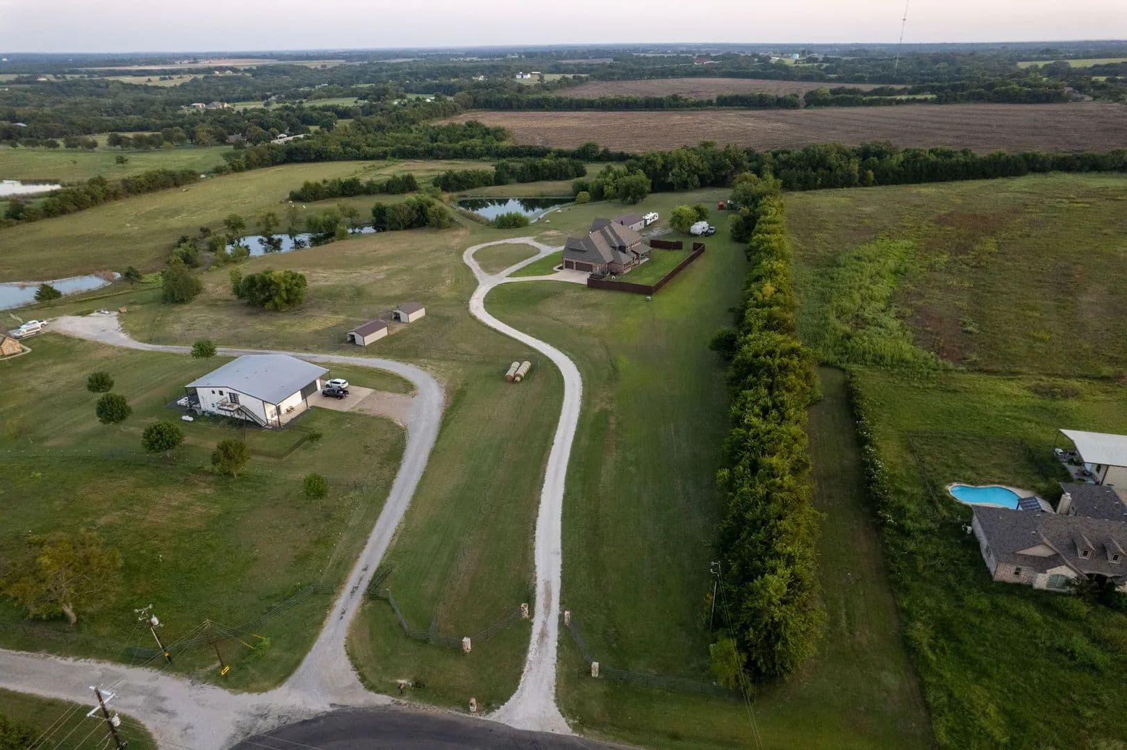 Additional highlights include a 3-car garage with handsome wooden doors, an above-ground safe room, and three HVAC units. Whether you’re seeking farm life, a private retreat, or a luxurious homestead, this property perfectly captures the serenity and style of country living.