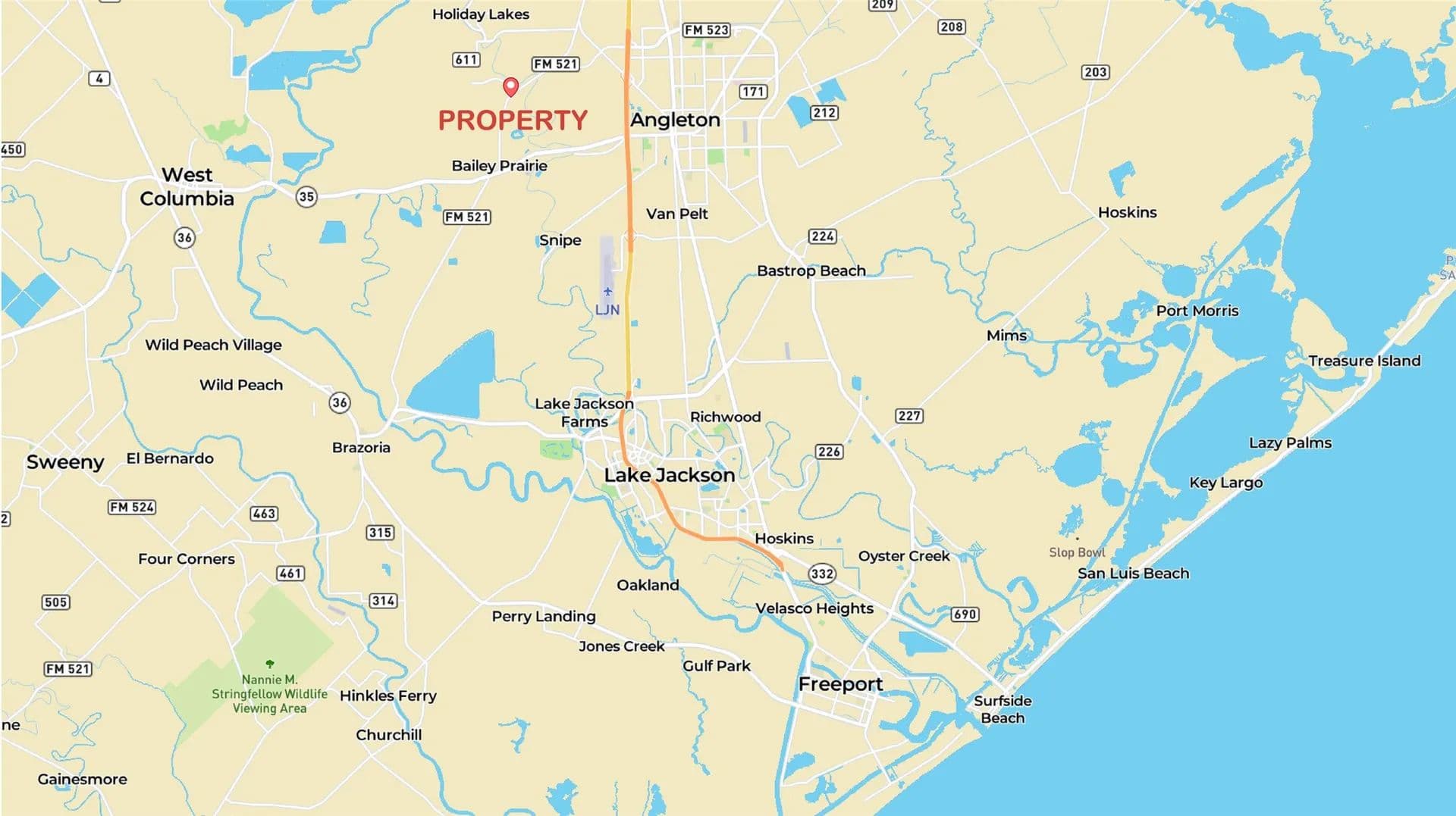 Rare 145± Acres with Development Potential Near Angleton! Act now to own this exceptional 145± acre property, boasting 1± mile of CR 30S frontage & prime access to FM 521, near Angleton, TX-288, & TX-35. This fenced, wooded, & partially cleared property offers incredible versatility for subdivision, homesteads, or a strategic long-term investment. Can be subdivided! Located outside city limits and ETJ, it provides significant development flexibility (restrictions apply; inquire for details). Conveniently situated near FM 521 intersection, south of FM 523. Just minutes from TX-288, TX-35, Angleton schools, & downtown amenities. Suitable for a wide array of projects. Subdivision, homesteads, ranching, recreation, or long-term investment. Electricity available, well & septic needed. The adjacent 10-acre tract is available for sale. Explore the possibilities of this exceptional land. Contact us today for details. Cattle on Property!