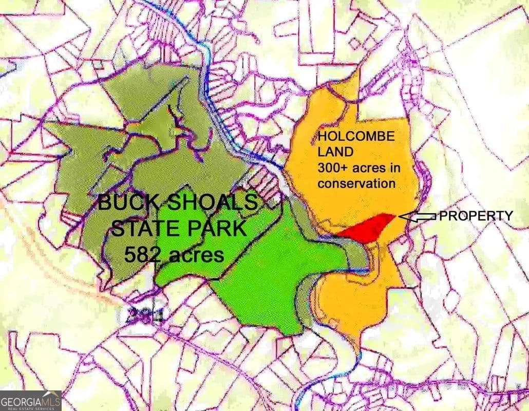 Chattahoochee River Beachfront Property!!! Yes, you heard right! This breathtaking nearly 10 acre estate-sized tract offers an unparalleled opportunity to own 639 feet of pristine river frontage featuring thundering shoals, a stunning sandy beach, and serene bottomland. Nestled in complete privacy yet conveniently accessible, this one-of-a-kind property is surrounded by hundreds of acres of protected conservation land, including the beautiful Buck Shoals State Park. The landscape is a dream with rolling hills, natural springs, and a babbling creek that add to the charm and versatility of this picturesque setting. Whether you envision a private retreat, a riverfront estate, or an outdoor enthusiast's paradise, this land offers endless possibilities. A truly rare find don't miss your chance to own this slice of Chattahoochee paradise! Schedule your private tour today!