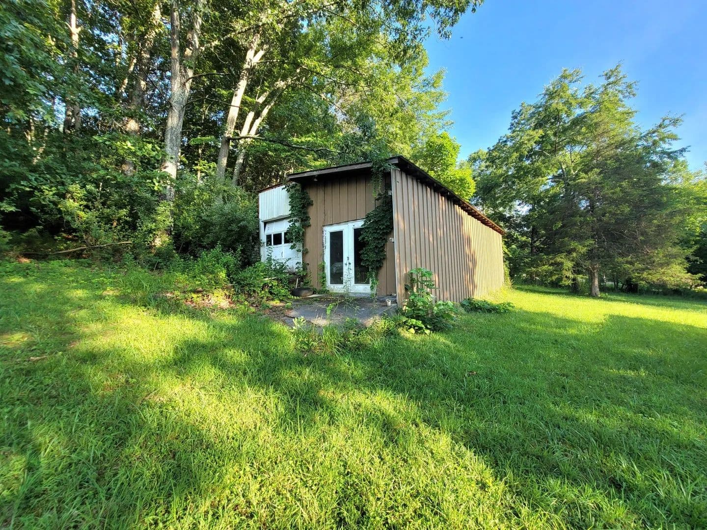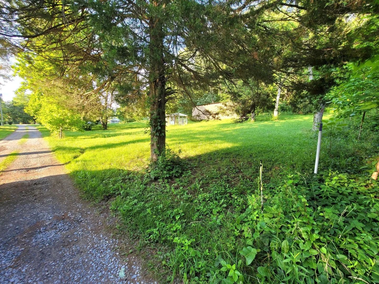 Nice one acre lot with large 50 x 20 metal building with concrete floor on one side. Seller to survey prior to closing. Half open land half wooded. Great area close to the river. No HOA, No Fees. Possible location for a camper or a home. Beautiful Catawba trees, cedar trees, oak trees, poplar and others. All buildable land.