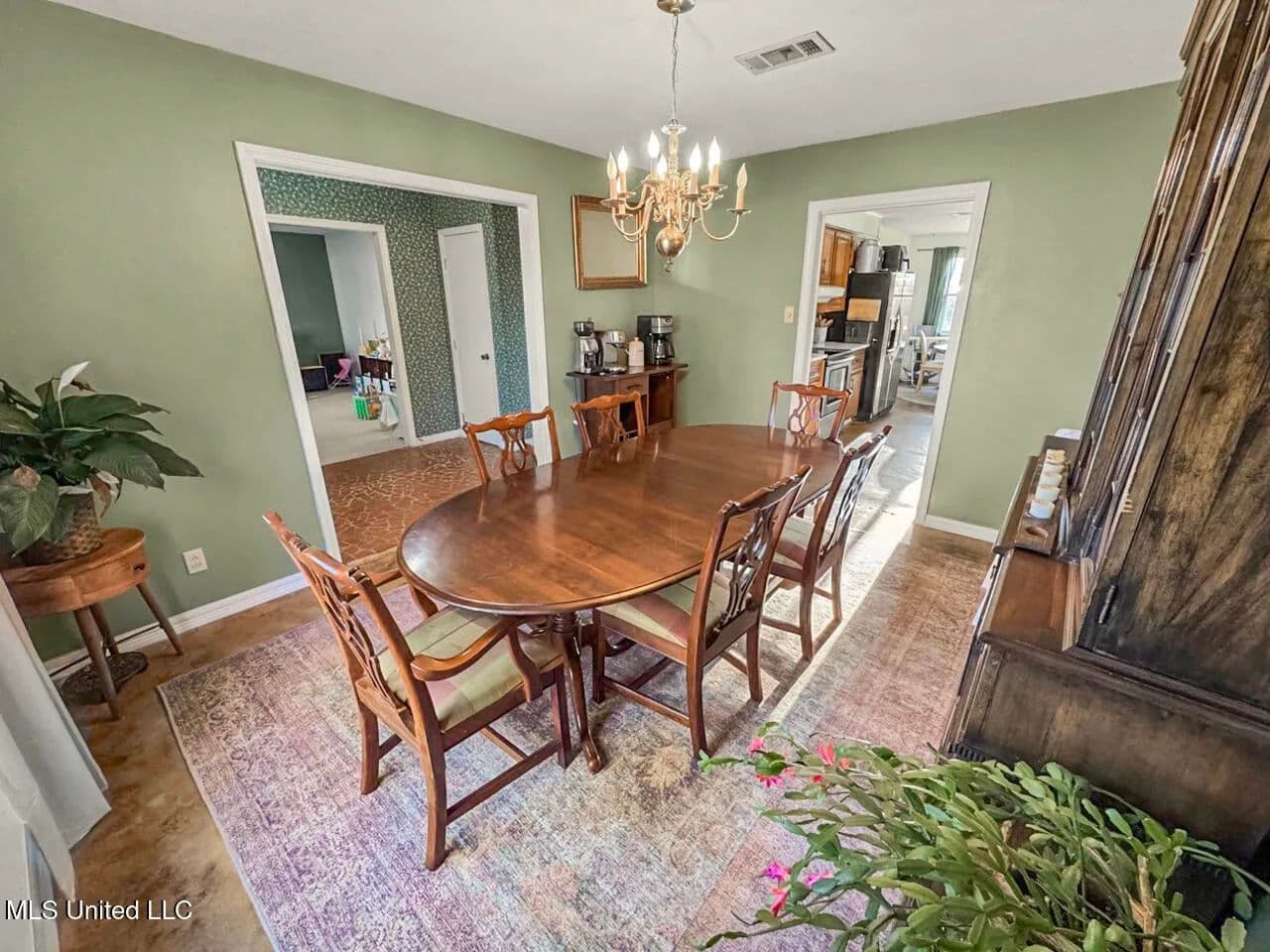 This updated home in Natchez, MS showcases thoughtful improvements throughout. The kitchen features new countertops and a modern backsplash, creating a fresh and inviting space for everyday living. Just off the kitchen, a formal dining room is perfect for hosting family gatherings or entertaining guests, while a cozy breakfast nook offers a casual dining option.
