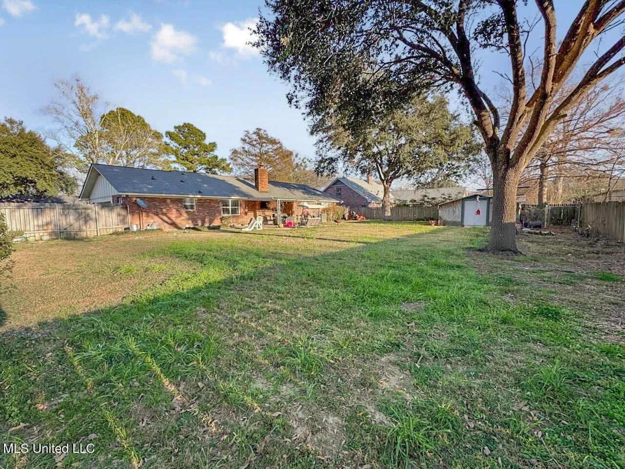 Step outside to enjoy a large covered patio, perfect for grilling, entertaining, or relaxing in the evenings. The fully fenced backyard provides privacy and a safe space for kids or pets, making this a standout home with fenced yard in Mississippi. A large storage shed adds even more functionality.