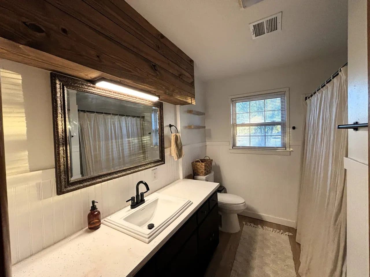 The primary suite offers comfort and style, featuring his-and-her closets and a layout designed for everyday living. Three additional bedrooms provide flexibility for family, guests, or a home office. The main bath has been thoughtfully updated with modern finishes and a clean, timeless design, complementing the half-bath for convenience. Every detail has been carefully considered, from the updated flooring and doors to the contemporary fixtures, all bathed in natural light that highlights the home’s welcoming, polished atmosphere.