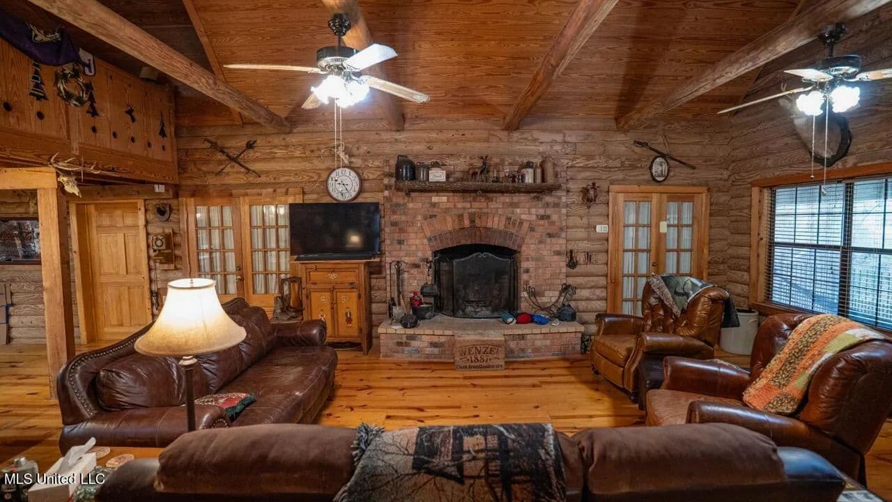 At the heart of the property is a charming 1,844 sq. ft. log cabin featuring 5 bedrooms and 2.5 baths. This beautifully crafted cabin blends rustic charm with updated comforts, creating the ideal destination for weekend family gatherings, hunting trips, or peaceful escapes into nature.