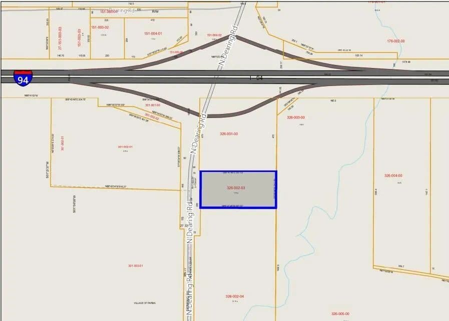 3 acres of PRIME land located on the east side of Dearing Road with instant access onto I-94. Perfectly located across from MACI plant and Marathon gas station / Subway, this property awaits the next prime commercial addition to this great area. Located on the 3 acre parcel is a 3 bed 1 1/2 bath home with 2 large pole barns and horseshoe driveway around the home.