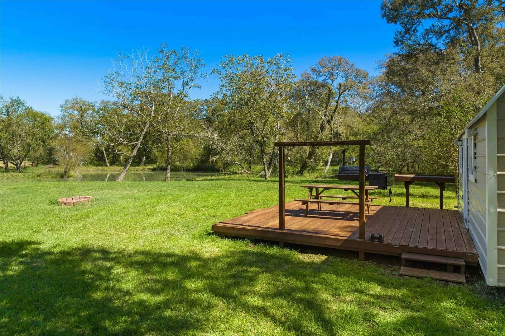 15115 Tierra Grande is Nestled within OVER 7 FENCED WOODED ACRES of Natural Beauty. This Corner Lot Offers Ample PRIVATE Hunting and Fishing Opportunities. Looking to have a Private Hunting Lease just 30 Minutes from the City?.... You Have Found the Place! The Property Offers 2 Fully Stocked Ponds with Bass, Catfish, and Perch. (Connected to the Water Well to Manage Water Level). 3 Deer Blinds located Throughout the Property. The FURNISHED Studio Cabin Features a AERATOR System (Improves Water Clarity and Oxygen Levels. The Community offers Well-maintained 10 Acre Lake for Fishing, a Welcoming Pavilion for Gatherings, a Dock and Picnic Areas for Shared Enjoyment with Friends and Family. Escape the Hustle and Bustle of City Life.