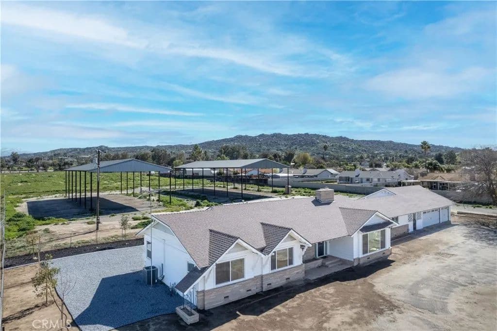 Prime development opportunity in the rapidly developing city of Nuevo! Situated on a flat corner lot with 1261 feet of frontage, over 18 acres of commercial land (CPS Zoned) and a newly renovated 2500+ square foot Ranch Style home onsite - this uniquely situated property offers endless possibilities! It also sits less than three miles away from the soon to come, Villages of Lakeview which will consist of 8,725 homes on 2883 acres and KB homes Nuevo Meadows is in the process of building another 238 homes less than two miles away. The property is also just minutes from the new 16 mile Mid County Parkway corridor which improves travel between valleys from the I-215 to Route 79. —---- The existing structure is a beautifully renovated residence with new low maintenance landscaping in the backyard, a new sprinkler/irrigation system, brand new electrical, new plumbing and water heater recently installed, new video surveillance system, network connections and more. Recent upgrades and finishes were also completed throughout the house to include paint, drywall, framing, flooring, cabinets, counter tops, appliances and other interior touches. —---- Outside there is a detached three car garage, 2 steel garage barns, city water and all utilities on site and a private well. —---- Some of the many permitted uses include; automobile parts and supply stores, banks and financial institutions, hardware stores, nurseries and garden supply stores, offices and business park, produce markets, schools, business and professional, including art, barber, beauty, dance, drama, music and swimming, gasoline service stations, convenience stores, churches; this property could also be used for commercial cannabis cultivation with a CUP…the list goes on. Schedule a visit today (BY APPOINTMENT ONLY) buyer and broker to verify all information through due diligence.