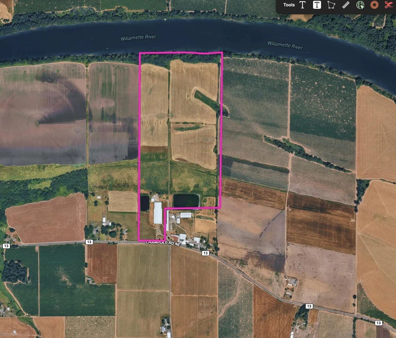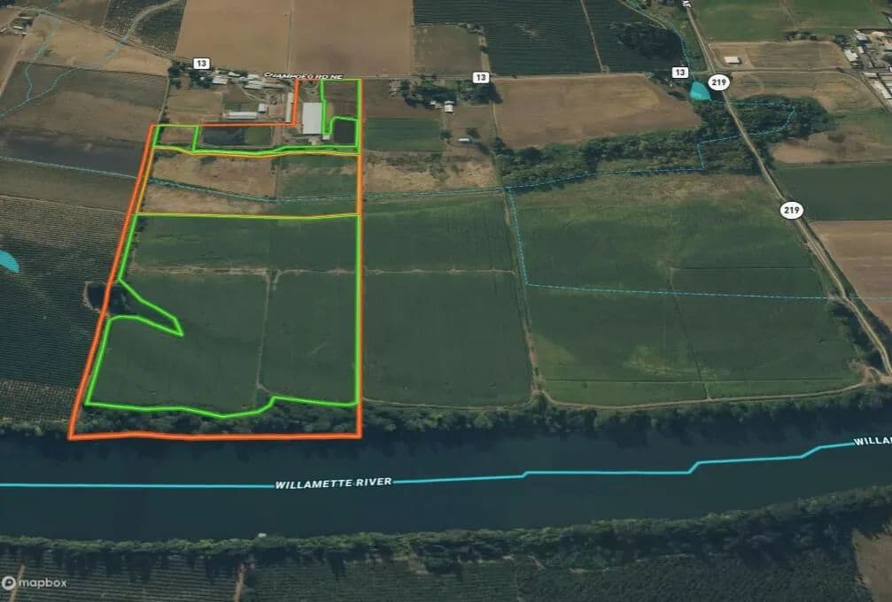 101± acre Willamette Riverfront Farm with EFU zoning, and secure water rights. Features diverse, highly productive soils including Chehalis, Amity, and Cloquato silt loams, plus 52,000 sq. ft. free-stall barn, hay cover, and former dairy setup. Historically farmed for corn and hay, currently leased for immediate income. Rare large-acreage parcel with good soils, water, and infrastructure, ideal for permanent crops, row crops Hazelnuts, Blueberries, or livestock.