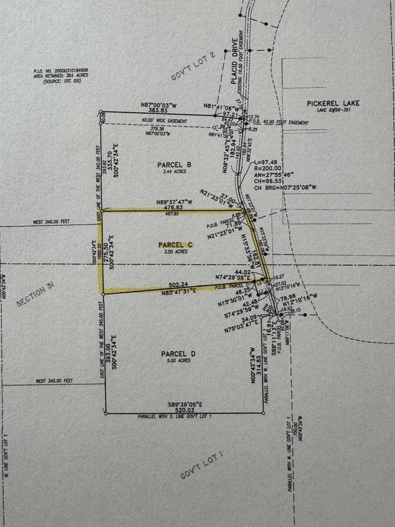 Whether you're looking for a new home site or a back lot to build your new shed or Shouse, this property just may be for you! This 3-acre lot (parcel C) overlooks Pickerel Lake and has a stunning landscape that will host the nicest home, large shed, or summer camping site. No restrictive covenants, with plenty of nature and hiking on your own property.