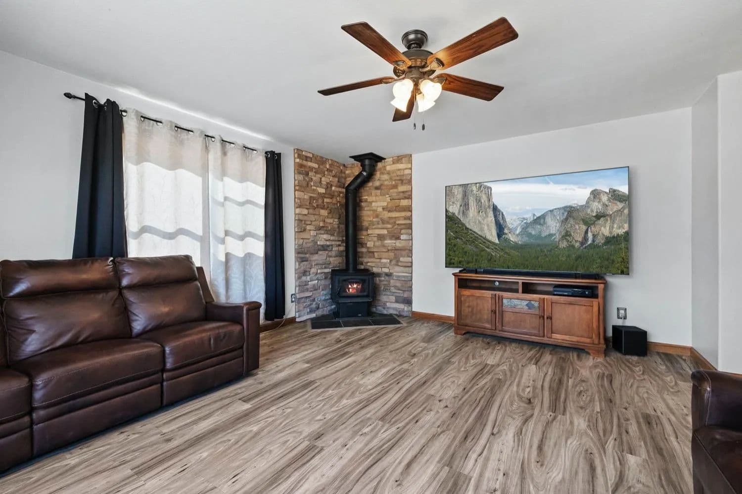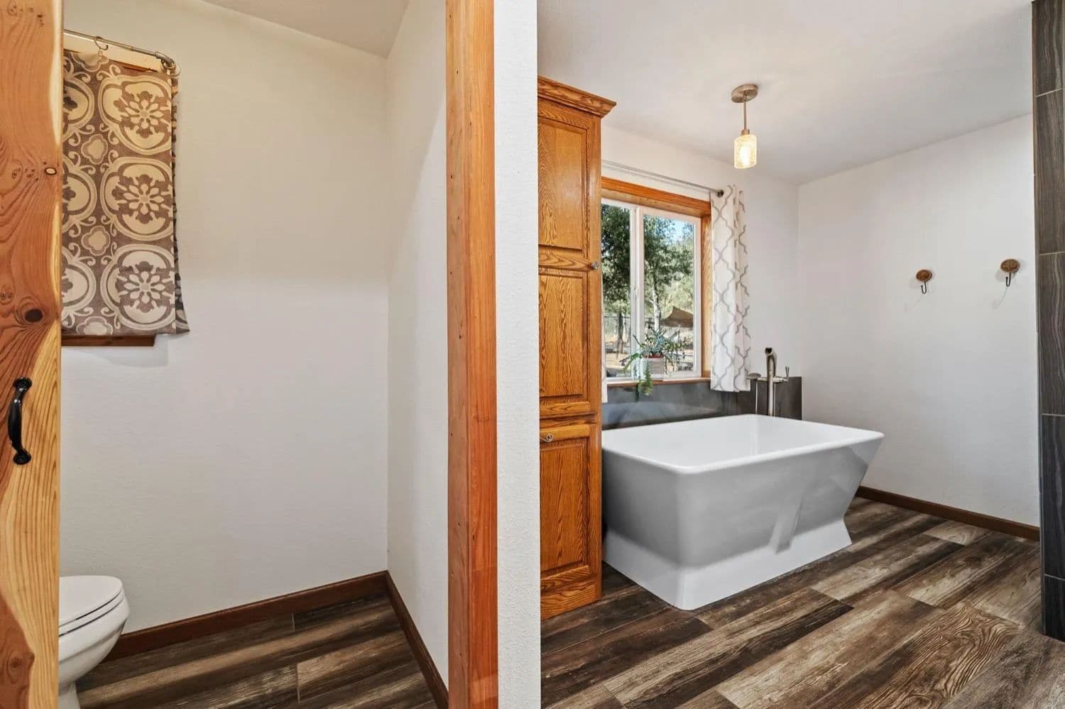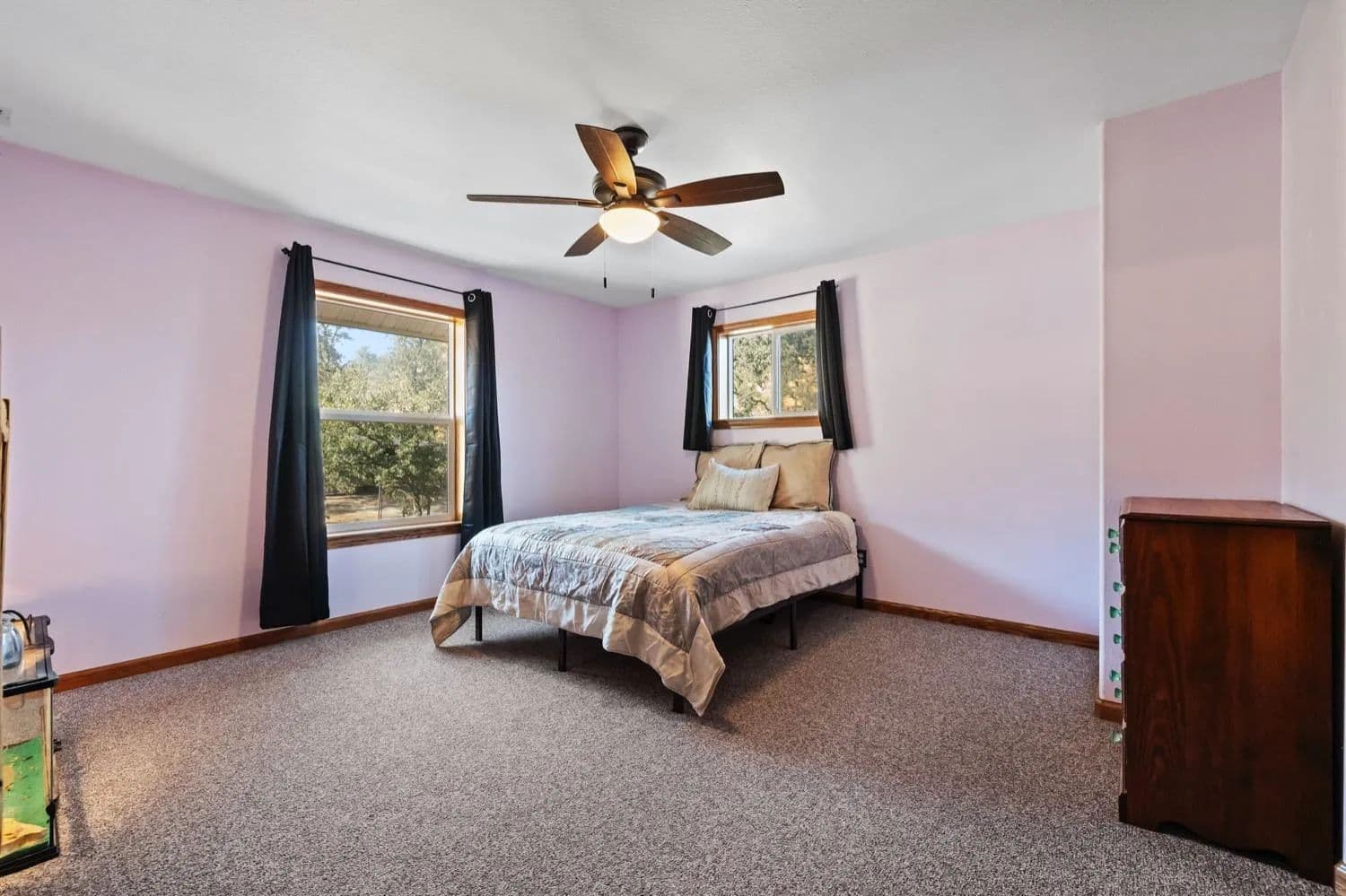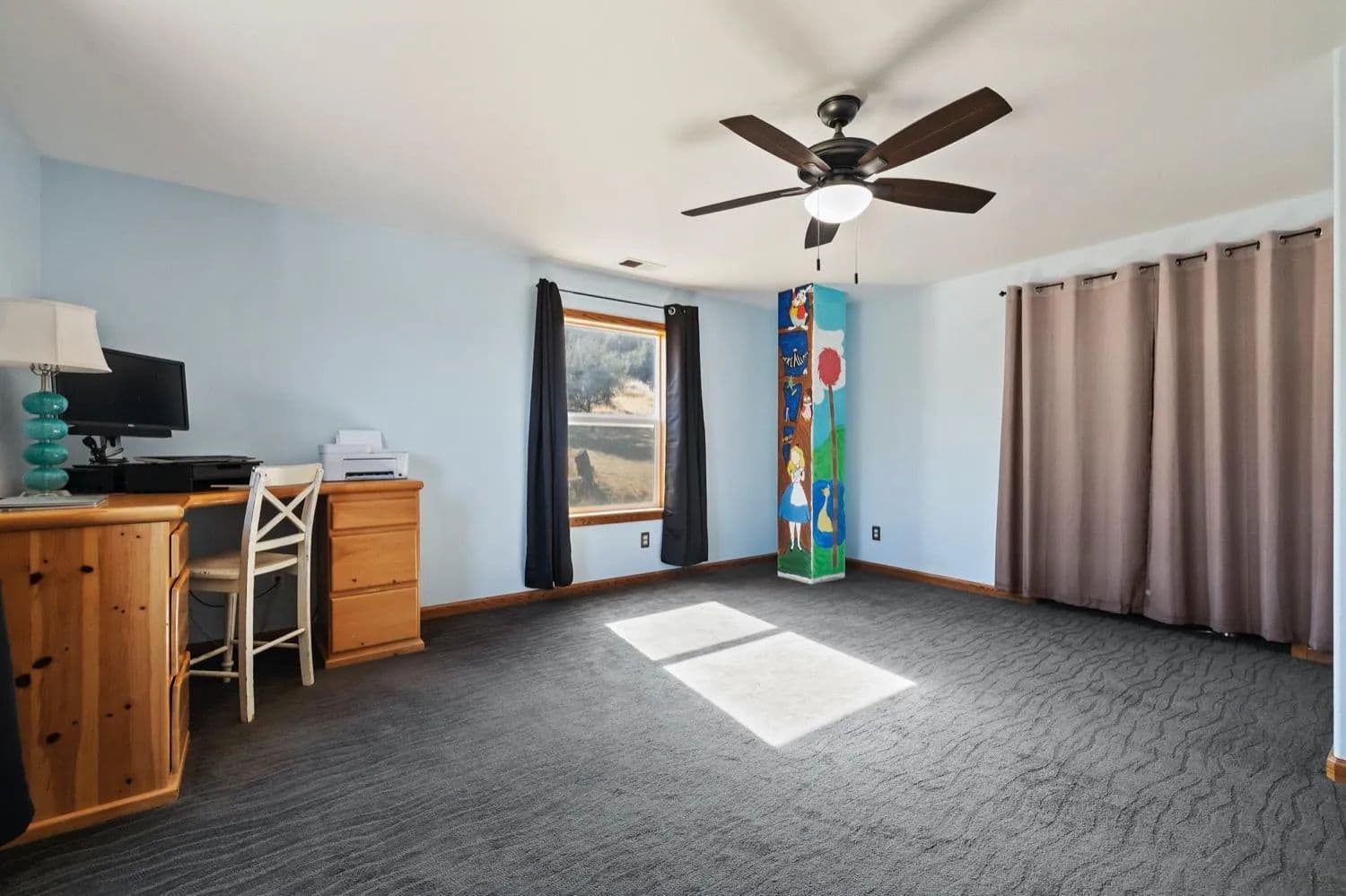 Motivated sellers would like to welcome you to your dream ranch! Experience sustainable living at this turn-key ranch on 21 acres of rolling hillside, bordering thousands of acres of BLM land. This 2,912 sq. ft. custom-built home with 2X6s offers 5-6 bedrooms, 3 full baths, and breathtaking views from every room. Designed for efficiency, it features a kitchen with quartz countertops, a Blue Star Gas Range, custom Italian mosaic tile, and a stainless steel farm sink. The kitchen flows into a spacious dining room, highlighted by a custom 13'x4' live edge pine table. The main floor master suite includes a spa-like ensuite with a two-person stone soaker tub, walk-in tile shower, double vanity, and a California Closets-designed walk-in closet. Upstairs, find four large bedrooms, an office/den, and a full bathroom. The home also includes an oversized laundry/mudroom and a 2.5-car garage with a canning room/man cave. Outside, the property is perfect for ranching with 3 fenced pastures, 2 additional fenced areas, and 3 seasonal creeks. Enjoy a deer-fenced organic orchard, raised garden beds, and multiple outbuildings, including a 1,100 sq. ft. shop, 4 storage sheds, 3 chicken coops, and a covered carport with extensive electrical. The Highland Herd, and other farm animals