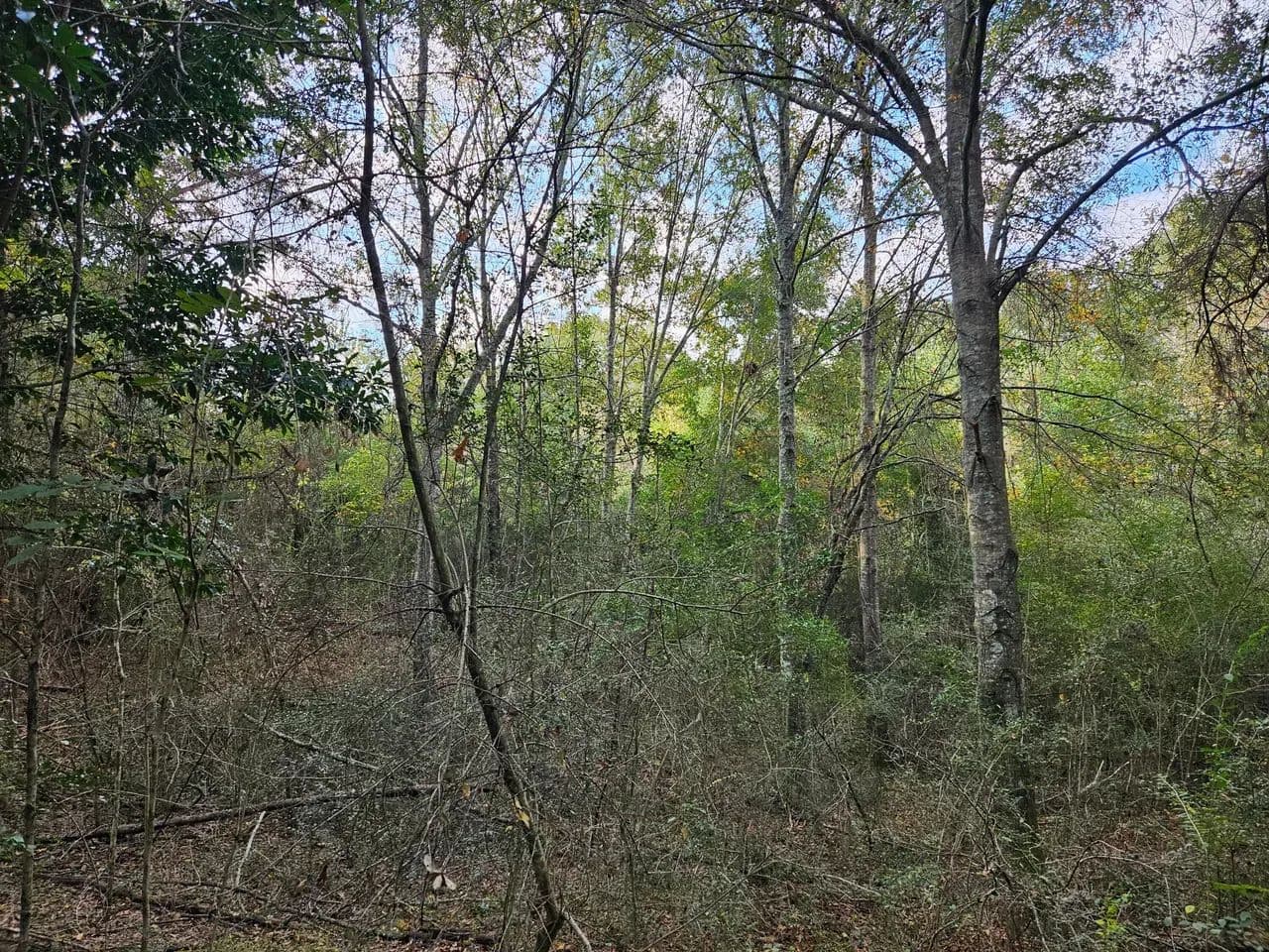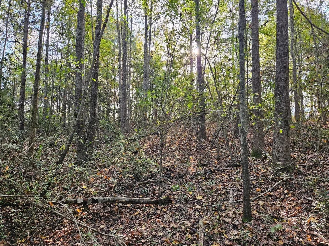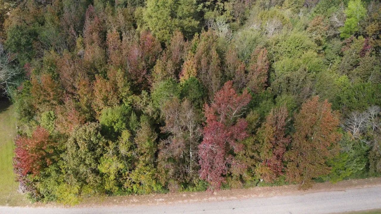 The land’s natural contour gently falls from the outer boundaries toward a broad, centralized interior, creating a subtle, sheltered “pocket” rather than a sharp ravine. Importantly, this shape does not diminish the tract’s desirability as a homesite. In practice, it’s an advantage: water sheds to the center, helping with natural drainage, while the higher shoulders near the road frontages provide stable, buildable positions with pleasant woodland views and privacy. With modest clearing and creative dirt work—think a compacted house pad and a driveway that follows the contour—you can establish a comfortable homesite on a perimeter shoulder or a midslope bench, leaving the interior lower area as a green backdrop, garden space, or wildlife corridor. Dual frontage gives you flexible design options: one access for the residence and another for a shop, barn, equipment, or future improvements, without crowding the main approach. You’ll be able to orient the home to catch breezes, look into the trees, and still keep a deep buffer of timber between you and the world.
