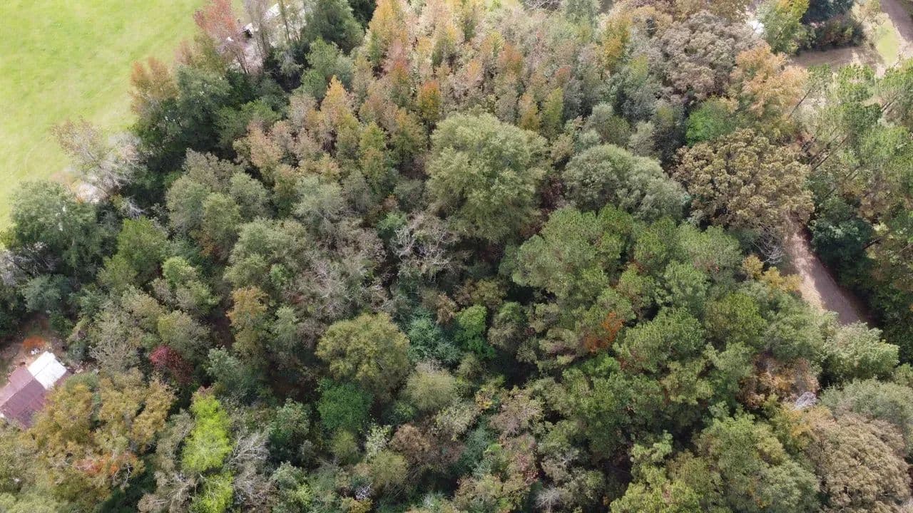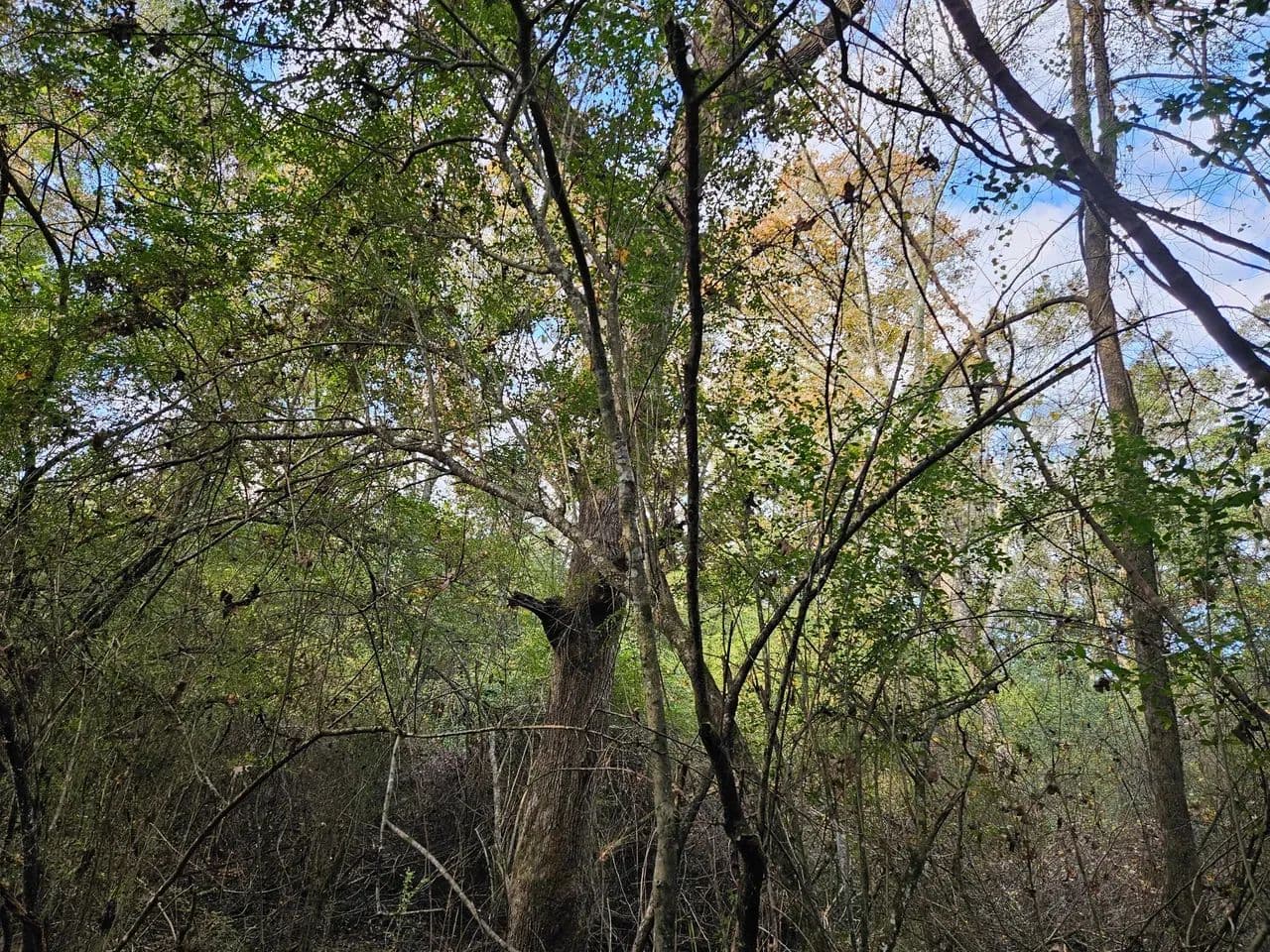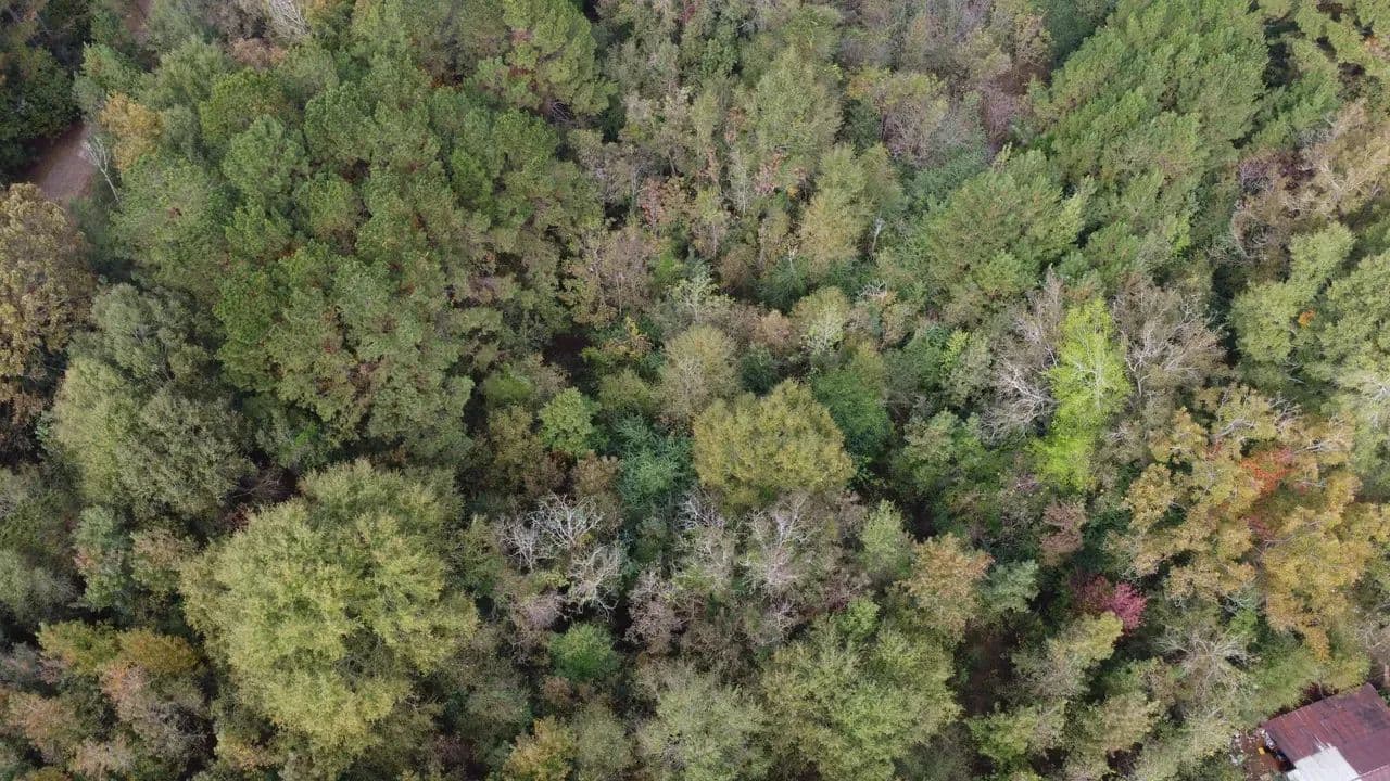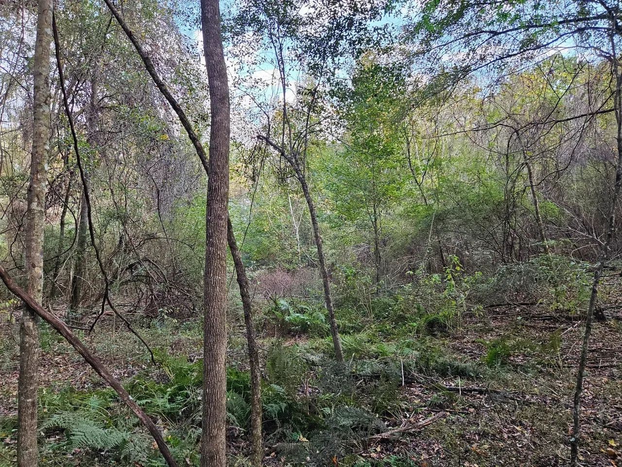 The land’s natural contour gently falls from the outer boundaries toward a broad, centralized interior, creating a subtle, sheltered “pocket” rather than a sharp ravine. Importantly, this shape does not diminish the tract’s desirability as a homesite. In practice, it’s an advantage: water sheds to the center, helping with natural drainage, while the higher shoulders near the road frontages provide stable, buildable positions with pleasant woodland views and privacy. With modest clearing and creative dirt work—think a compacted house pad and a driveway that follows the contour—you can establish a comfortable homesite on a perimeter shoulder or a midslope bench, leaving the interior lower area as a green backdrop, garden space, or wildlife corridor. Dual frontage gives you flexible design options: one access for the residence and another for a shop, barn, equipment, or future improvements, without crowding the main approach. You’ll be able to orient the home to catch breezes, look into the trees, and still keep a deep buffer of timber between you and the world.