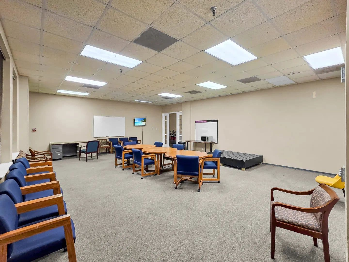 The 12,667 SF fellowship and reception center serves as the primary gathering space, offering a large meeting hall, four conference or dining rooms, a commercial kitchen, and multiple restrooms. A separate 6,133 SF meeting building provides a flexible open layout ideal for teaching, workshops, or group activities, supported by additional restrooms. The 1,319 SF chapel offers an intimate sanctuary designed for services, quiet reflection, or ceremonial use.
