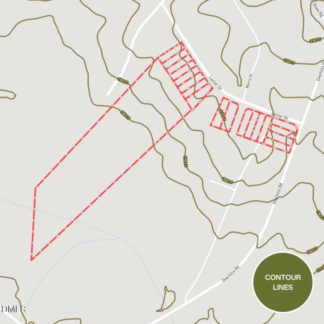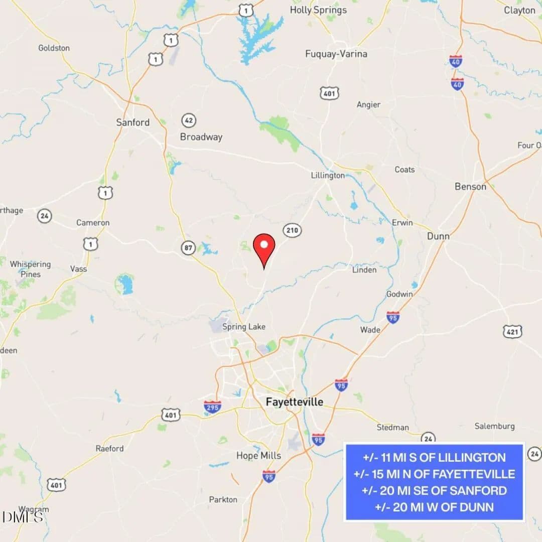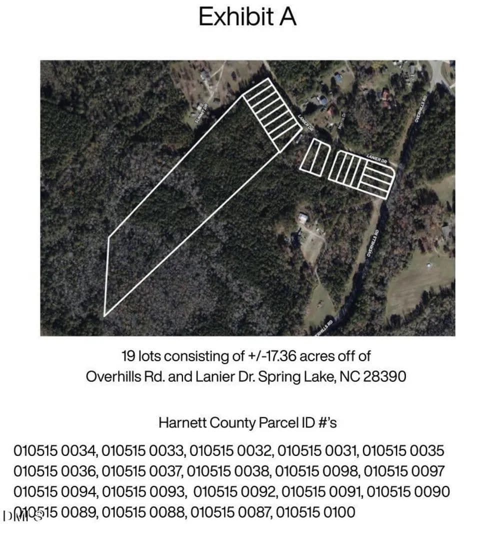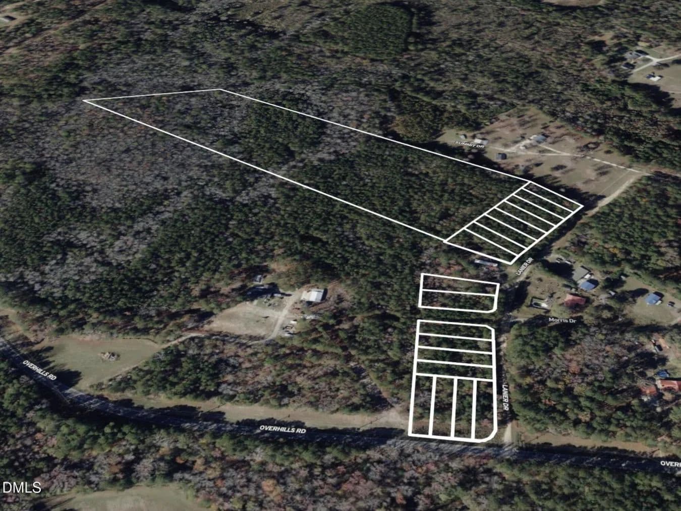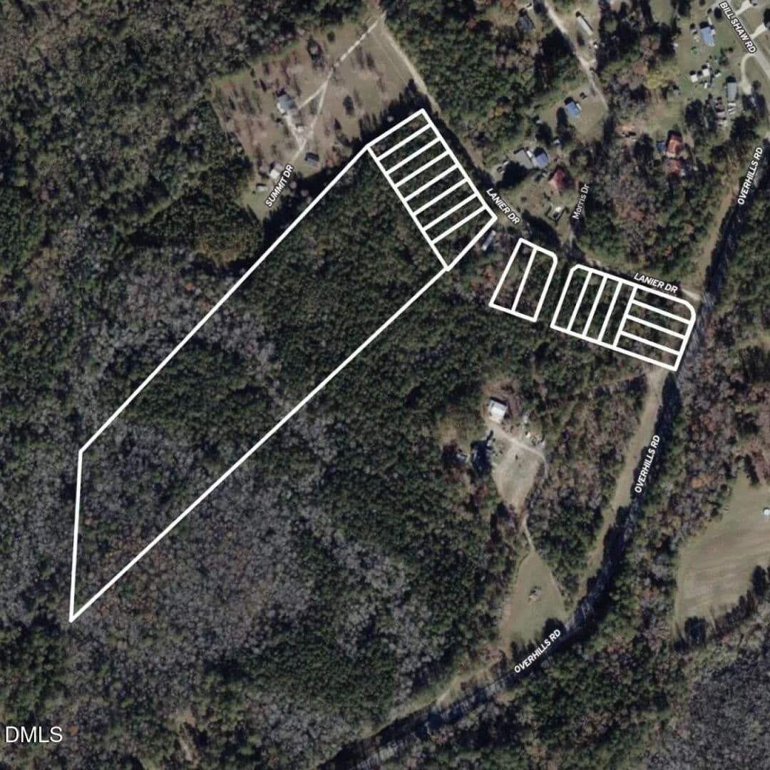 This offering includes approximately 17.36 acres in southern Harnett County, made up of 19 platted lots within the original Anderson Estates subdivision from the early 1970s. Under current zoning regulations, all but one of the lots do not meet today's minimum requirements individually and will need to be recombined, making this property better suited for a larger assemblage rather than a traditional development. Several of the lots have frontage along Overhills Road, creating an opportunity to sell off select road-front lots to recoup part of the investment, while retaining a larger contiguous tract located off the road for long-term ownership or recreational use. The South Prong of Anderson Creek runs along the rear of the larger parcel and provides privacy, wildlife, and recreational appeal. With the creek comes approximately 9± acres located within the FEMA 100-year floodplain, which should be considered in planning but also adds natural character to the property. Utilities available include electric service, county water, telephone, and Verizon 5G. Access is provided via Summit Drive and Lanier Drive, both unimproved dirt roads. Located between Lillington and Fayetteville, the property is well suited for a buyer looking to assemble a larger tract, with the potential to sell select road-front lots while retaining acreage off the road.