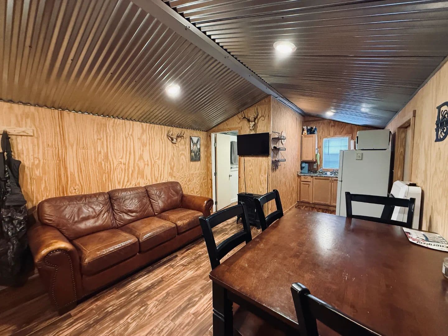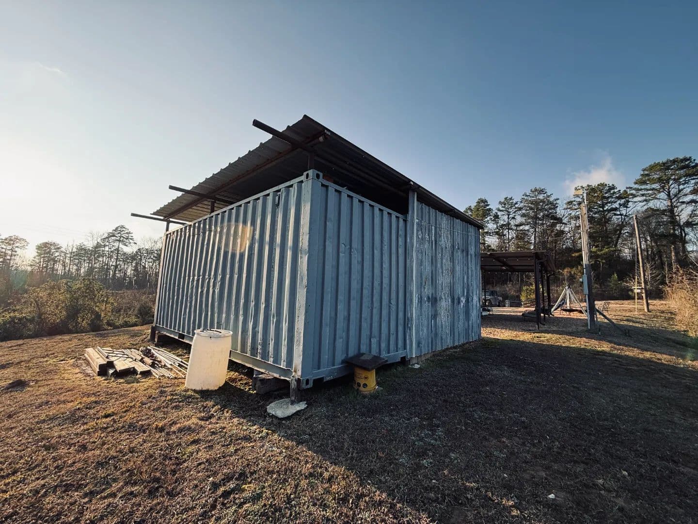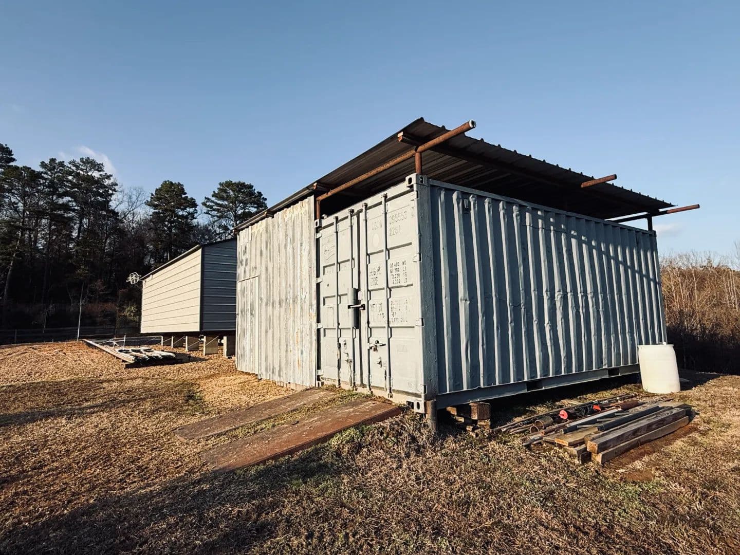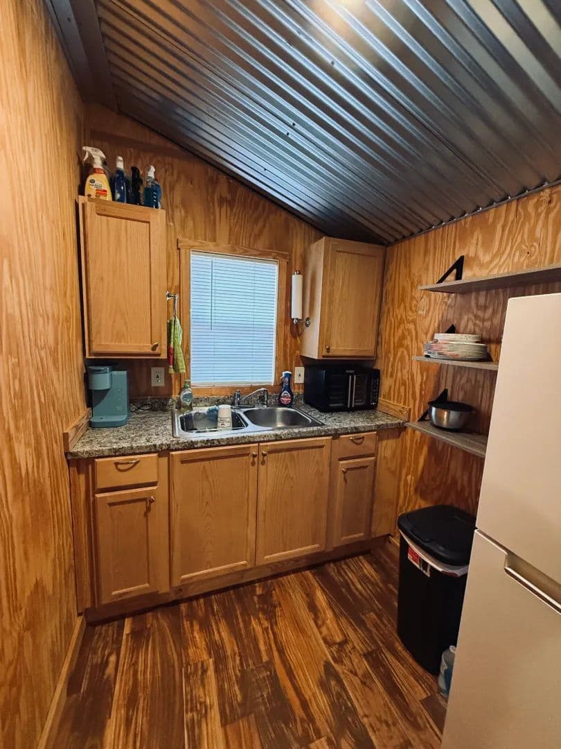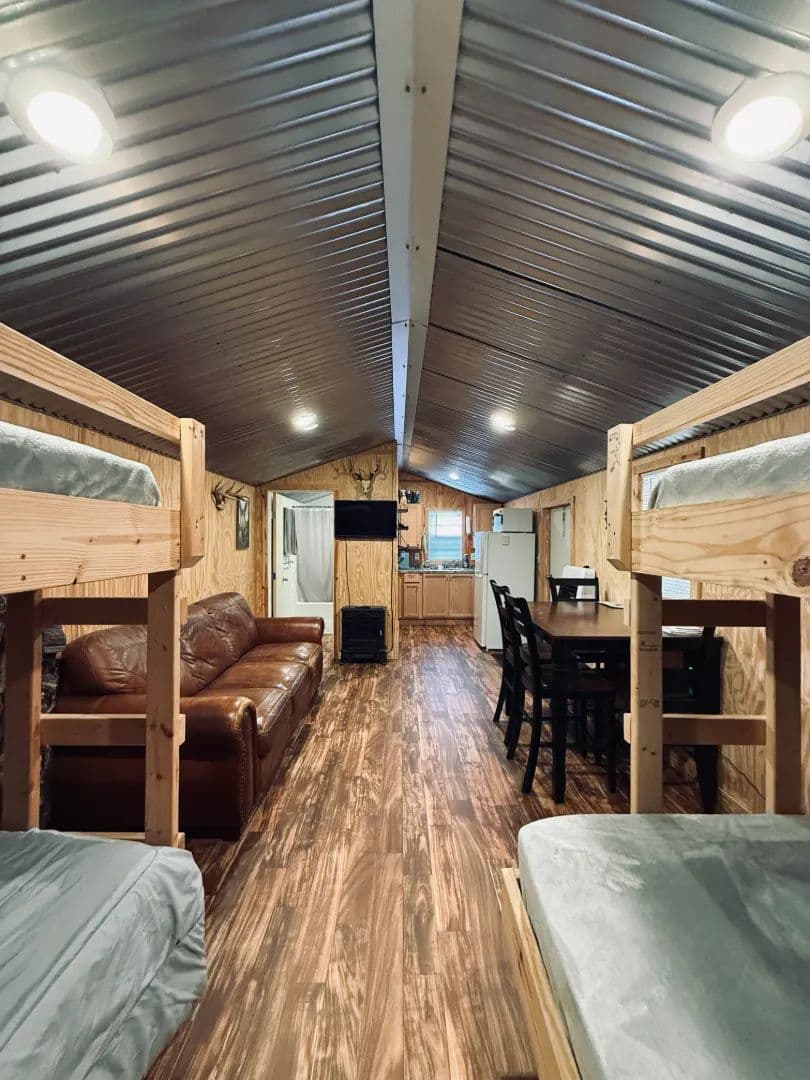 Upon entering through the gated entrance, you’ll arrive at a well-maintained 12’ x 28’ camp that is clean, tidy, and fully furnished. The camp features bunk beds, a full bathroom, a hot water heater, an 18,000 BTU propane heater, and an on-site septic system. The surrounding site has been meticulously maintained, and a covered area just outside the door provides a great space to relax after a day on the property. Additional improvements include an enclosed 12’ x 20’ cleaning shed and an 8’ x 20’ storage container, offering space for game processing, equipment, feed, and gear.