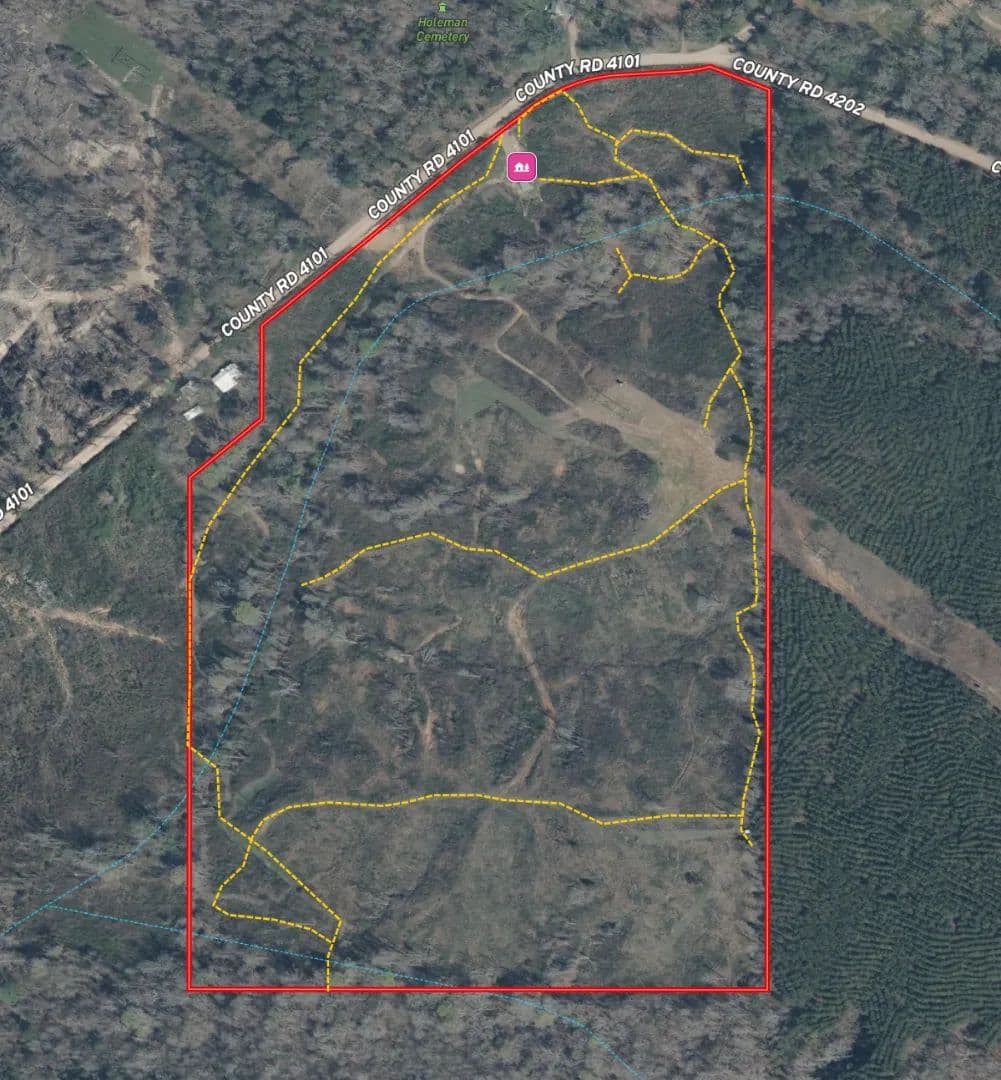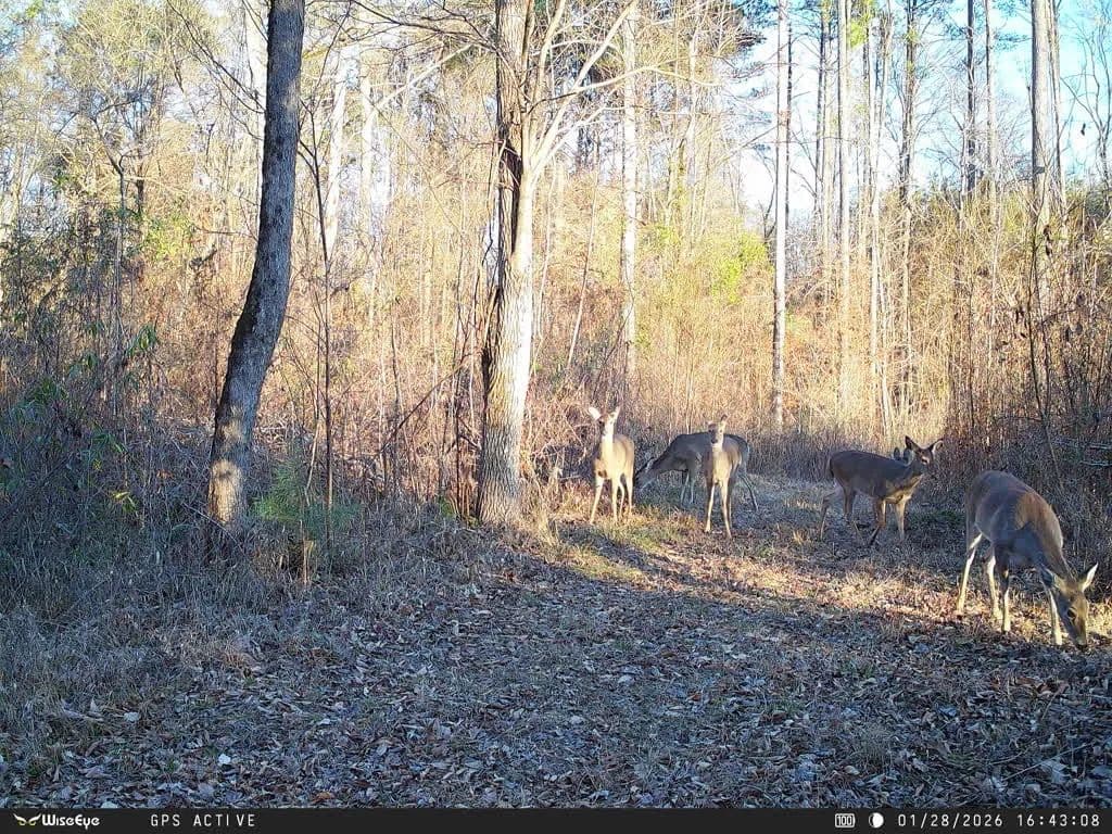 The land features hilly topography that is navigated by an established trail system throughout the approximately six-year-old cutover, with remaining SMZs. Two creeks run through the property, supplying reliable water sources for wildlife. With the combination of regrowth, terrain, and water, this tract offers ideal deer habitat and excellent turkey browsing. Multiple food plots are already in place, along with three box stands, two ladder stands, a 200 lb Boss Buck feeder, a