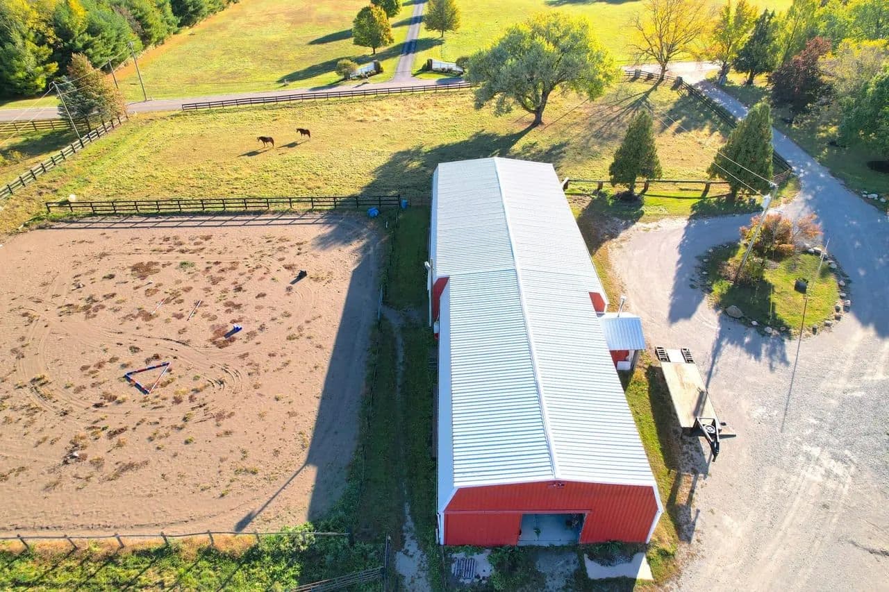 Riding arena barn: fully enclosed arena with 9+ stalls and room to expand