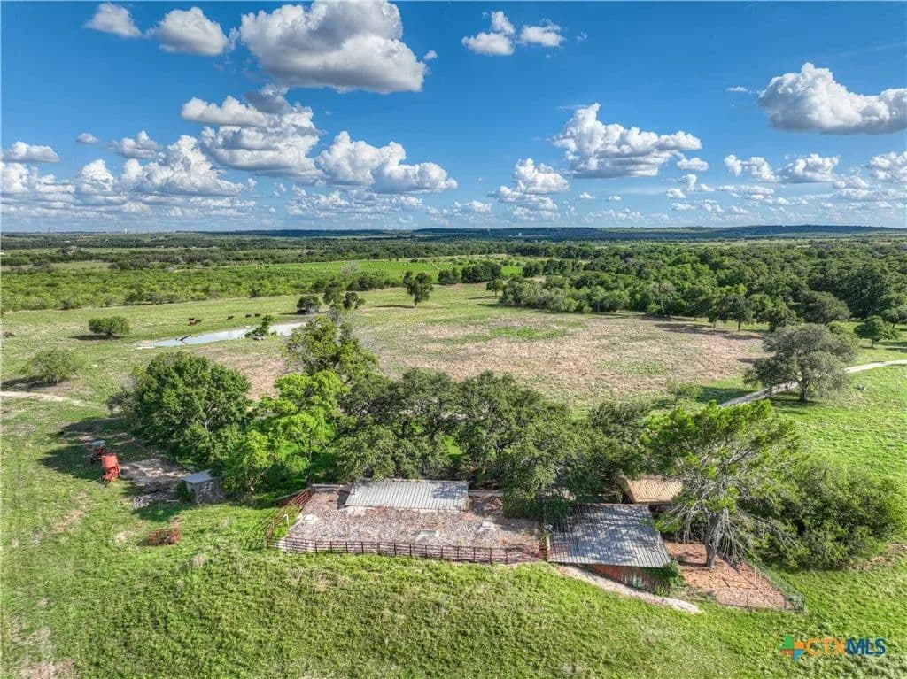 Nestled on an expansive 95.695 acres of pristine countryside, this picturesque property offers a rare opportunity to experience the charm of rural living with opportunity for commercial endeavors while being just a stone's throw away from modern conveniences. Surrounded by century-old oaks, the landscape is a testament to nature's timeless beauty, providing an idyllic backdrop for a variety of activities.The property includes 2 wells plus water supplied by Crystal Clear, ensuring a reliable water supply for various uses, including potential farming and ranching endeavors. Embrace the allure of the outdoors with ample opportunities for wildlife sightings and hunting, creating an unparalleled connection with nature right