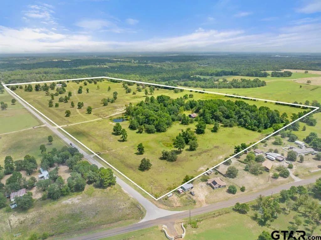 East Texas Ranch for sale with ponds!! Endless possibilities on this 84-acre country property! The 3-bedroom, 2-bath, 2-car garage home offers 1,957 sq ft of comfortable living space surrounded by beautiful pastureland. With front and back sitting porches, you'll enjoy sunrise and sunset views. Spacious kitchen/eating area is great cooking space for the chef of the family. Split floorplan with spacious family room and a large utility room. The land is fenced and cross-fenced, ideal for livestock or hay production, with two (spring-fed) ponds providing reliable water sources. Improvements include a barn, while the insulated shop with attached carport is perfect for projects, equipment, or extra storage. Whether you’re looking for a working farm, ranch, private retreat, or recreational playground, this property delivers the space and amenities you need. Welcome to the country!