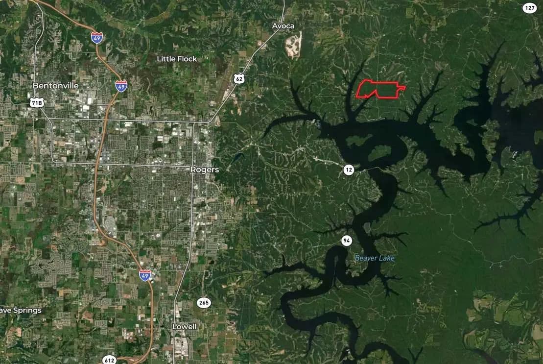 Beaver Lake 411 +/- acres. This is your opportunity to own one of the largest tracts of land on Beaver Lake. Property has multiple access points to enter the property. Approximately 3250 feet of Beaver Lake shoreline with most areas Corp line to the water. Close to everything in Northwest Arkansas, this property has development potential as well.