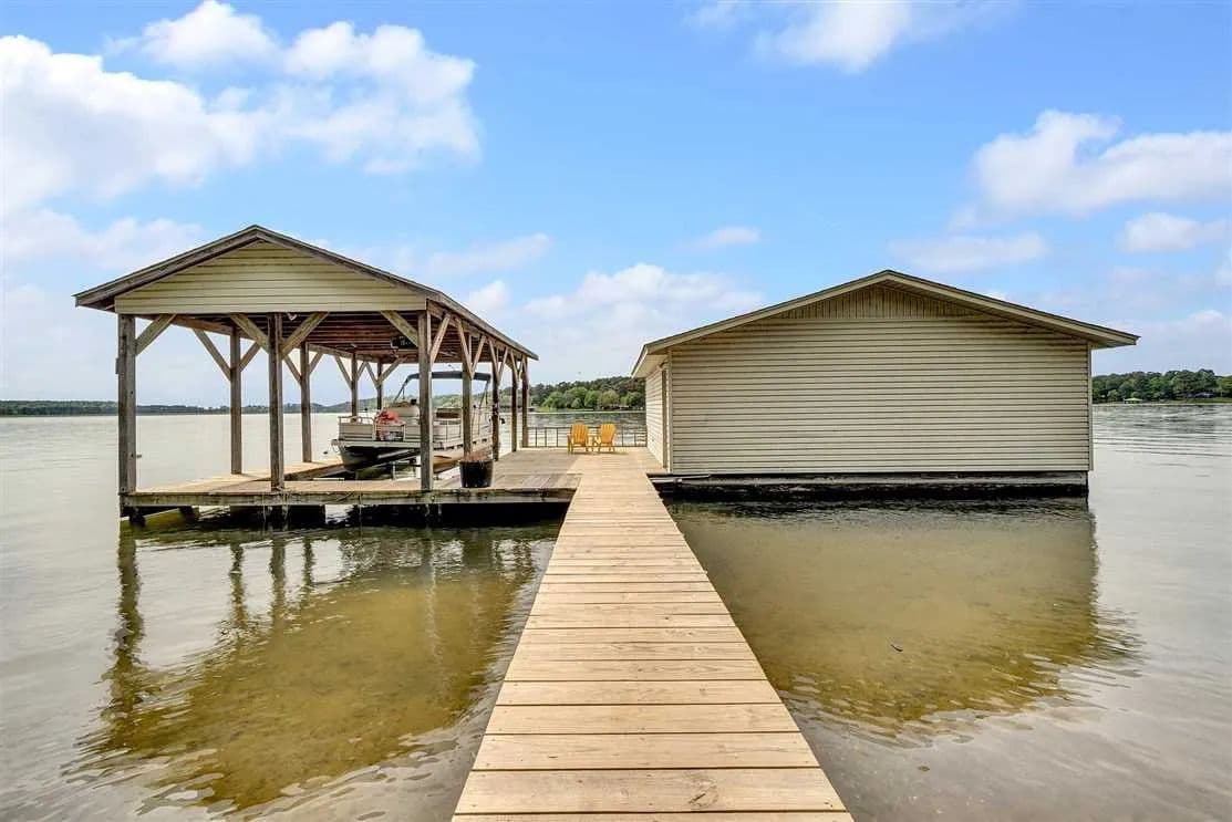 Beautiful one-story waterfront 3/4/2 car carport with 3000 SF on Lake Jacksonville. 180' water frontage, private boat launch, 3 stall boathouse with deck, and 2 lifts. Large, covered pavilion/basketball court with storage room. Concrete circle driveway. Gorgeous covered back patio. Backyard has brick storage room with full bath house with separate septic. Shaded back yard. Two living areas. Two master bedrooms with 400+ sf master bedroom currently used by owner and second master with large bath. Current owner removed step-in tub with door and converted area to large step-in shower, but tub is still on site for potential re-install. Huge den with wet bar overlooking lake. Fenced yard. Smaller metal storage building does not convey. With your updates you can make this a dream home of a lifetime. Call today before it's gone!