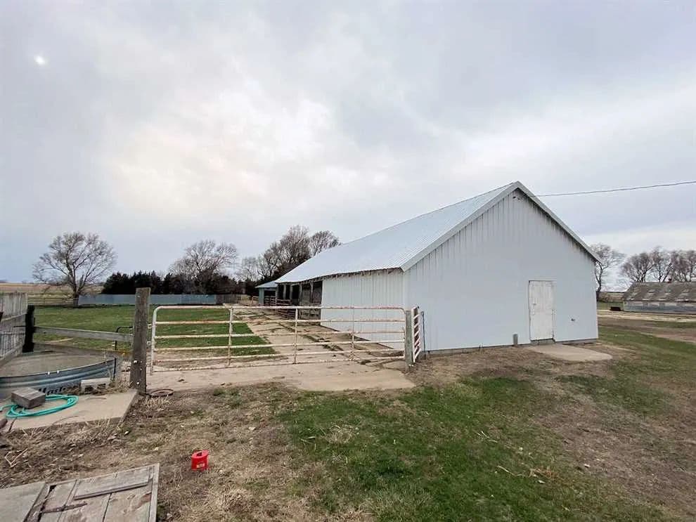 Description of Tract #1: The building site includes a large five bedroom/1 bathroom home, three car detached garage, two machine storage sheds, barn and open front loafing shed, small farrowing house, concrete fenceline feed bunks, numerous cattle yards with drinkers, grain bin, and excellent protection from mature shelterbelts. The wind protection and sandy soils make this an ideal location for calving cows, backgrounding calves, or setting up a headquarters for a purebred cattle operation.