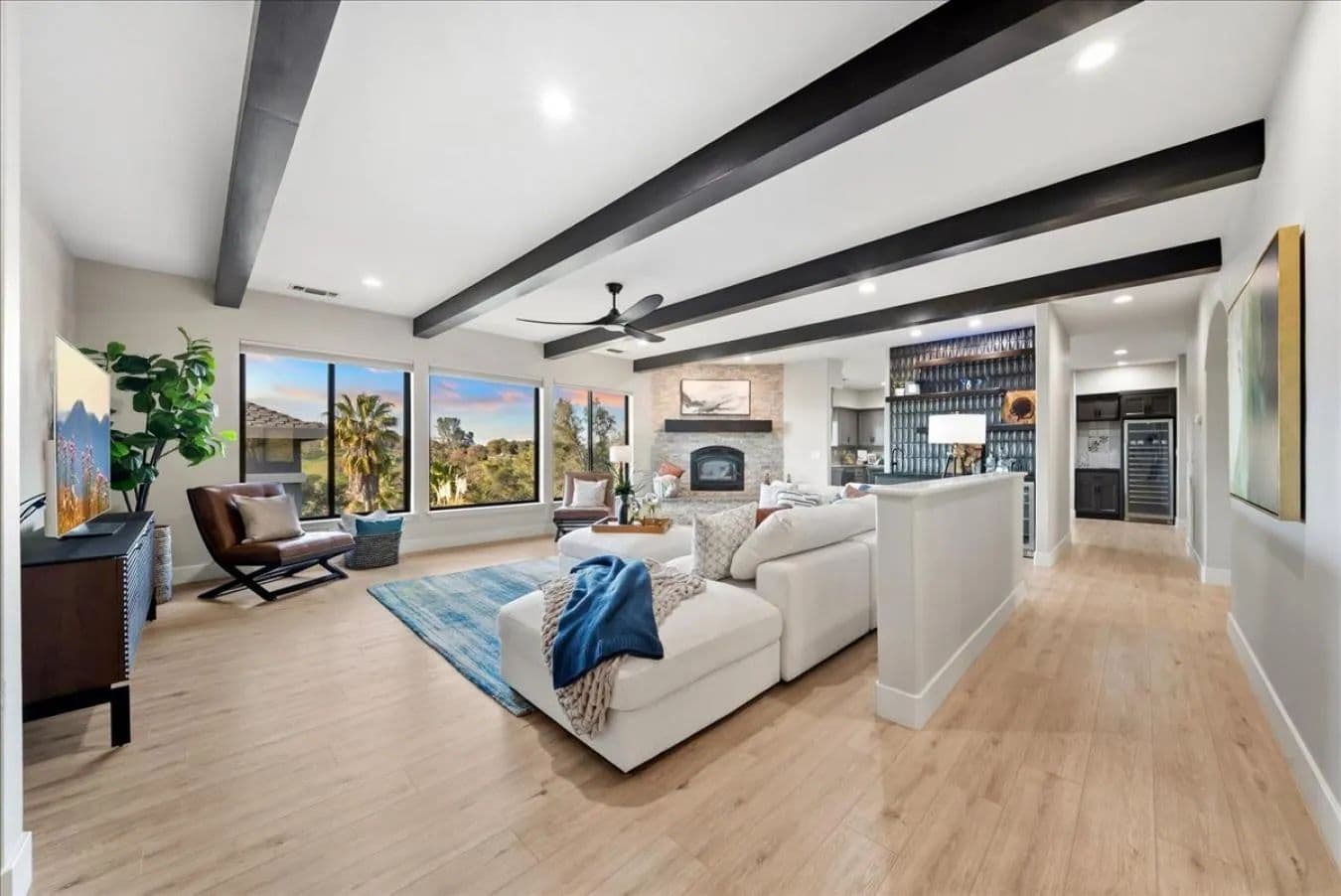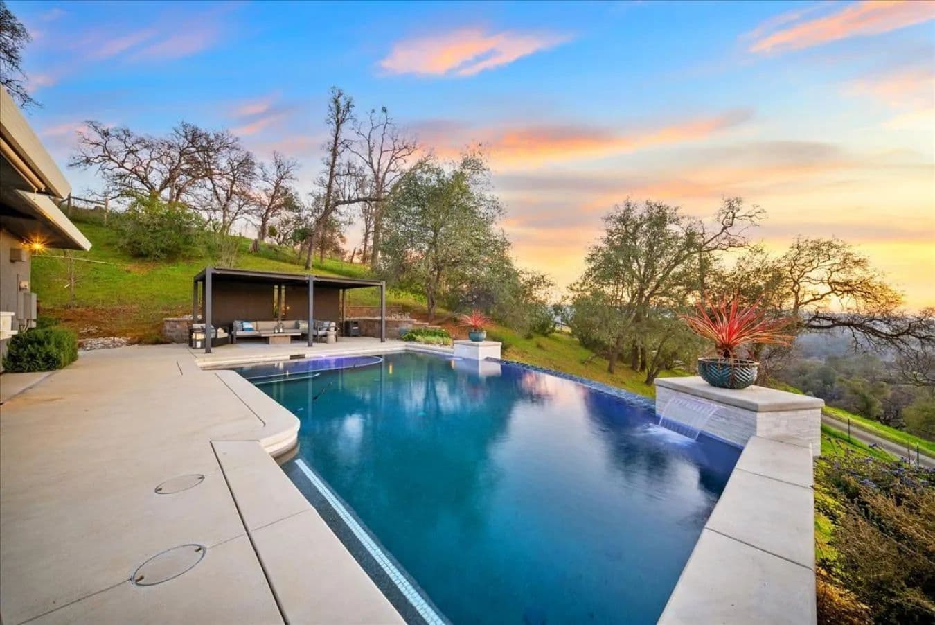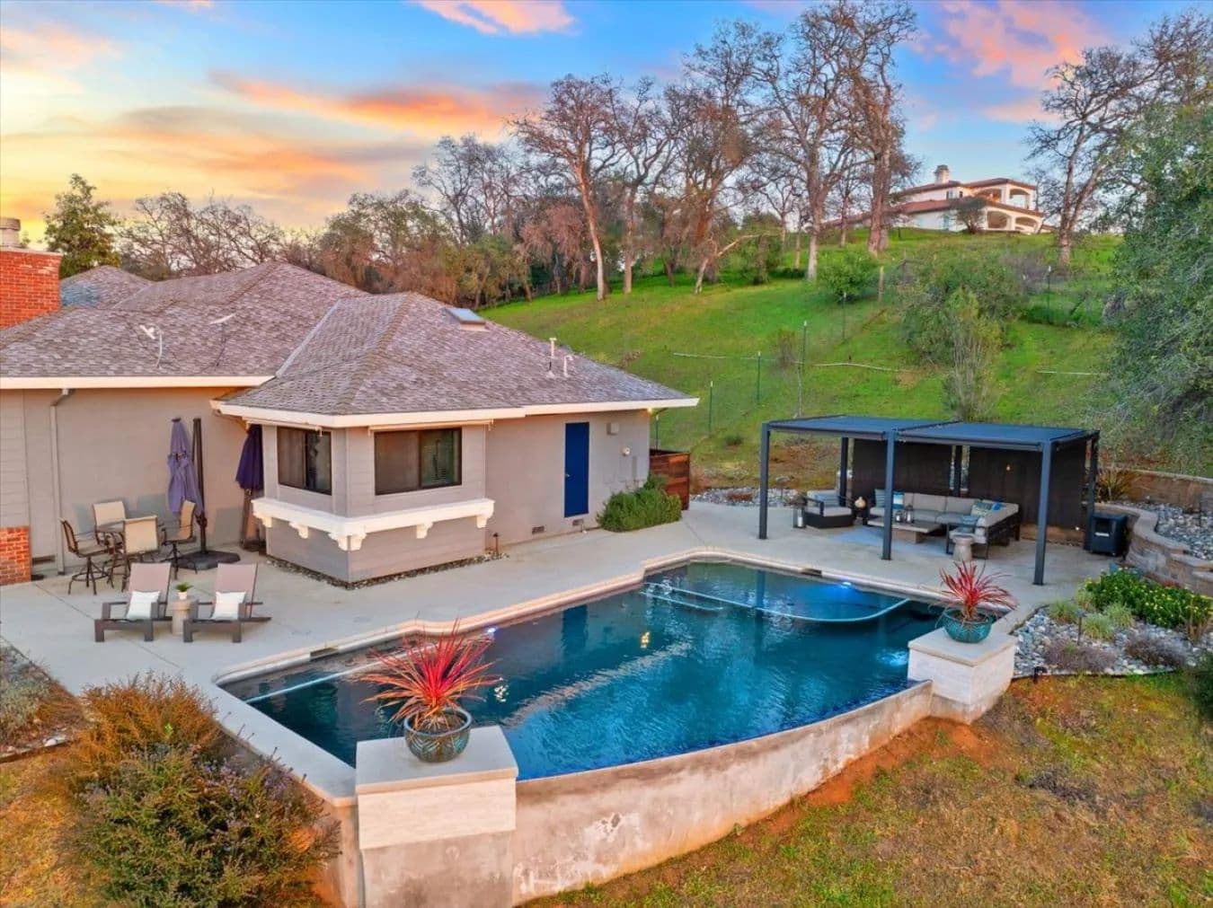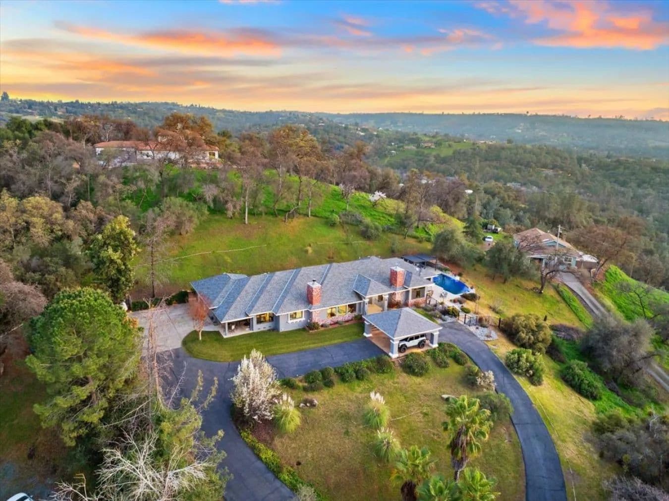 Every so often, a truly one-of-a-kind gem comes along. One that shows you just how beautiful life can be. Nestled among trees, rolling hills, orchards, breweries, wineries, and endless biking, this exceptional single-story Newcastle retreat captures the very best of its surroundings. Thoughtfully and thoroughly updated throughout, this possible five bedroom home is designed to showcase breathtaking views from nearly every picture-perfect window. The stunning, updated kitchen features a built-in wine fridge, expansive island with a second sink, and bright, neutral finishes, all complemented by light laminate flooring throughout. The inviting family room offers wood beams, a wood-burning fireplace, and a swanky built-in bar perfectly suited for entertaining while still highlighting the incredible views beyond. The oversized primary suite is a true sanctuary, complete with its own fireplace and a cozy space to relax and take in the scenery. The primary bathroom is truly one of a kind, featuring an oversized shower, heated floors, and magnificent high-end upgrades throughout.Step outside to enjoy the exceptionally high-end salt water pool, uniquely designed to be both heated and cooled, delivering a resort style experience year round.The 6.8 acres gives you privacy, circular drive way, parking and space to roam. Don't forget the NID irrigation water as well! Situated in Loomis Tk-8th schools and the wonderful Del Oro High School.