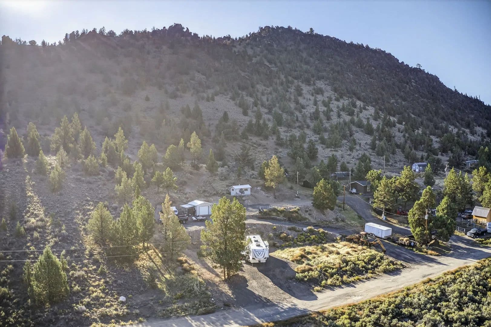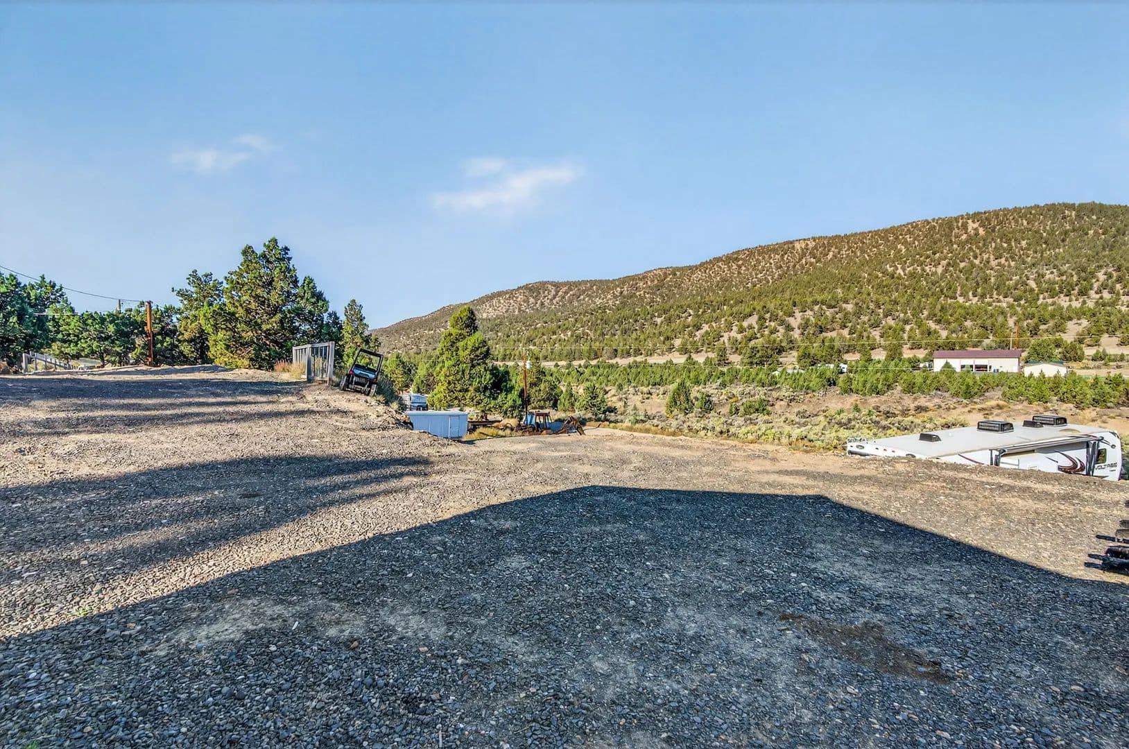 Improved 2.54 acre lot in the Juniper Hills Subdivision, ready for your dream home or manufactured home- properties this well prepared are hard to find. The previous home has been removed, offering flexibility to build on the original homesite or on higher ground for enhanced views. Most utilities are already in place, including power and community water, so there's no private well to maintain. Recent upgrades include new 1-inch PEX water lines, frost free hose bibs, and RV hookups, ideal for guests or temporary living while you build. A garage and storage building provide space for tools and outdoor gear. Just a short drive to the reservoir for fishing and recreation.