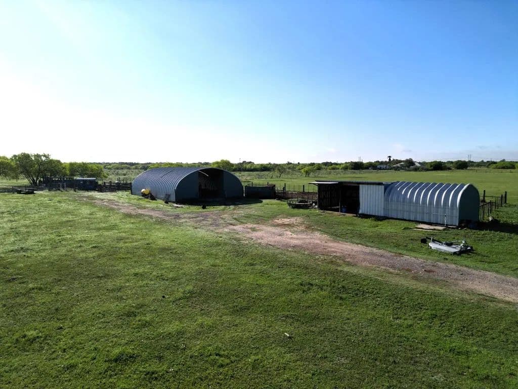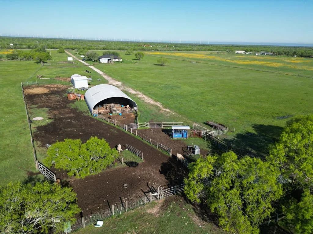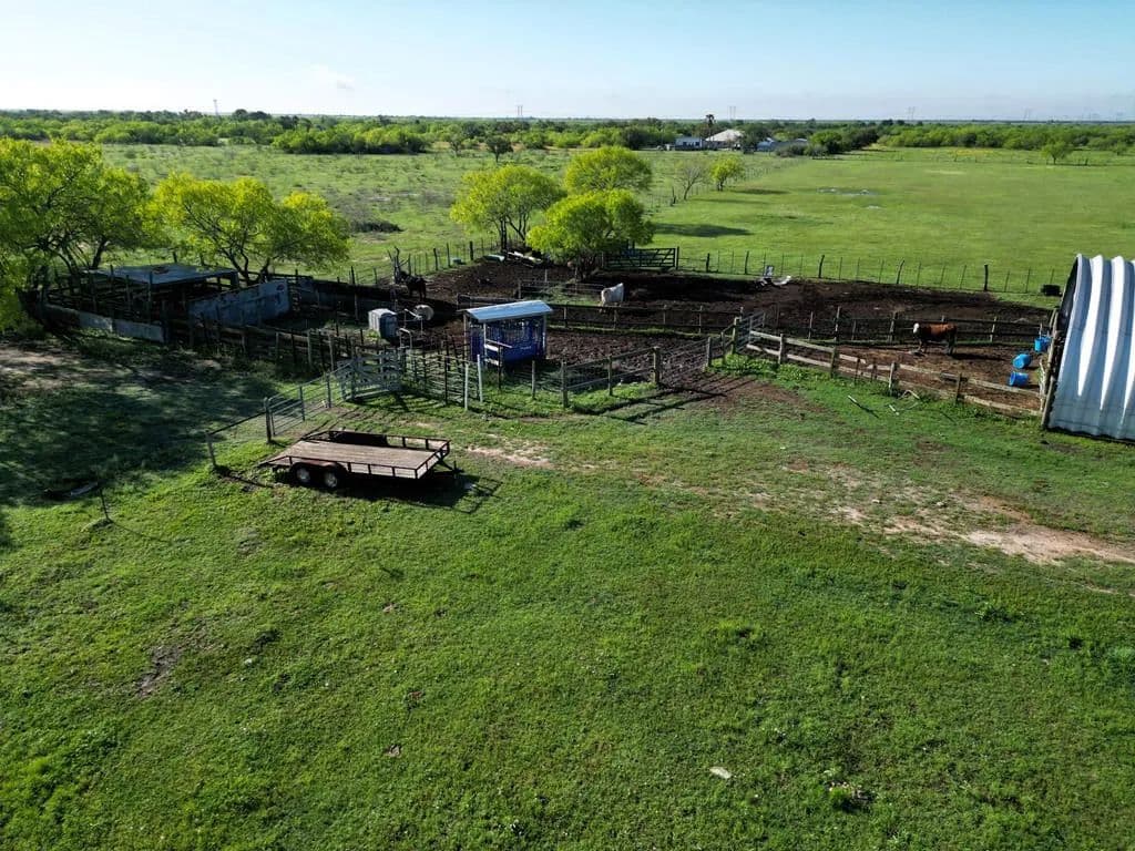 Experience serene country living on this 29.99 acre property located just outside Woodsboro, TX. 28.655 acres are Ag-exempt with net-wire fencing and cross-fencing, featuring five separate pastures for versatile use. The property includes many improvements: a spacious 60 x 40 Quonset-style barn, a 50 x 18 combo Quonset/pole barn, a 12 x 19 Quonset storage barn, a deep 178 ft water well, and a 12 x 18 pump house. The remaining 1.335 acres are homesteaded and host a 2,027 sq. ft. home set back away from the highway, offering added privacy and peaceful evenings. Inside, you'll find three bedrooms, two full bathrooms, an office, a generous 12 x 24 mud/laundry/multi-purpose room, and an attached garage. You'll love the expansive covered rear patio! Perfect for taking in the pasture views and refreshing breezes. Whether you're seeking a place for livestock, recreation, or simply a peaceful retreat, this property is ideal and waiting for you to call it yours! New HVAC system and HWH in 2025.