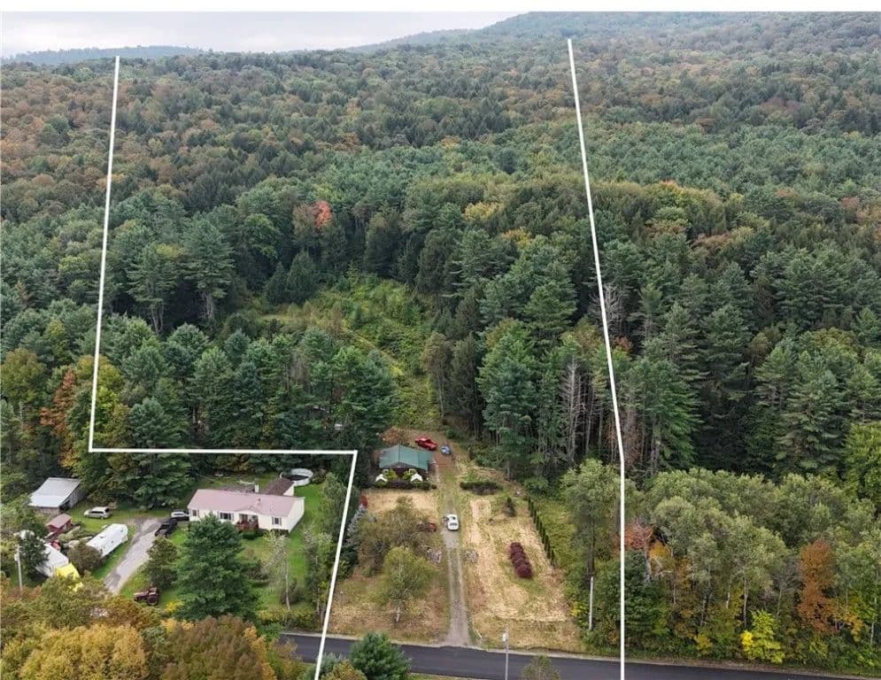 On site, a rustic “cabin”/garage adds to the charm, an authentic base camp ready for your gear, a cozy landing spot after a day outdoors, or a blank canvas to transform into your dream retreat. Imagine crisp autumn mornings with deer moving through the trees, long summer days exploring your own trails, and evenings by a crackling campfire under a blanket of stars. Whether you’re seeking a hunting getaway, a weekend retreat, or a slice of upstate heaven to make your own, this property delivers the space, seclusion, and natural beauty to create memories for years to come.