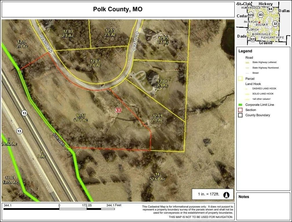 Ready to build your dream home? This is the perfect spot to build a lovely estate home. These three adjoining lots offer nearly six acres of space and privacy. Located in a gated subdivision, the property has underground electricity provided by Southwest Electric Cooperative and community water at each lot. The neighborhood includes streetlights and paved roads. The location is minutes from CMH Hospital, with easy access to Highway 13. It is in the Bolivar School District and less than 30 minutes from Springfield city limits. Come see this property and start dreaming of the home you have always wanted!
