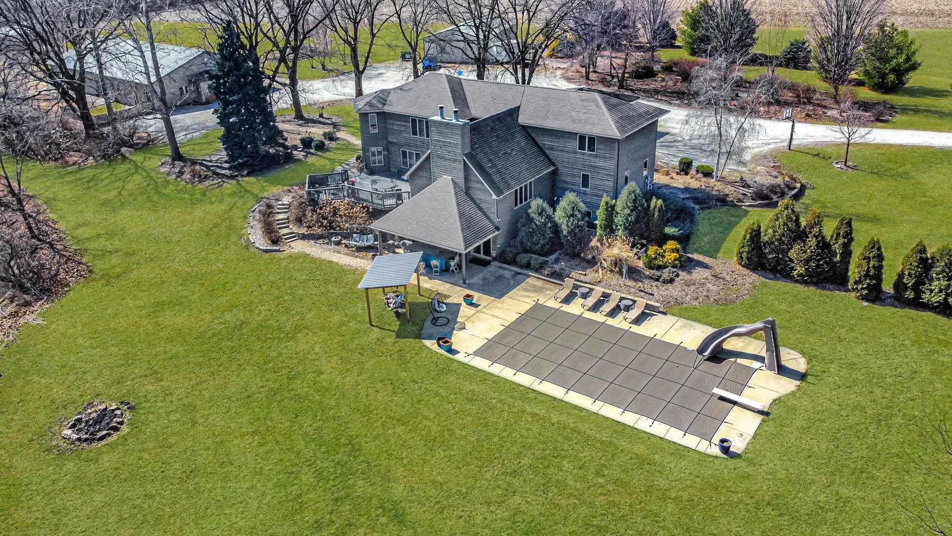 Country living at its best! Fabulous custom home with 3 levels & 5544 sf of finished living space. Features include 5 bedrooms, 3 1/2 bathrooms & 3 1/2 car garage, 5th bedroom option of office/guest room with Murphy bed, open floor plan in Living, Kitchen & family room, vaulted ceilings & Luxury vinyl plank flooring in Living room, gorgeous woodwork throughout, Gourmet dream kitchen with Thermador cooktop, 2 dishwashers, 18' granite island workspace with seating for 8, Andersen windows, Generac generator, partially finished basement with cemented crawl and so much more. For entertaining is a 2-level Trex deck off the main level, a lower level rec room with kitchenette & fireplace, direct access to the covered bar and 20x40 in-ground pool. ~~The 2004-built Operating Kennel is 4400sf and has 21 individual kennel runs with Epoxy flooring, 5 outside fenced play areas, inside play area, office & reception area, grooming room with bathing area for both small & large dogs, full kitchen, Laundry room, storage area, power washing system with 3 quick connect stations, security system & heat sensors with alarm monitoring, radiant floor heat, 2 back up GFA furnaces with C/A & Generac generator. ~~Also 2000-built FBI pole barn 30x55x12 with tall sliding doors front & back, electric & gravel floor; 29x48 3-sided shed with animal pens & cement floor; 9 tillable acres currently in alfalfa mix hay. SE corner has 3 acres with woods & creek. Zoned A1 & horses are allowed. By appointment only to qualified buyers.