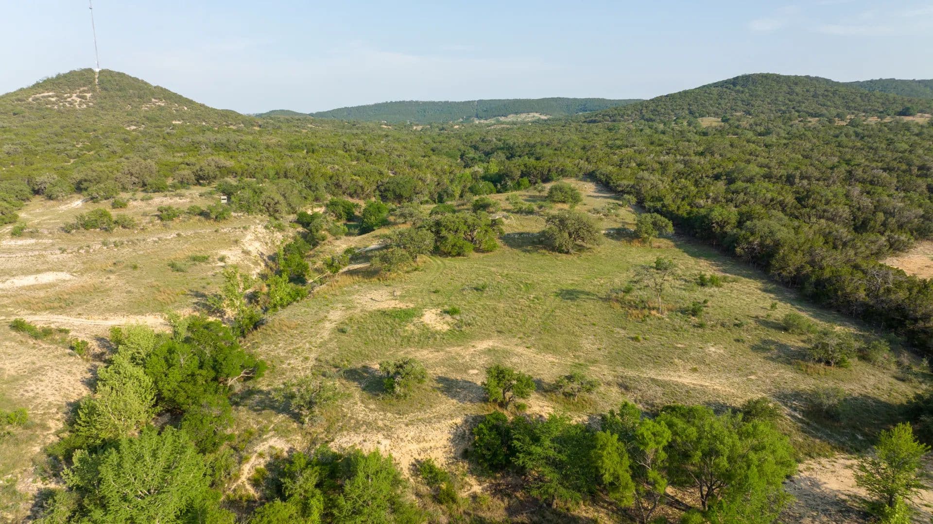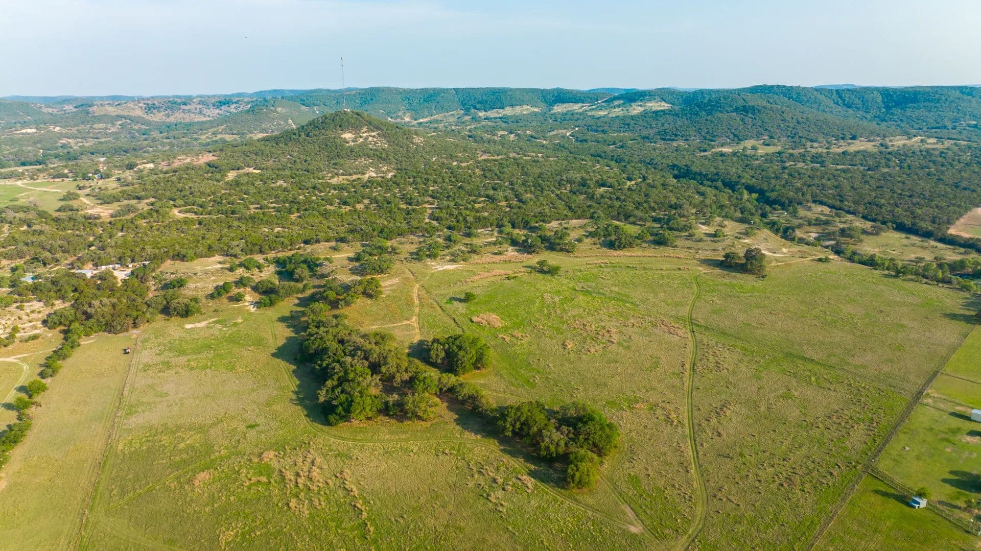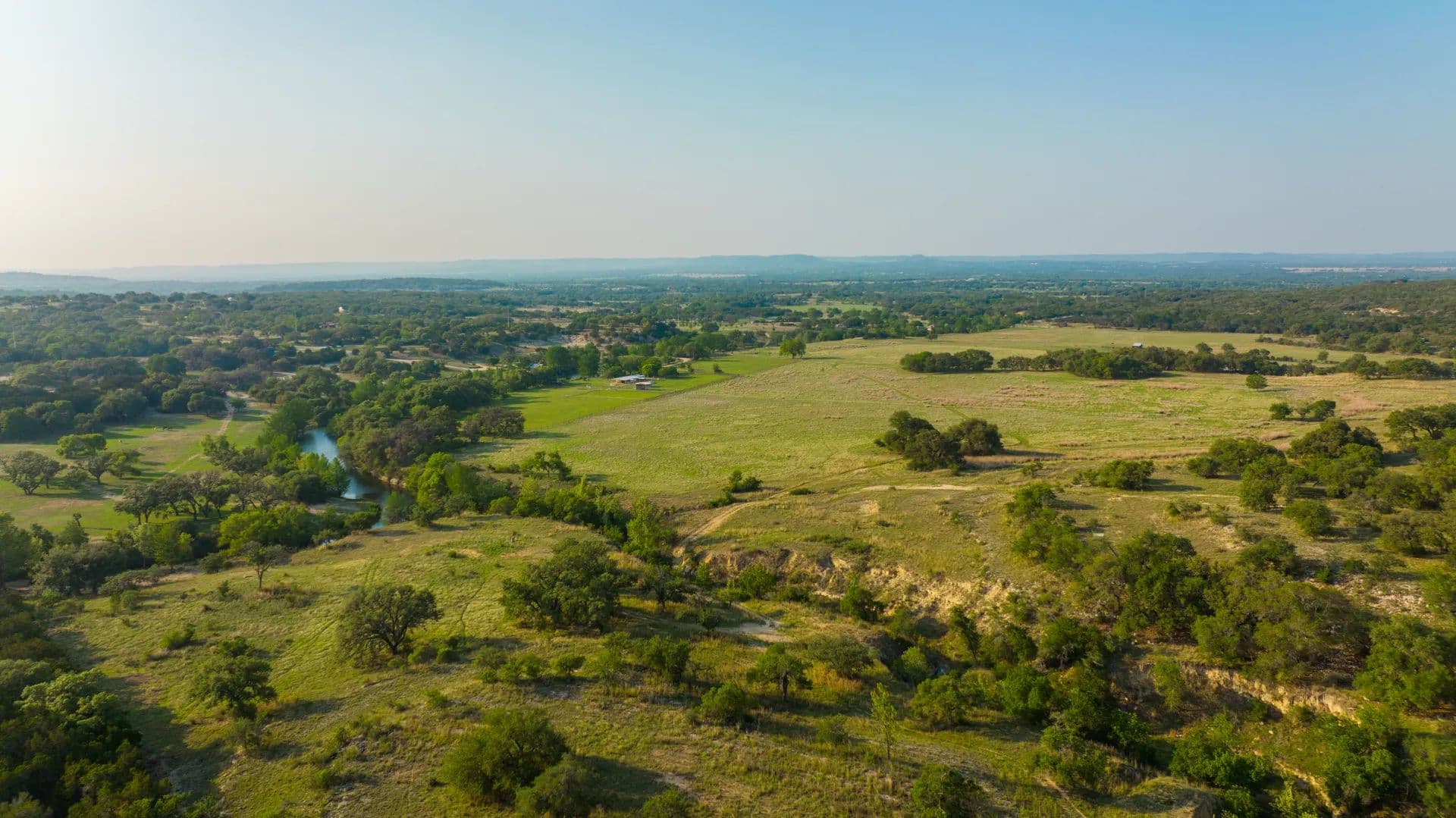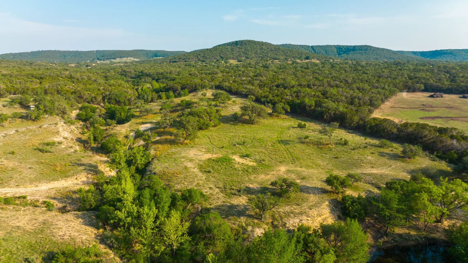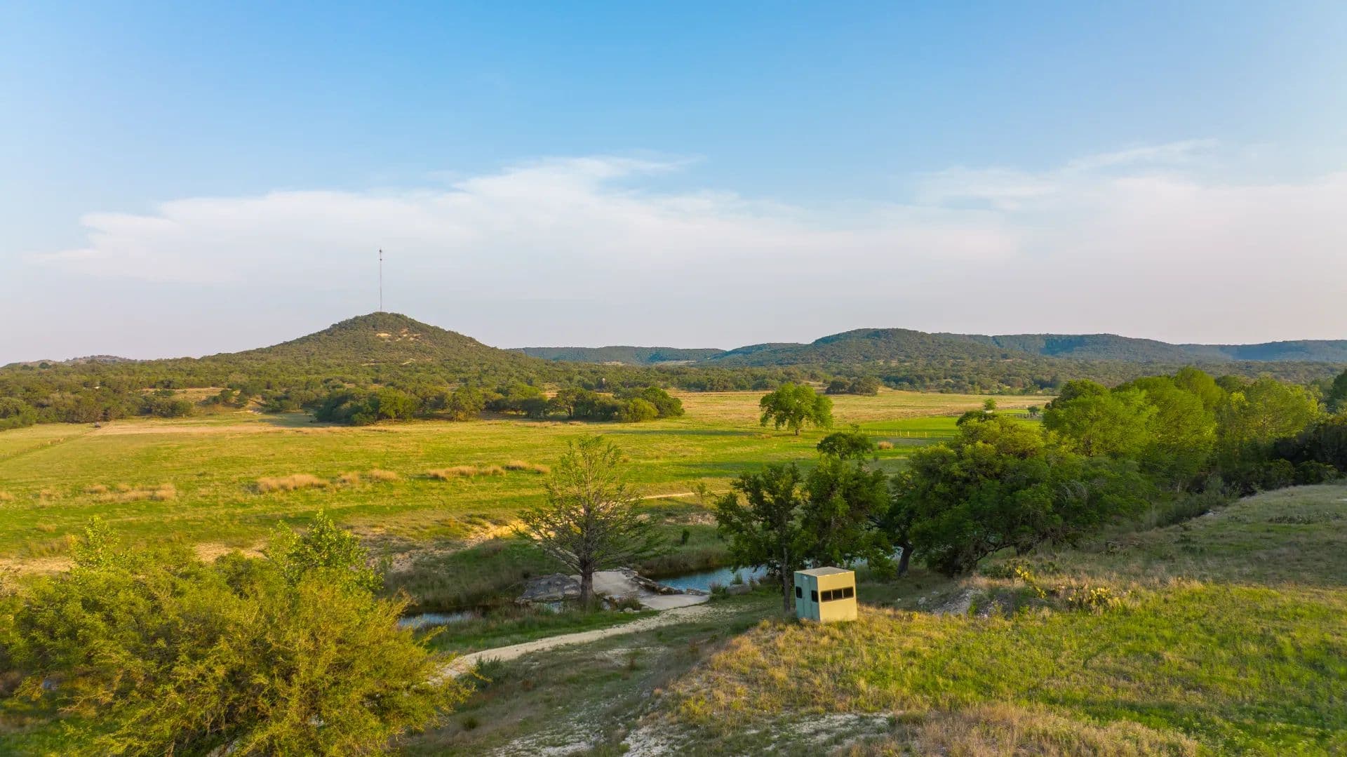 The ranch features both sides of the dammed-up, crystal-clear, cypress-lined Cypress Spring Creek, panoramic views with multiple building sites, tall mature trees, abundant wildlife, and lush pastures. Cypress Springs Ranch has multiple ideal home sites offering gorgeous views of the surrounding Hill Country. This ranch is a recreational retreat in a nicely secluded yet easily accessible location, offering endless adventure for outdoor enthusiasts.