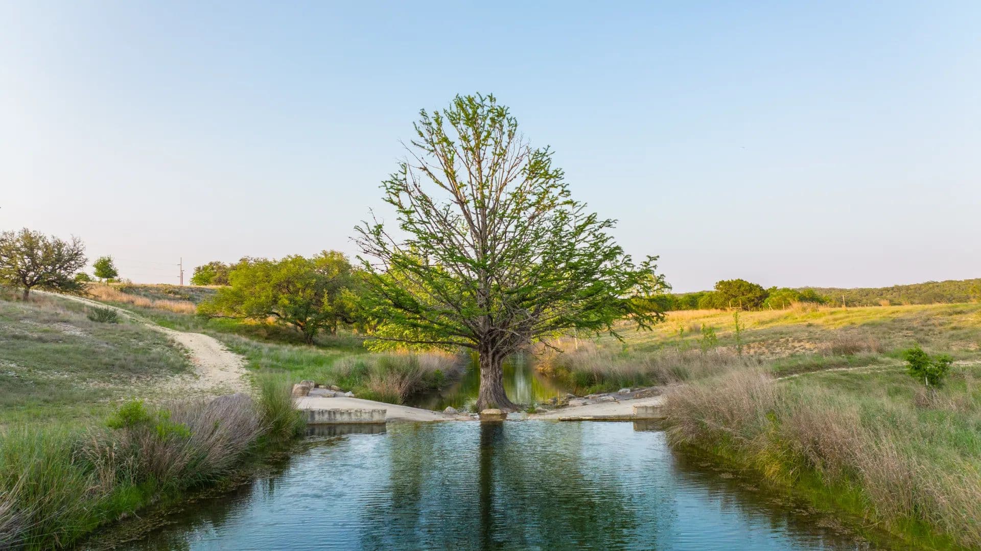 Cypress Springs Ranch features approximately 700 +/- feet of both sides of clear, year-round Cypress Springs Creek. A well-constructed dam holds back an ample amount of water. The ranch also includes three permitted water wells, each pumping 17.45 GPM and permitted for a maximum of 12 acre-feet annually. Additionally, a windmill well supplies water to a small pond for cattle and wildlife.