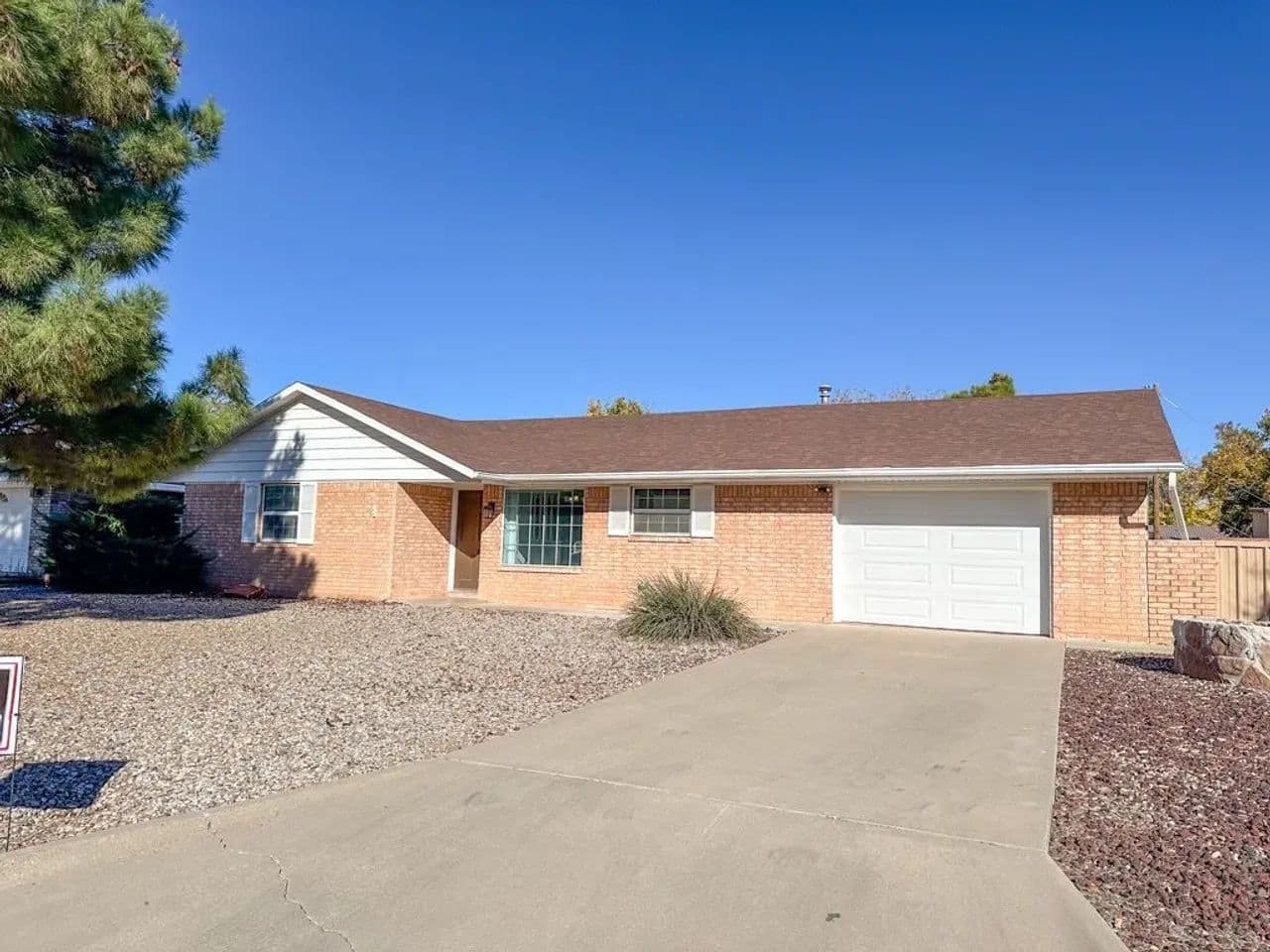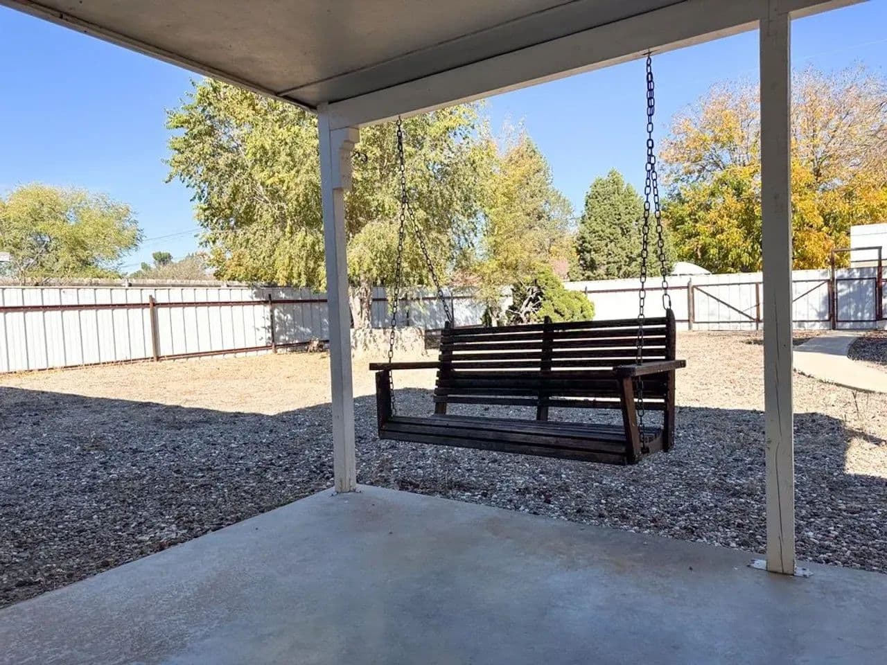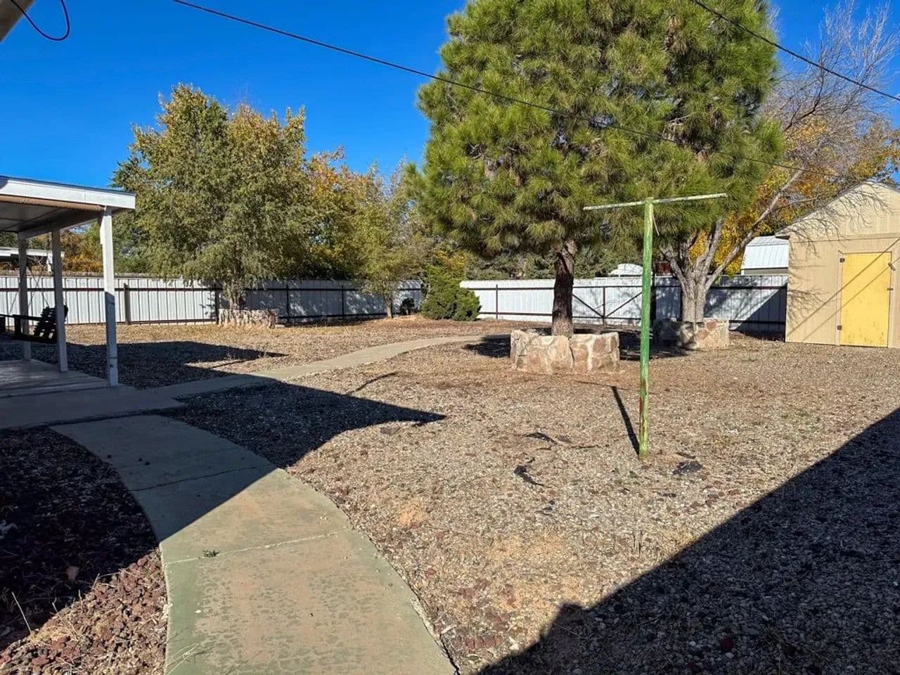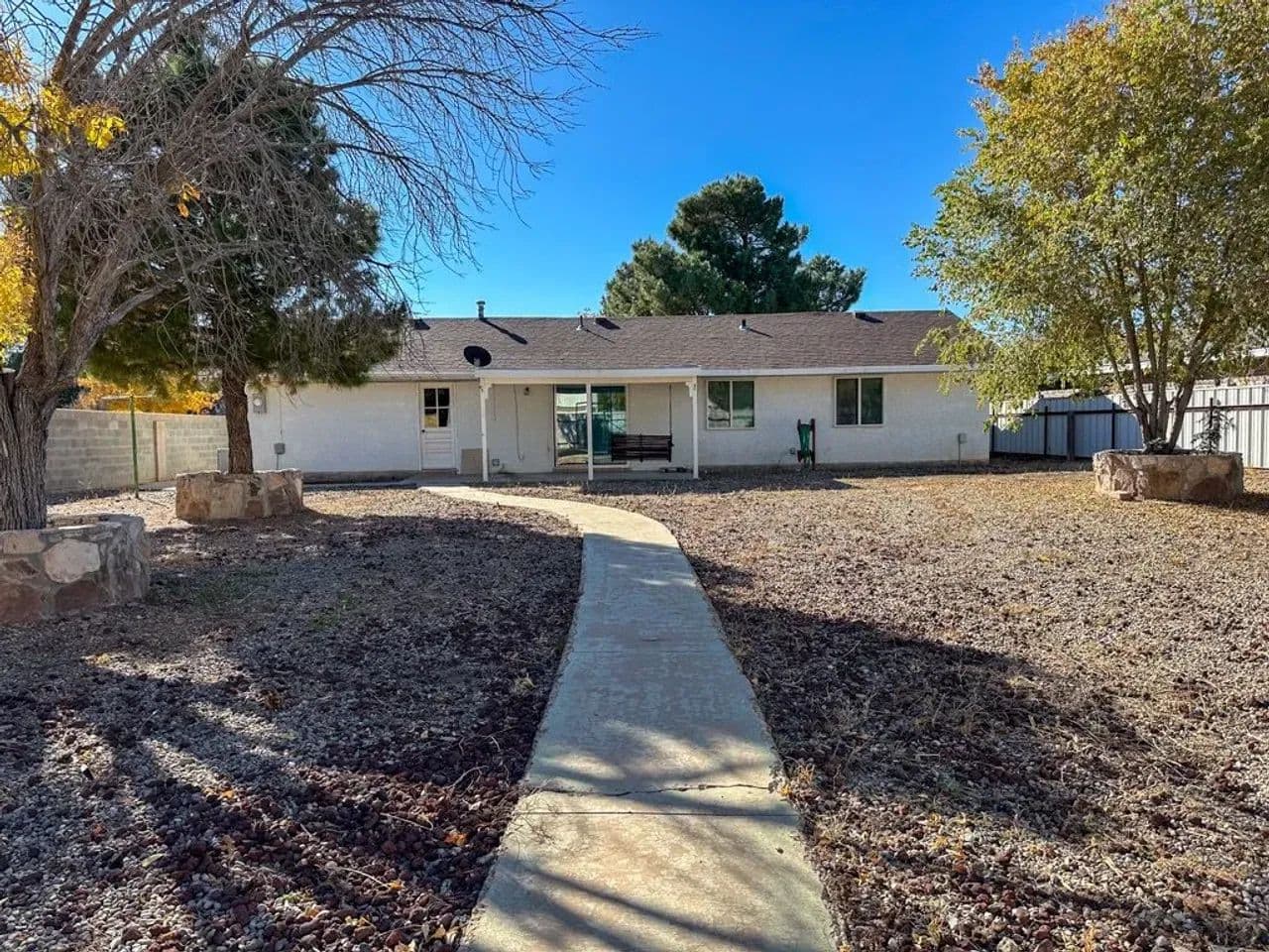Charming Single-Family Home with Spacious Enclosed Back Yard This well-maintained 2-bedroom, 1.5-bath ranch-style homesituated on a spacious .26-acre lot in Roswell. This property offers an open floor plan with an attached one-car garage featuring anewer (1 year old) garage door, along with recent exterior updates including an approximately 5 year old shingle roof and newgutters. The large, fully enclosed backyard provides privacy and versatility, complete with a 16-foot gate for easy vehicle, RV, orequipment access from the alley and a storage shed. Enjoy outdoor living from the covered back porch, accessible through asliding glass door, perfect for relaxing or entertaining. Low-maintenance gravel landscaping surrounds the home, accented bylarge mature trees that add shade and character to the property. This home offers comfort, practicality, and room to enjoy bothindoor and outdoor living. Conveniently located on the growing north side of Roswell near shopping and dining.