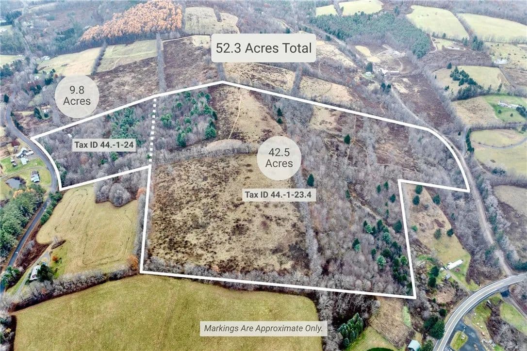 Two Parcels Include Tax ID 44.-1-23.4 (9.8 acres) and 44.-1-24 (42.5 acres). 9.8 Acre parcel also listed separately, listing number R1650355.