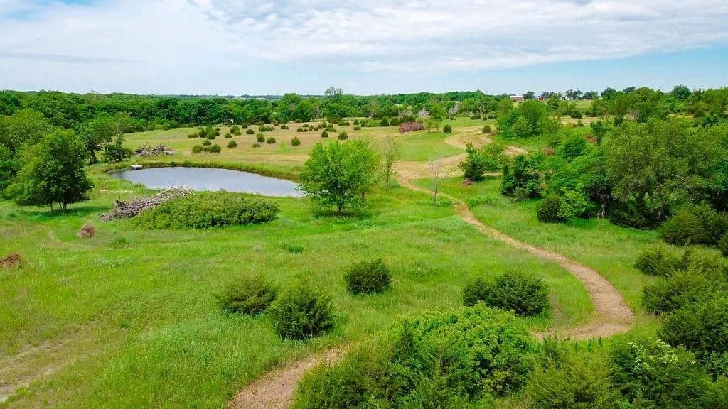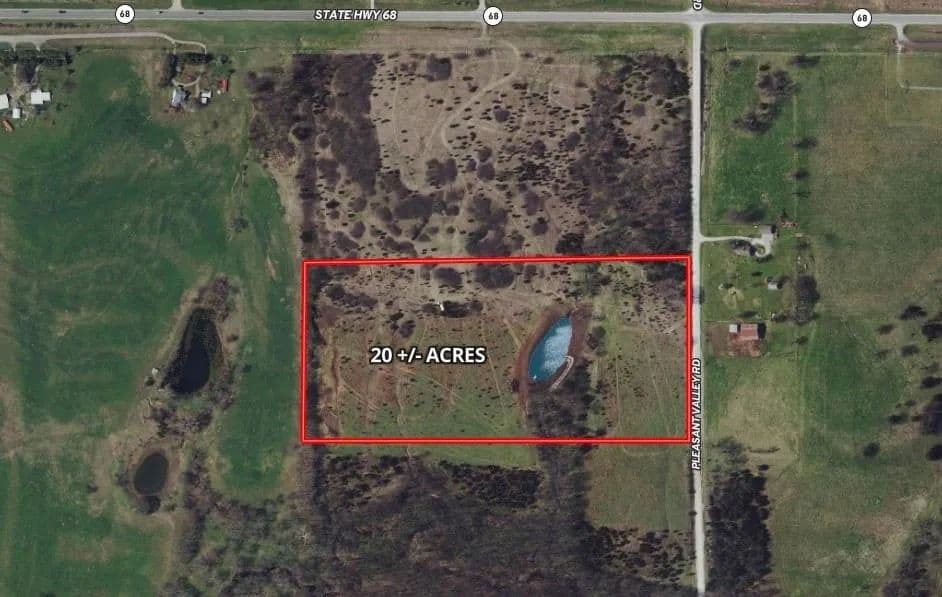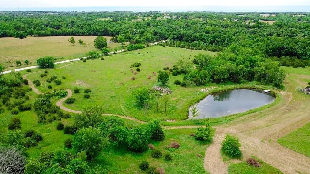 Spectacular rolling hills with a scenic mix of mature trees, open pasture, and a private pond with a dock make this property ideal for both recreation and a future homesite. Multiple elevated build sites offer peaceful views overlooking your own pond. Outdoor enthusiasts will appreciate the excellent hunting and recreational potential, with frequent whitetail activity, natural funnels, and space for food plots or feeders. Enjoy hunting, fishing, ATV riding, camping, or target practice, all on your own property. A new gravel driveway and culvert are already in place, providing easy access to the property and leading directly to a new 20 x 30 outbuilding featuring a 10’ tall garage door, and a 7’ access door—perfect for storing ATVs, hunting gear, boats, or equipment. Located just minutes from Hillsdale Lake, you’ll have quick access to some of the area’s best fishing, while still enjoying an easy commute with convenient access between I-35 and Hwy 169. Private, peaceful, and versatile—use it recreationally now or build your dream home overlooking the pond in the future.