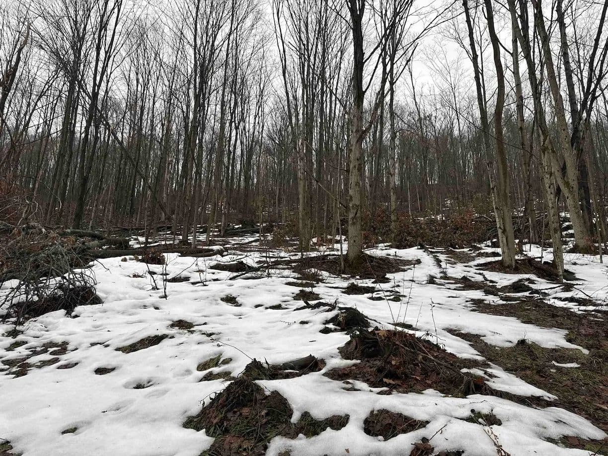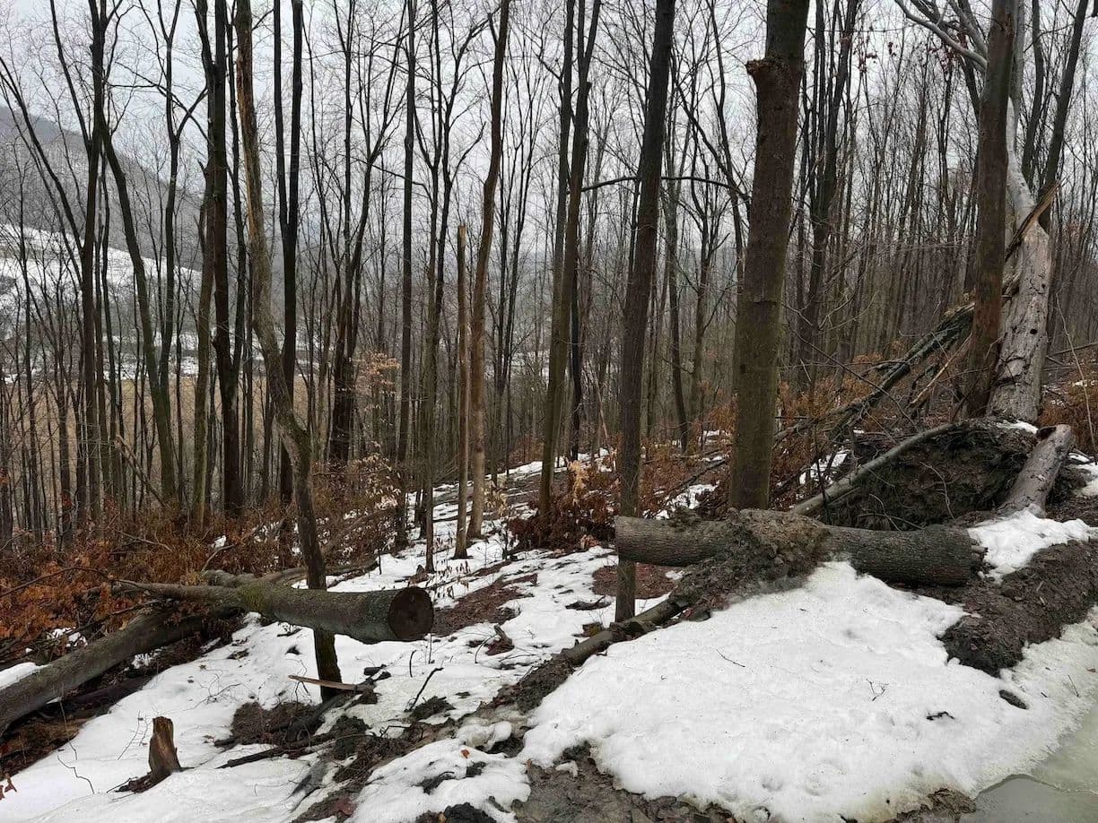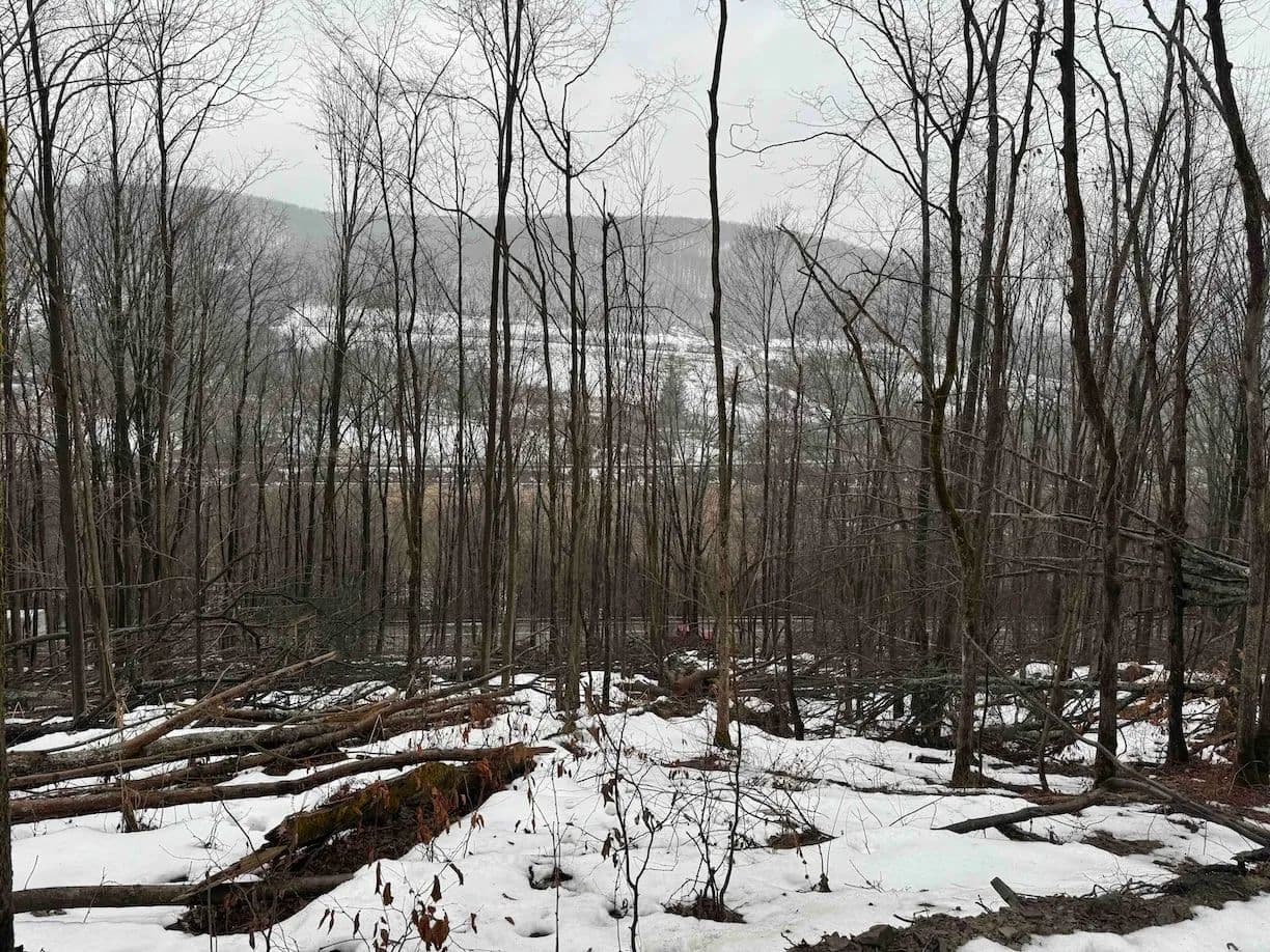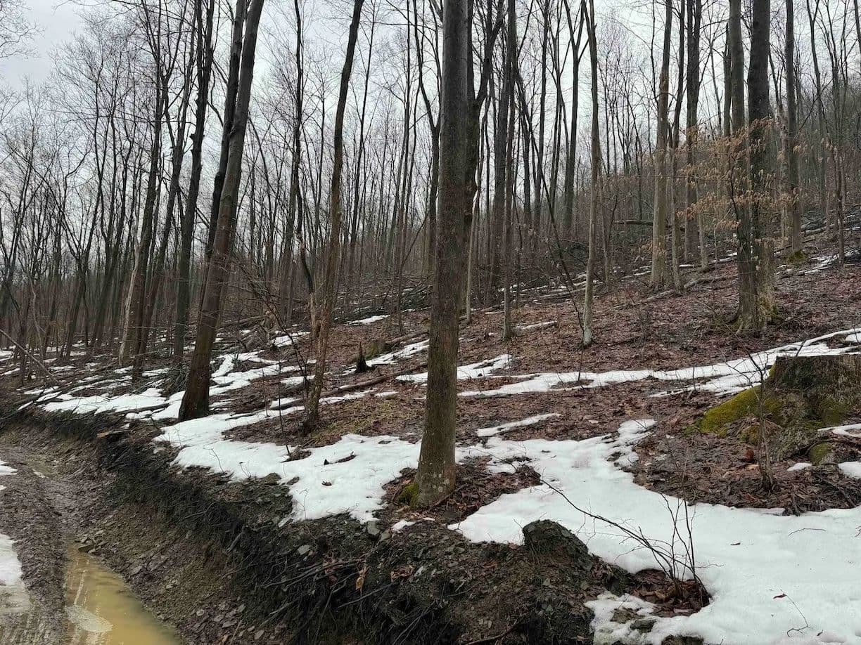 The land is mostly wooded with hardwoods and the terrain has an upward slope throughout most of the property. There is a clearing upon entrance that could be used to build a home, cabin or even set up a trailer. The property is currently being logged. The loggers are almost done but due to the weather, they cannot finish until early or late spring. The seller will sign a notice of intent but will not close on the property until the logging is completed to make sure the buyer is happy. The trailers on the property will be removed prior to closing. There are trails established throughout that will be cleaned up and graded prior to closing for easy access. Whitetail deer sign throughout. Nice opportunity to get the property at a decent price, and with the right management, the forest will grow back in no time. All rights convey.