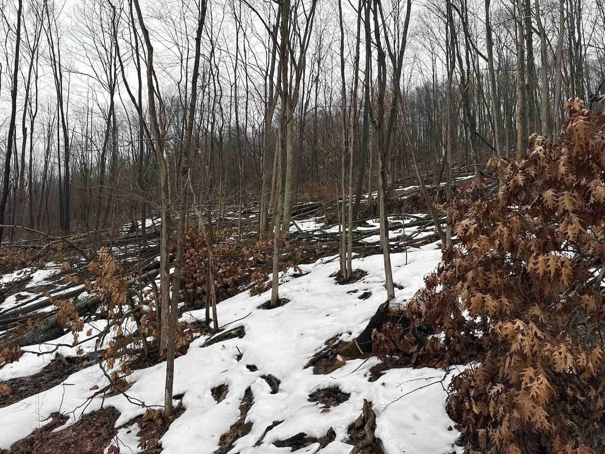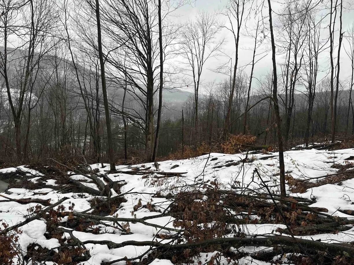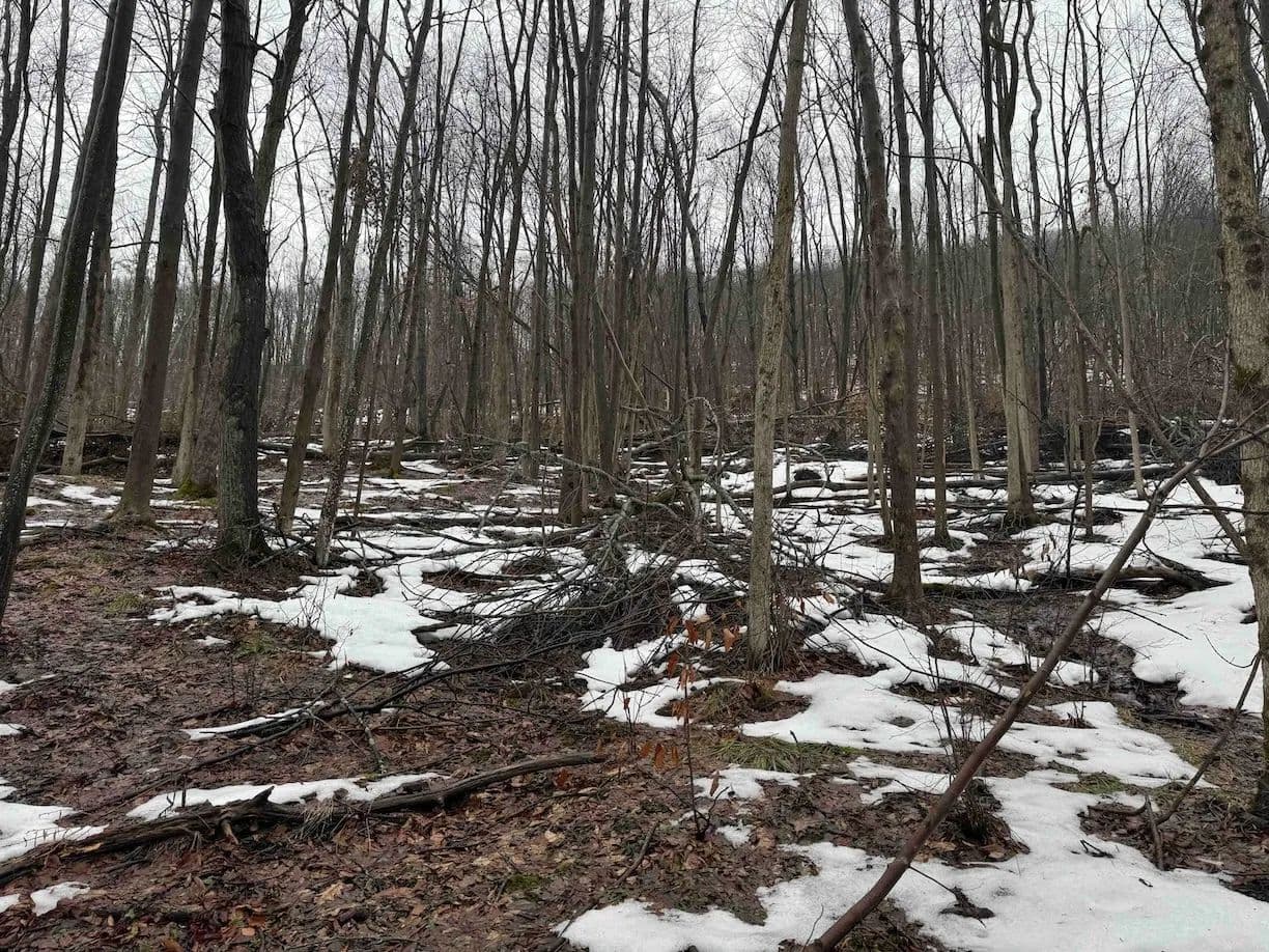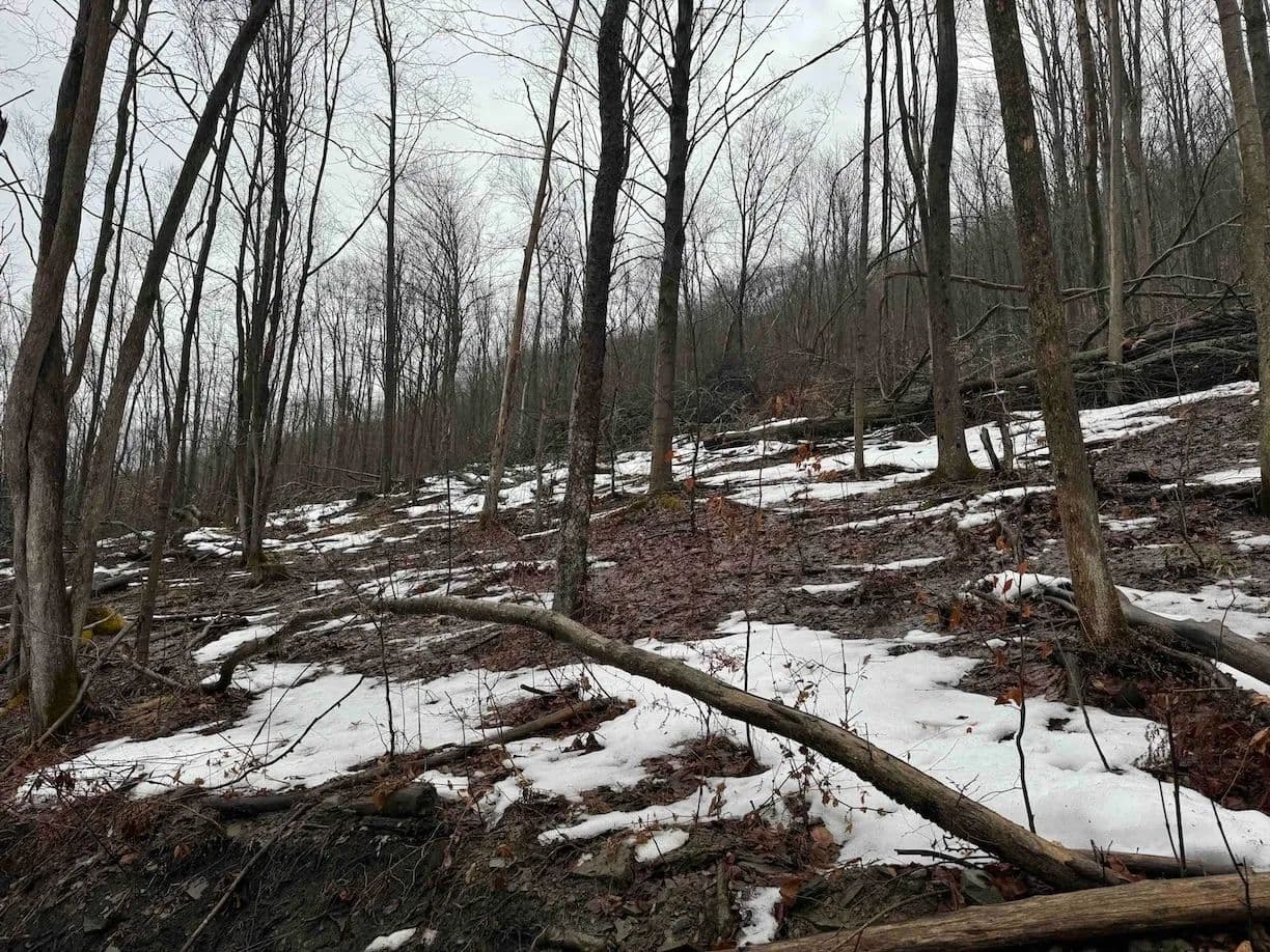 The land is mostly wooded with hardwoods and the terrain has an upward slope throughout most of the property. There is a clearing upon entrance that could be used to build a home, cabin or even set up a trailer. The property is currently being logged. The loggers are almost done but due to the weather, they cannot finish until early or late spring. The seller will sign a notice of intent but will not close on the property until the logging is completed to make sure the buyer is happy. The trailers on the property will be removed prior to closing. There are trails established throughout that will be cleaned up and graded prior to closing for easy access. Whitetail deer sign throughout. Nice opportunity to get the property at a decent price, and with the right management, the forest will grow back in no time. All rights convey.