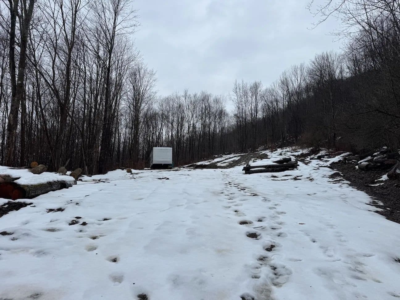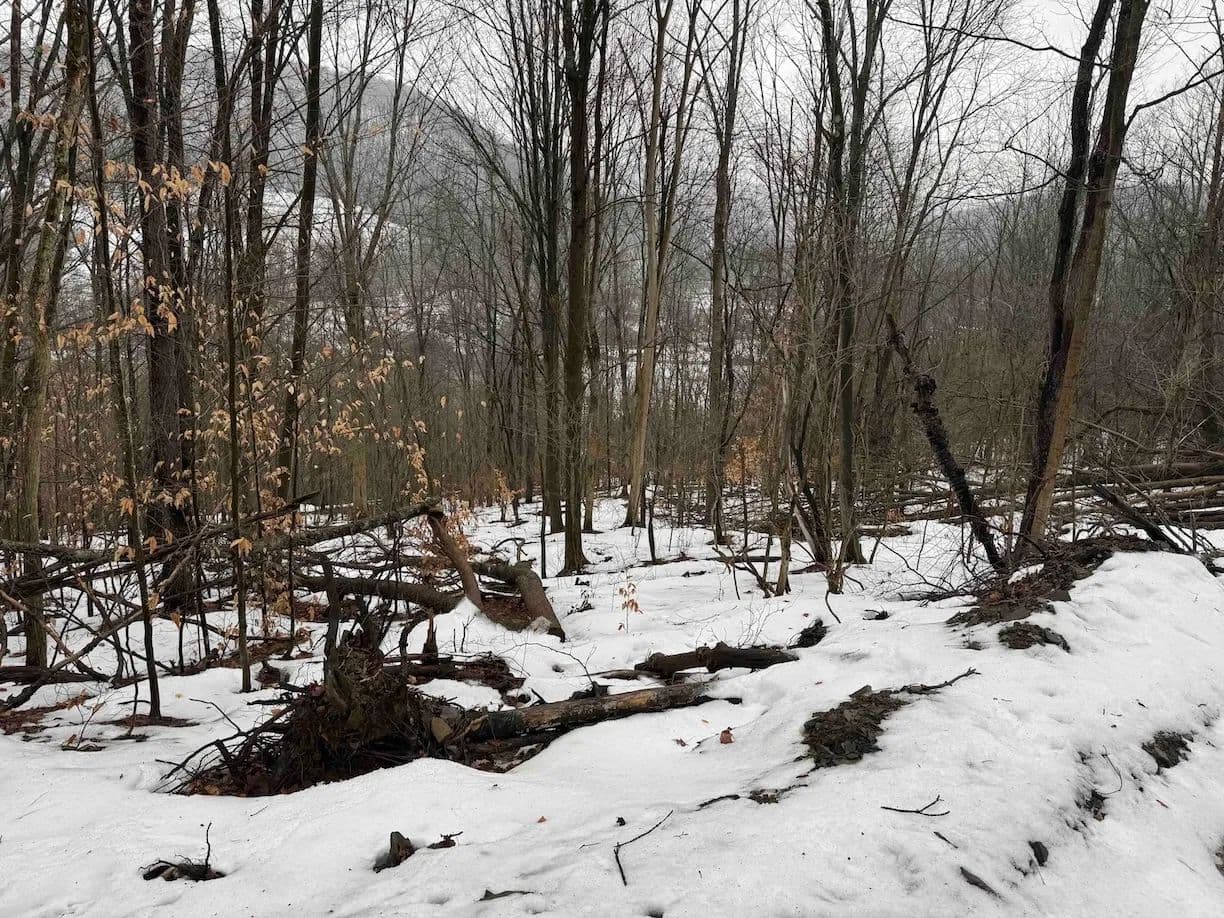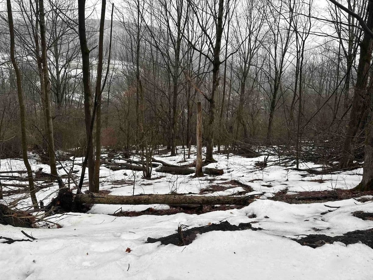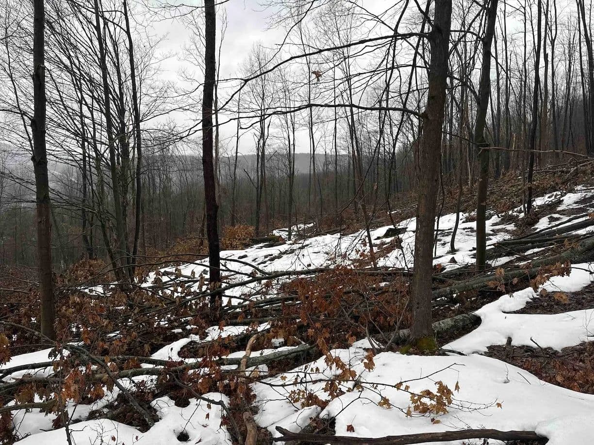 The land is mostly wooded with hardwoods and the terrain has an upward slope throughout most of the property. There is a clearing upon entrance that could be used to build a home, cabin or even set up a trailer. The property is currently being logged. The loggers are almost done but due to the weather, they cannot finish until early or late spring. The seller will sign a notice of intent but will not close on the property until the logging is completed to make sure the buyer is happy. The trailers on the property will be removed prior to closing. There are trails established throughout that will be cleaned up and graded prior to closing for easy access. Whitetail deer sign throughout. Nice opportunity to get the property at a decent price, and with the right management, the forest will grow back in no time. All rights convey.