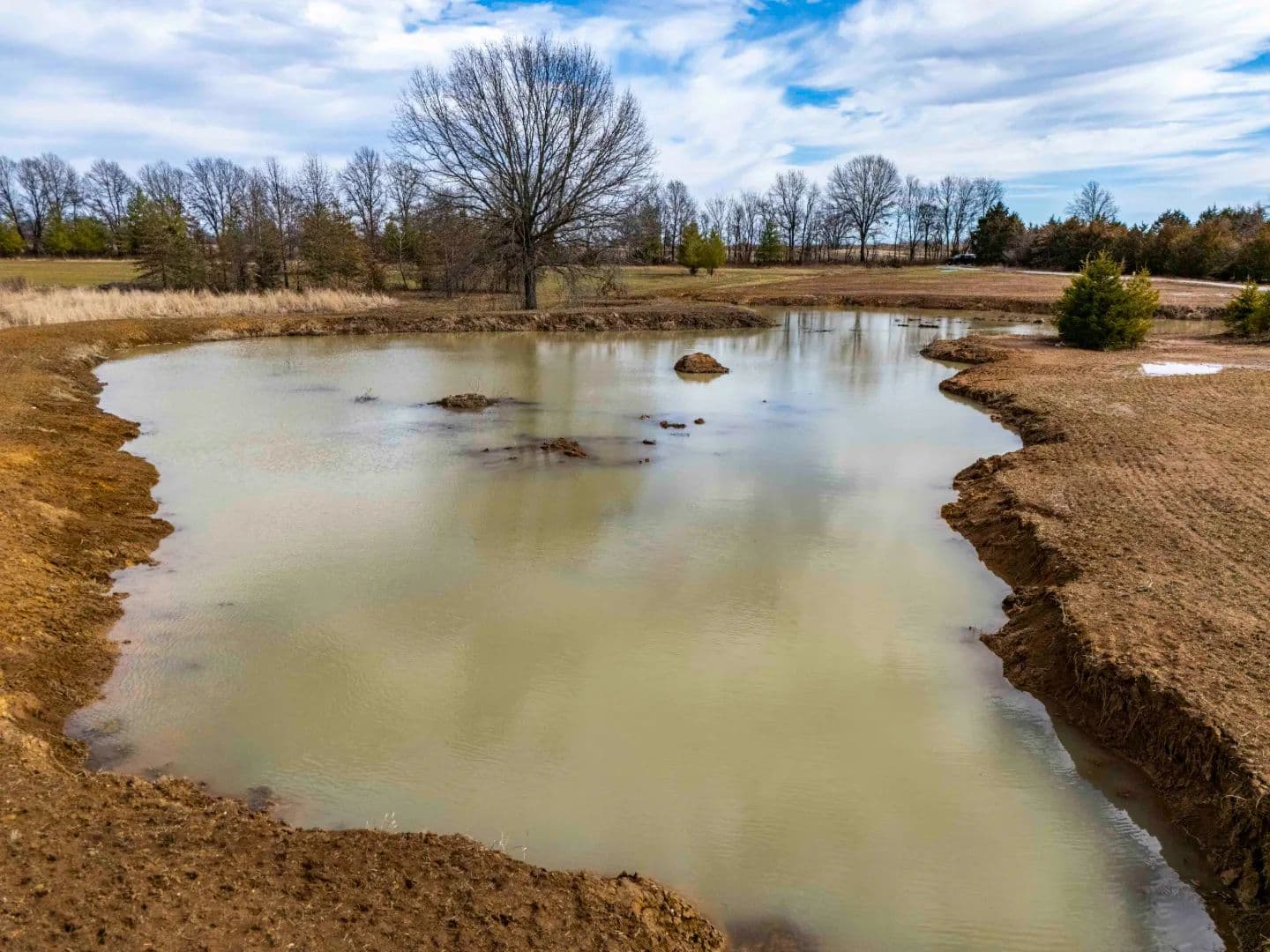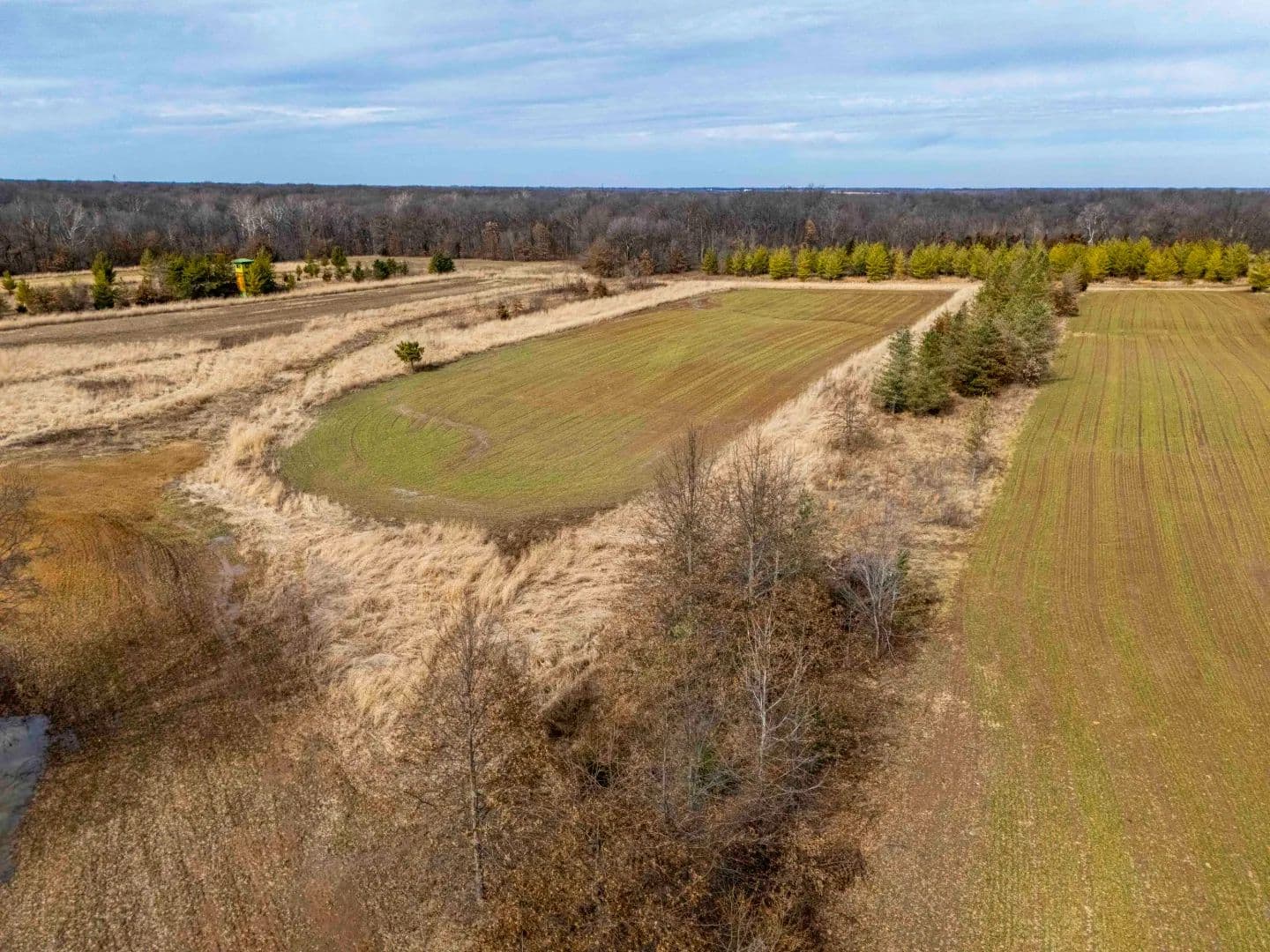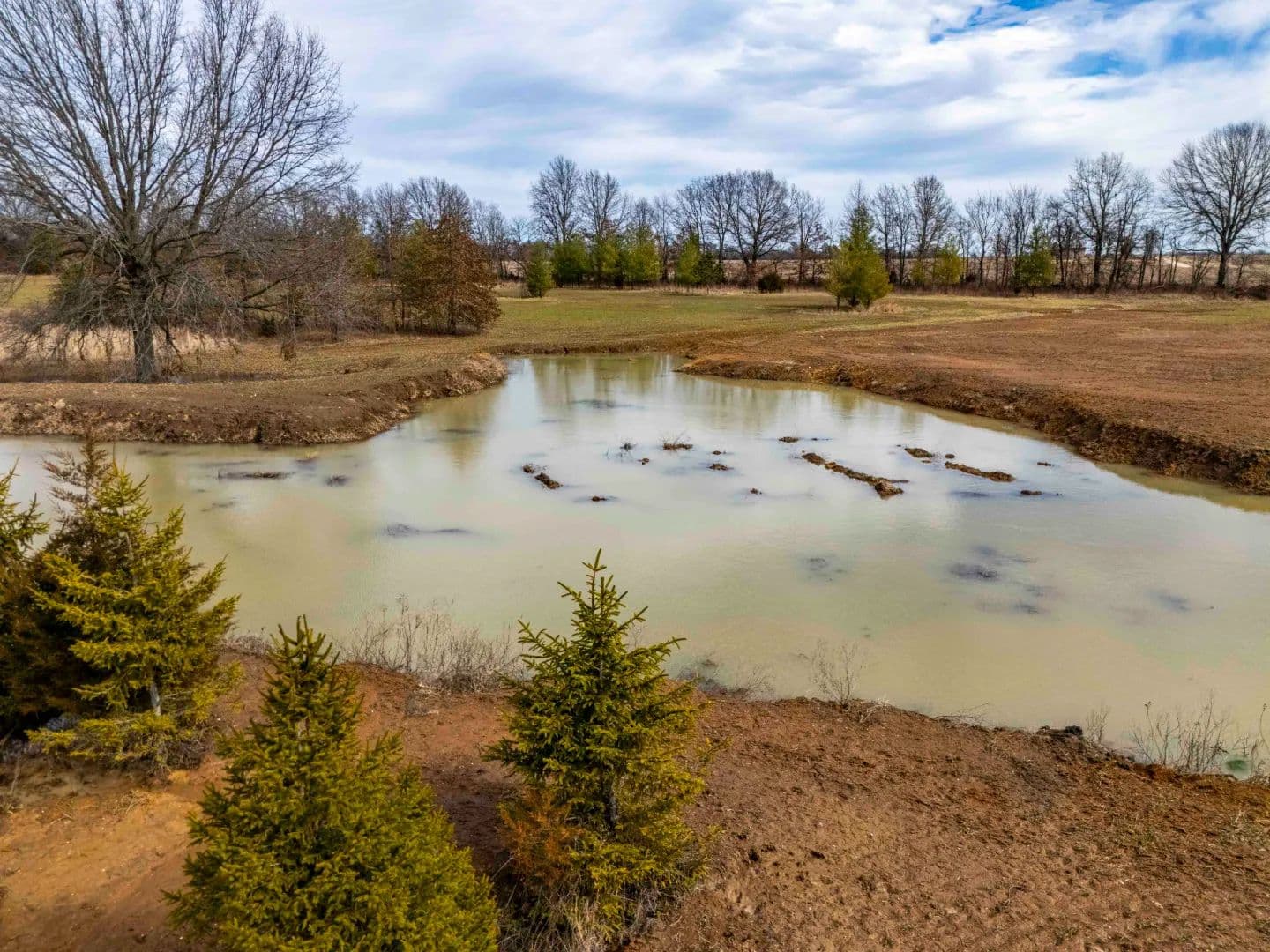 A newly constructed pond adds both function and recreational value. It serves as a water source and attracts wildlife, making the property suitable for hunting and outdoor use. The mix of open ground, water, and tree cover supports deer, turkey, and other wildlife common to the area.