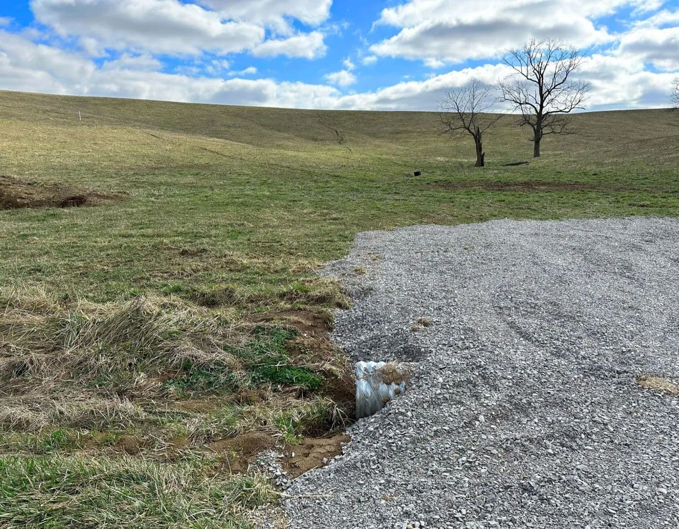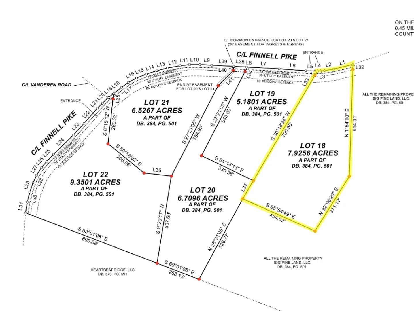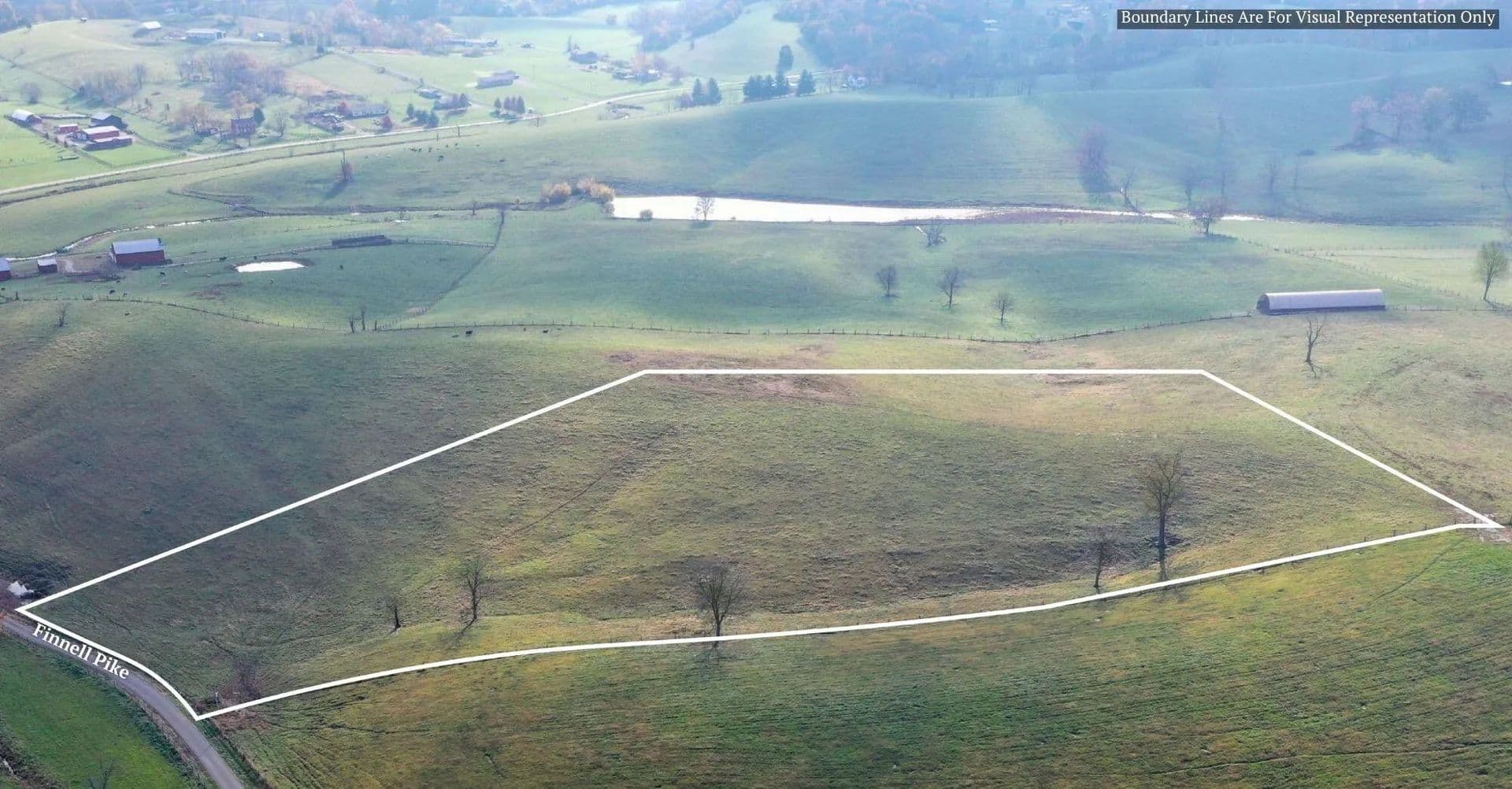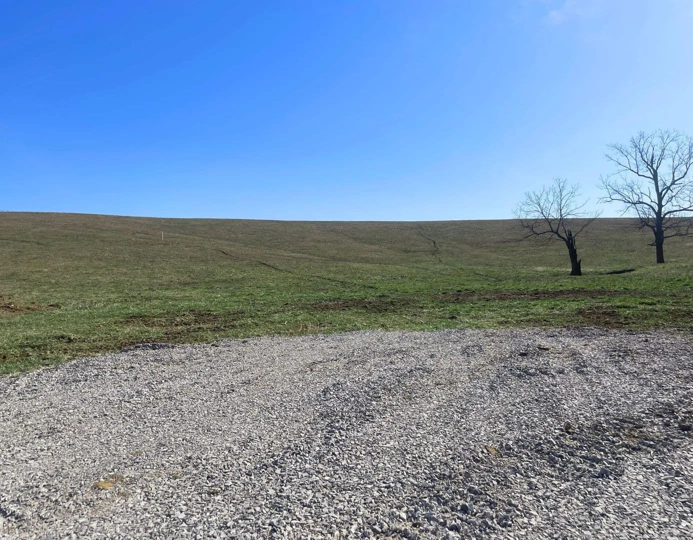 an epic elevated home site after traveling up a gently rolling incline from the new entrance on Finnell Pike, where water and electricity are easily accessible. This property is dotted with a few mature trees