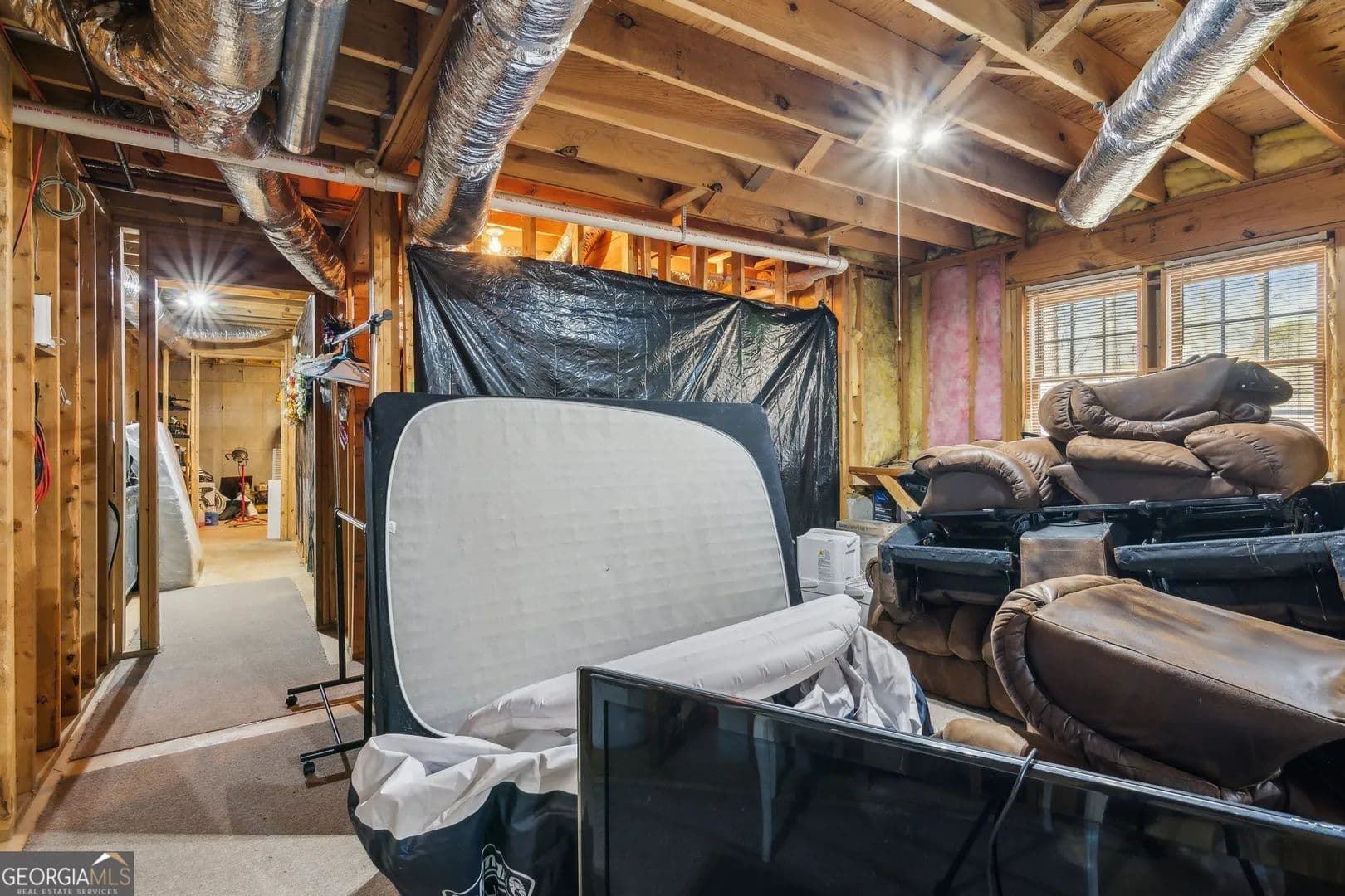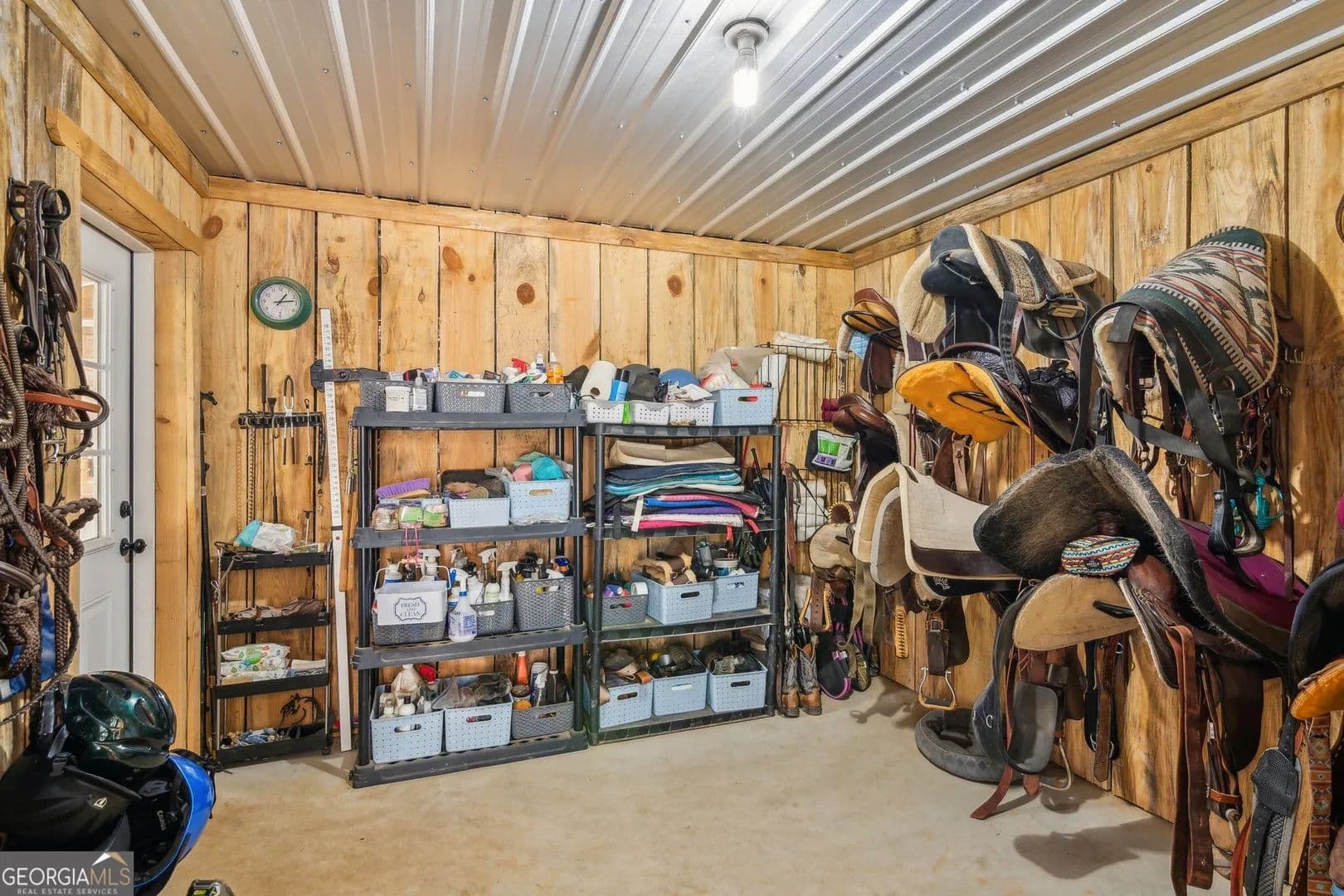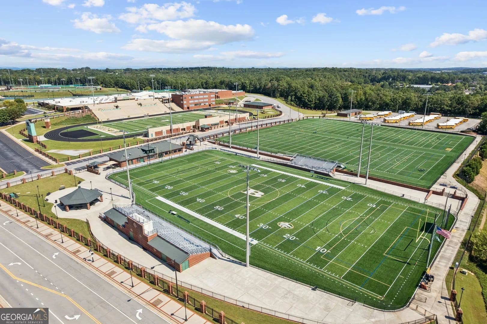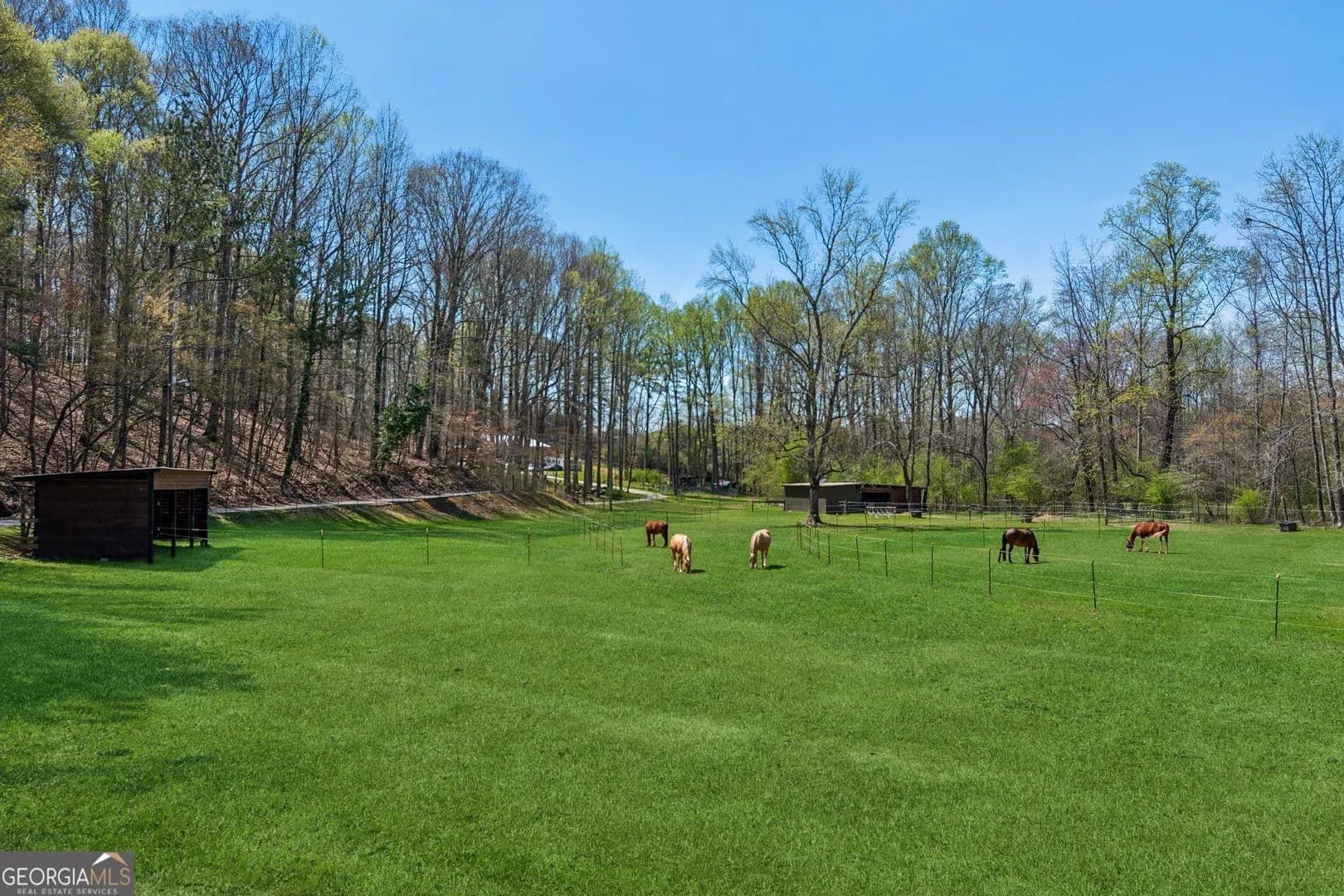 Tucked away in the heart of Hall County with a coveted Buford City address, this private 13 acre equestrian retreat offers the perfect blend of serene country living and urban convenience. Located within the award-winning Buford City School District, this 4 sided brick 4-bedroom, 3.5-bath home features a main-level master suite and is designed for both personal enjoyment and income potential, whether as a private farm or a boarding facility. Spanning 5 fenced and cross-fenced pastures, the property is well equipped with horse wire and electric rope fencing, including a large run-in shed with feeding access windows in Field 3. The arena, situated on the hill above the main barn, boasts M10 footing, lights, excellent drainage, and natural shade throughout the day. Enjoy scenic horseback riding, ATV, and biking trails winding through the landscape, as well as access to a creek with swimming holes, perfect for both horses and riders. Additional features include two chicken coops with runs and perimeter fencing, a shaded, fenced backyard off the deck ideal for children and pets, a trailer parking pad, and a separate gravel driveway leading to the main barn. A fenced driveway with an underground doorbell connects directly to the farmhouse, ensuring security and privacy. The main barn (88x52) is thoughtfully designed with eight stalls featuring M10 drainage, mats, fans, and 12x12 runs with windows, allowing for natural light through overhead skylights and metal stall caps providing easy cleaning and protection. This barn also includes an extra-large foaling stall run connected to the first stall, a wash rack with drainage, a sealed tack room, a separate feed room, and a hay/equipment shed. Security is paramount, with cameras installed throughout. The entire barn is fully wired with lights and outlets, all GFCI protected, with metal-clad wiring to guard against rodent damage and metal outlets and switch housings for enhanced durability. The lower barn (34x48) offers an additional six stalls, all benefiting from overhead skylights for natural light, along with hay storage and an enclosed tack room. With its limitless potential, this exceptional equestrian estate is a rare find in Buford, offering a unique opportunity for a family farm, personal retreat, boarding business, or even a new wedding venue! Just minutes from the Mall of Georgia, a short drive to Lake Lanier for watersports, and within easy reach of the North Georgia mountains, this property provides an ideal balance of recreation, relaxation, and accessibility. Don't miss the chance to make this versatile and beautifully maintained property your own!