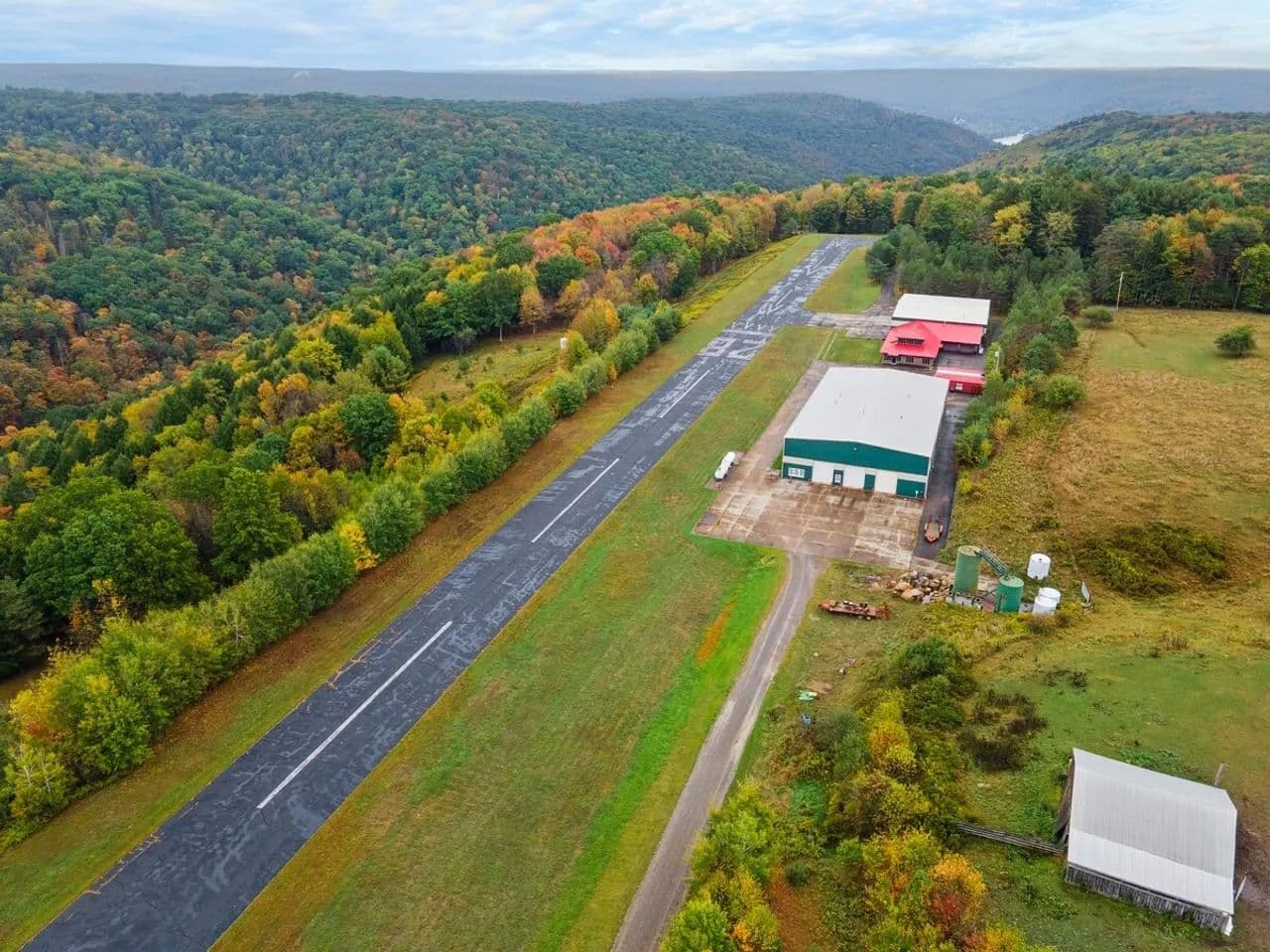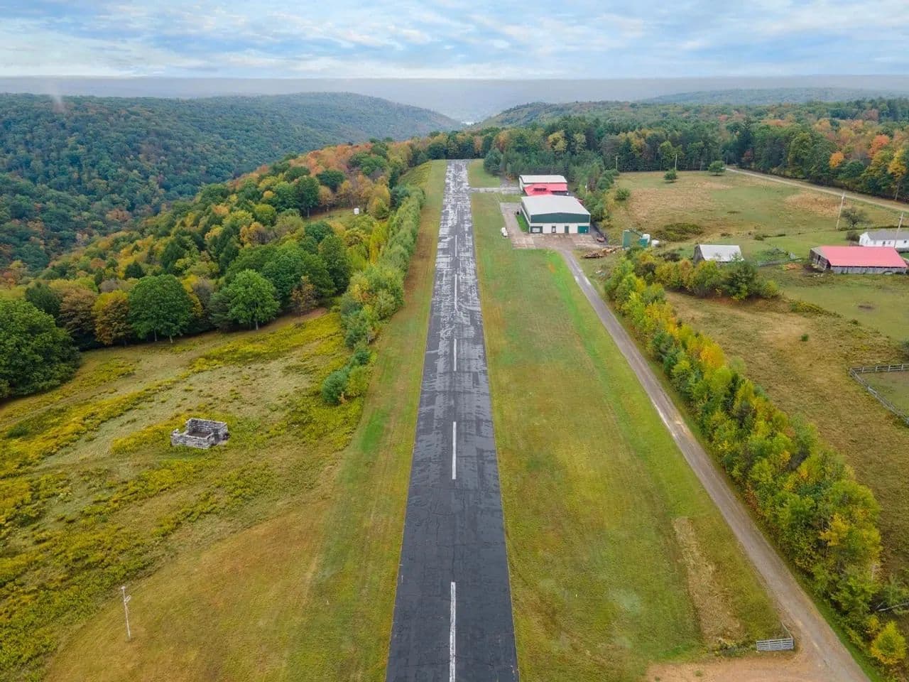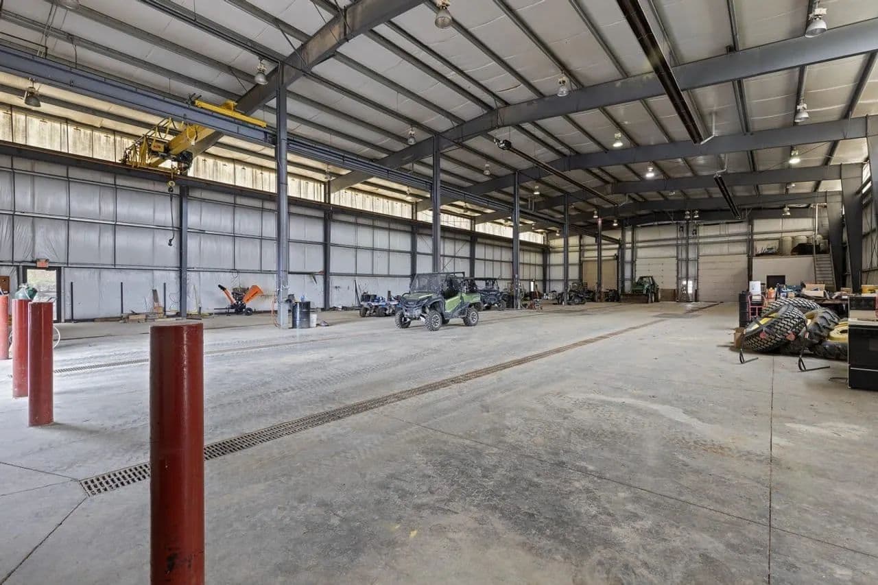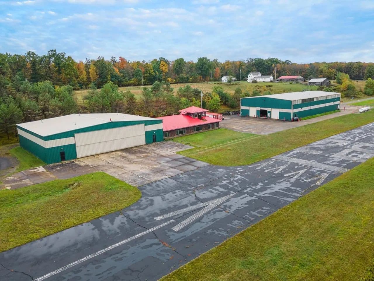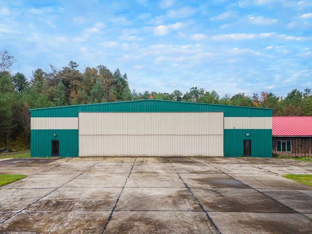 For those arriving by air, the property boasts its own 2,250-foot paved and lighted private runway. A massive airplane hangar with electric doors provides secure storage, while the attached office complex—complete with conference room, multiple offices, and a kitchenette—makes working remotely seamless. Nearby, a commercial-sized storage building offers abundant space for large equipment and supplies.