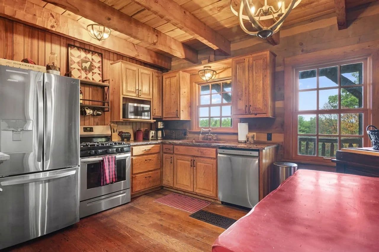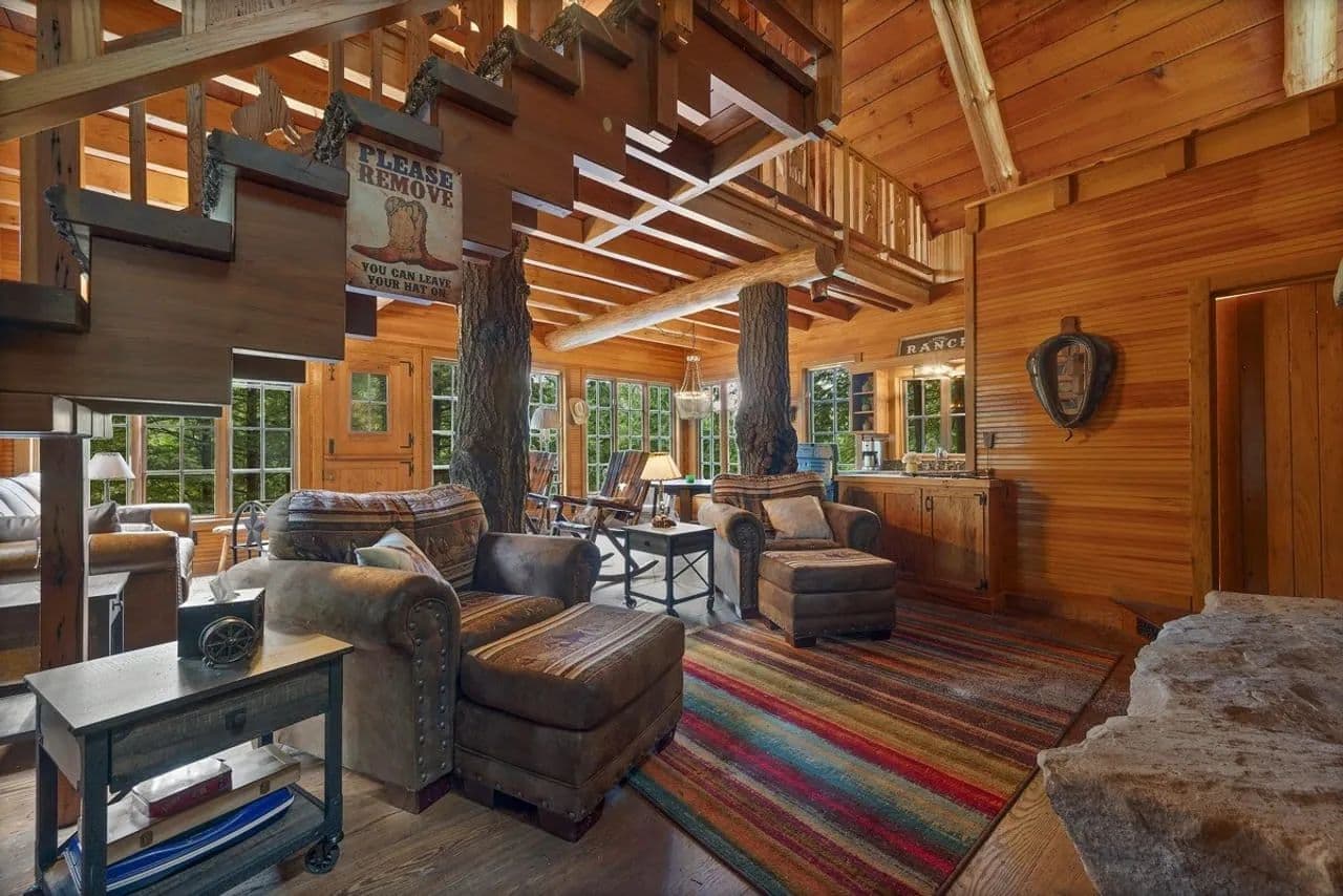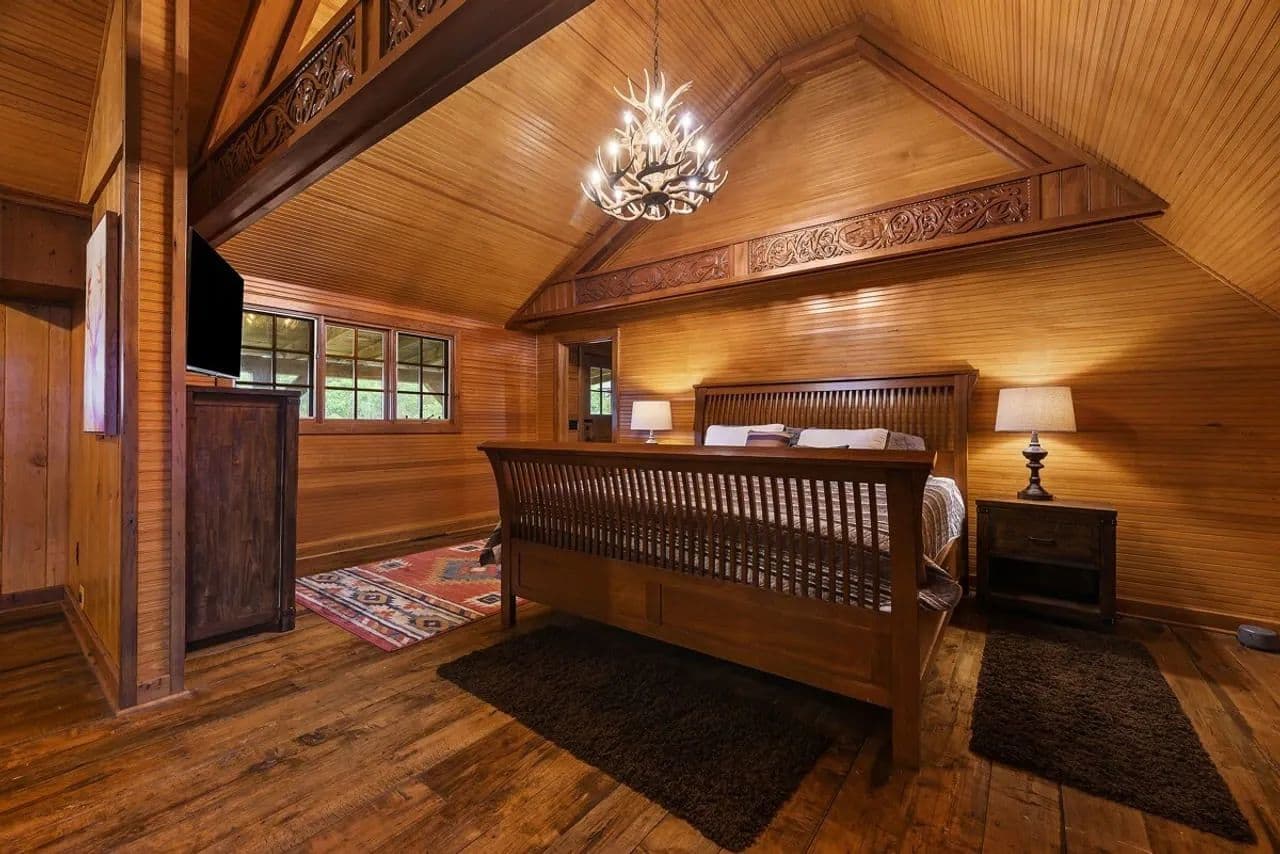 The estate is home to four luxury lodges, a caretaker’s farmhouse, and a quaint hunter’s cabin—making it equally suited as a corporate retreat, private family compound, or investment property. Each lodge is crafted with meticulous detail and extraordinary workmanship. From soaring vaulted ceilings and massive stone fireplaces to hand-carved stair railings, custom stained-glass windows, and solid hardwood Dutch doors, every dwelling showcases artistry that words can hardly capture. Fully furnished with high-end finishes, each lodge offers modern comforts such as central heating and cooling, wrap-around decks, balconies, and durable metal roofing.