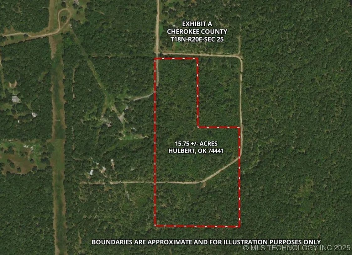 CHECK OUT THE INFINITE POTENTIAL WITH THIS VERSATILE 15.75 +/- ACRES IN HULBERT—LESS THAN 10 MILES FROM GRAND RIVER AND 21 MILES FROM LAKE TENKILLER! Situated in the gorgeous countryside, this property is situated just 11 miles from Tahlequah and 15 miles from Wagoner, combining the charm of rural living with easy access to essential amenities and neighboring towns. Ideal for building your dream home or investing in land, it offers convenient access to major highways to make traveling effortless, including HWY 82 just 5 miles away, HWY 51 within 6 miles, and US-412 only 12 miles from the property. Outdoor enthusiasts will appreciate the proximity to Lake Tenkiller, just 21 miles away, perfect for fishing, boating, and swimming, while the Grand River is less than 10 miles from your doorstep, offering even more opportunities for recreation. Enjoy the natural beauty of the surrounding landscape, with ample space for gardening, outdoor activities, or simply relaxing outdoors. You’ll enjoy the best of both worlds—peaceful country living with the conveniences of nearby cities, as it’s only 11 miles to Tahlequah, 15 miles to Wagoner, 16 miles to Fort Gibson, 23 miles to Muskogee, and 29 miles to Coweta. This land is the perfect blank canvas to bring your vision to life! Don’t miss this opportunity to own such a picturesque piece of land! Schedule a showing today!
