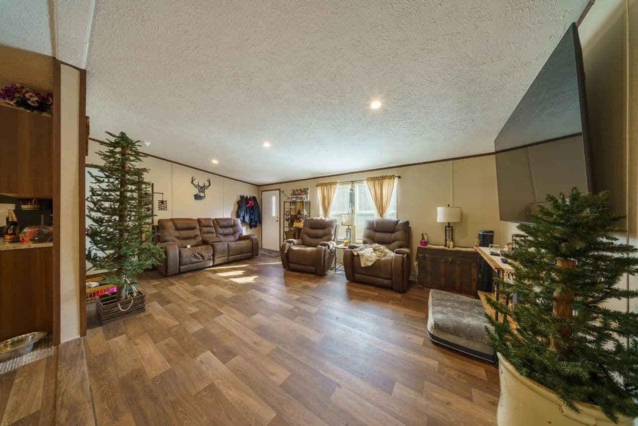 A beautiful 2024 double-wide mobile home sits on the property, offering a clean, modern, move-inready interior. Whether you’re looking for a full-time residence, a weekend getaway, or a place to stay during hunting season, this home is ideal.